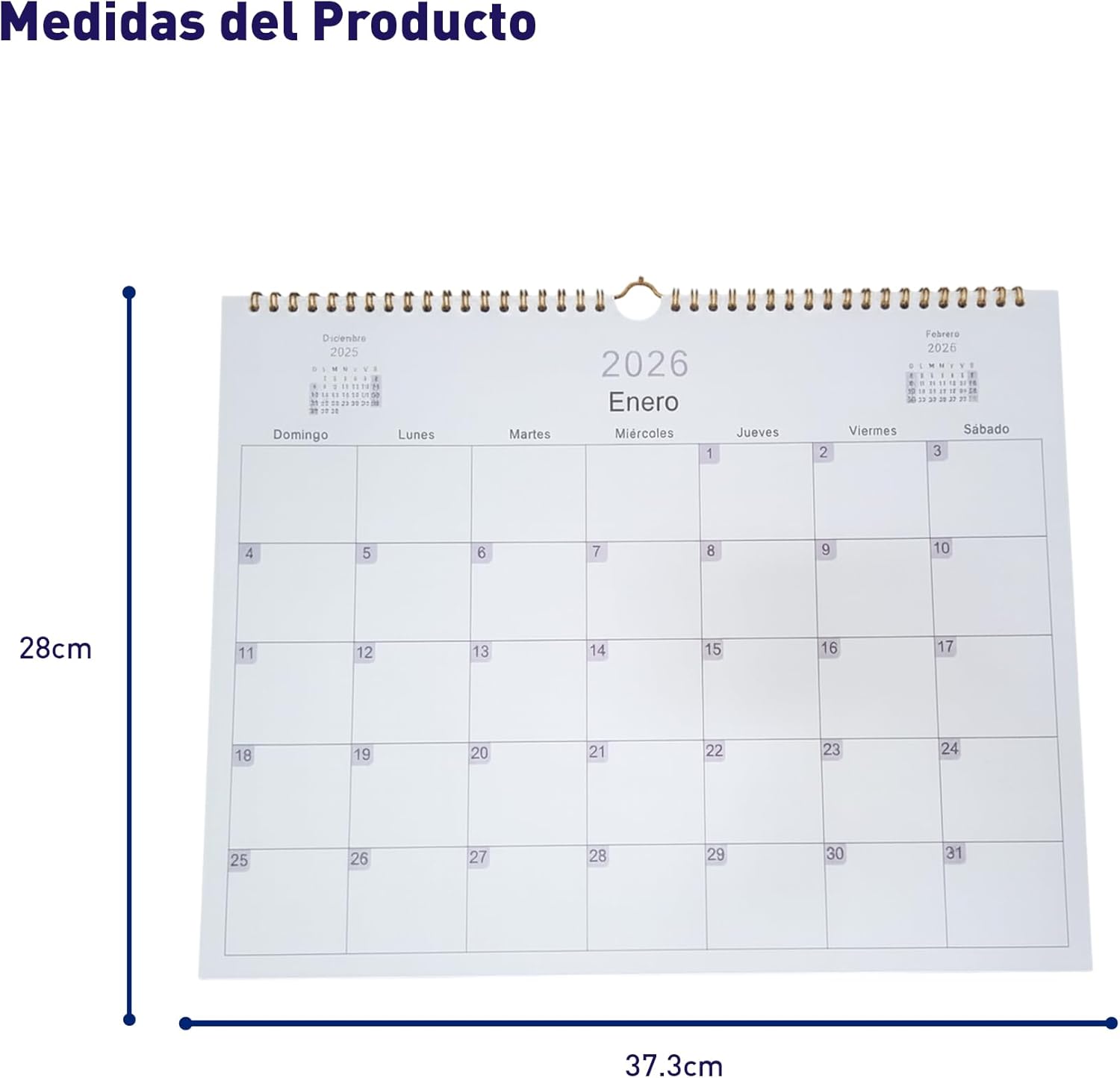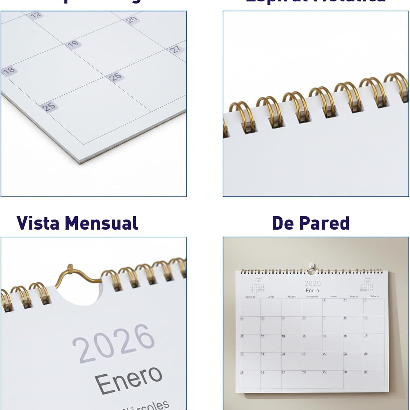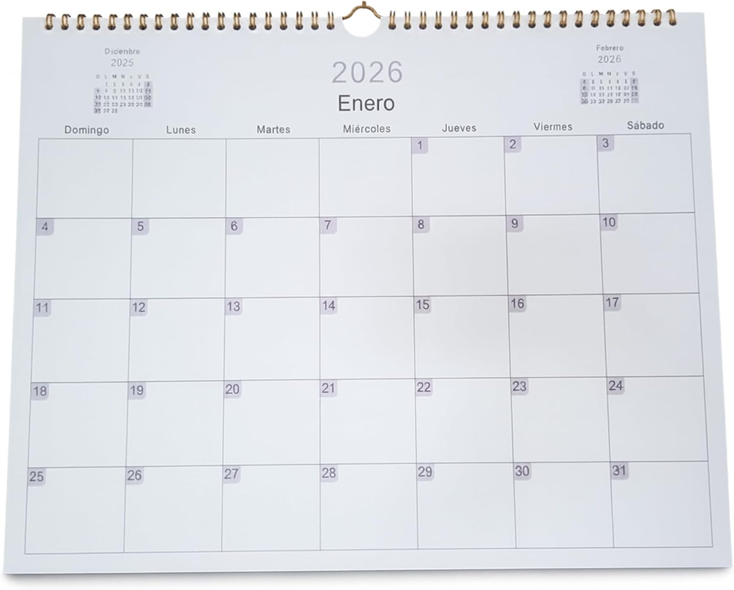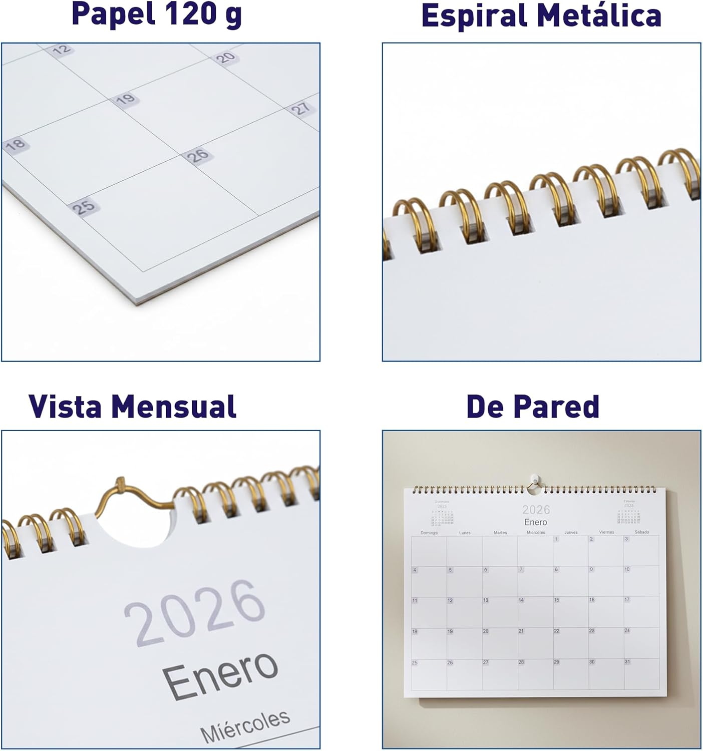 Bluelander Calendario de Pared 2026 A3 - Con Espiral 28x37.3cm