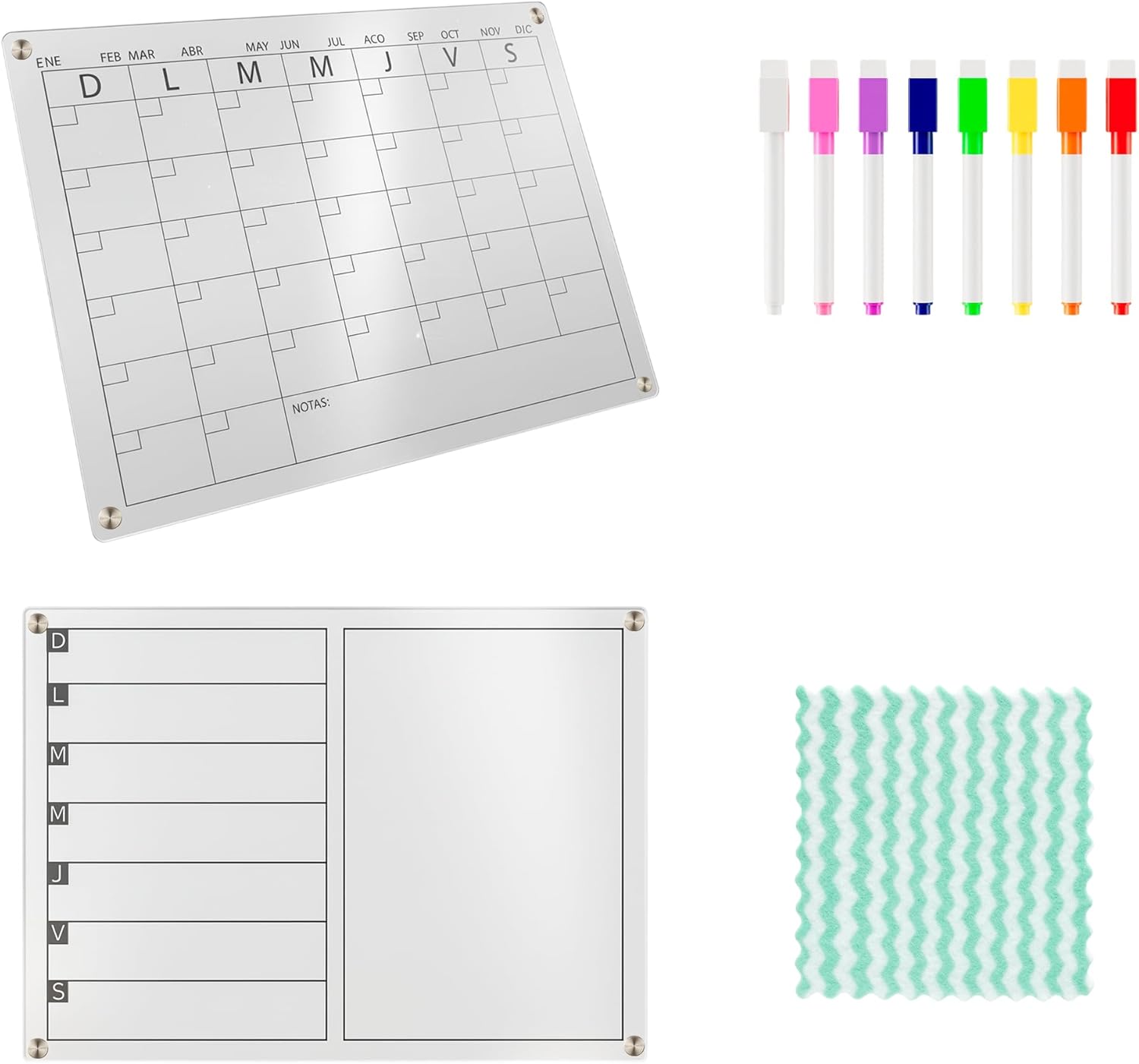 Set de Pizarrones Acrílicos Transparentes — Planificador Semanal y Mensual