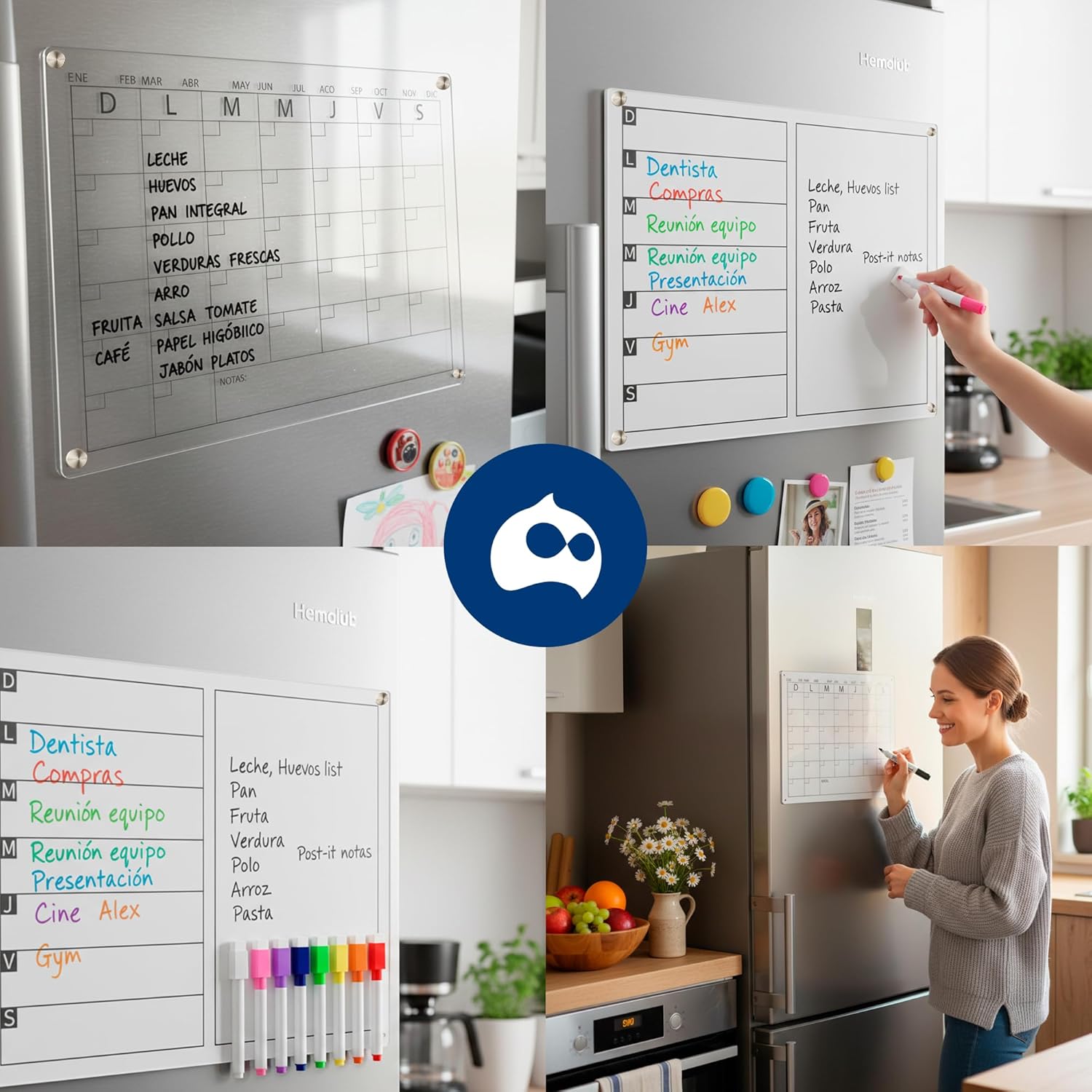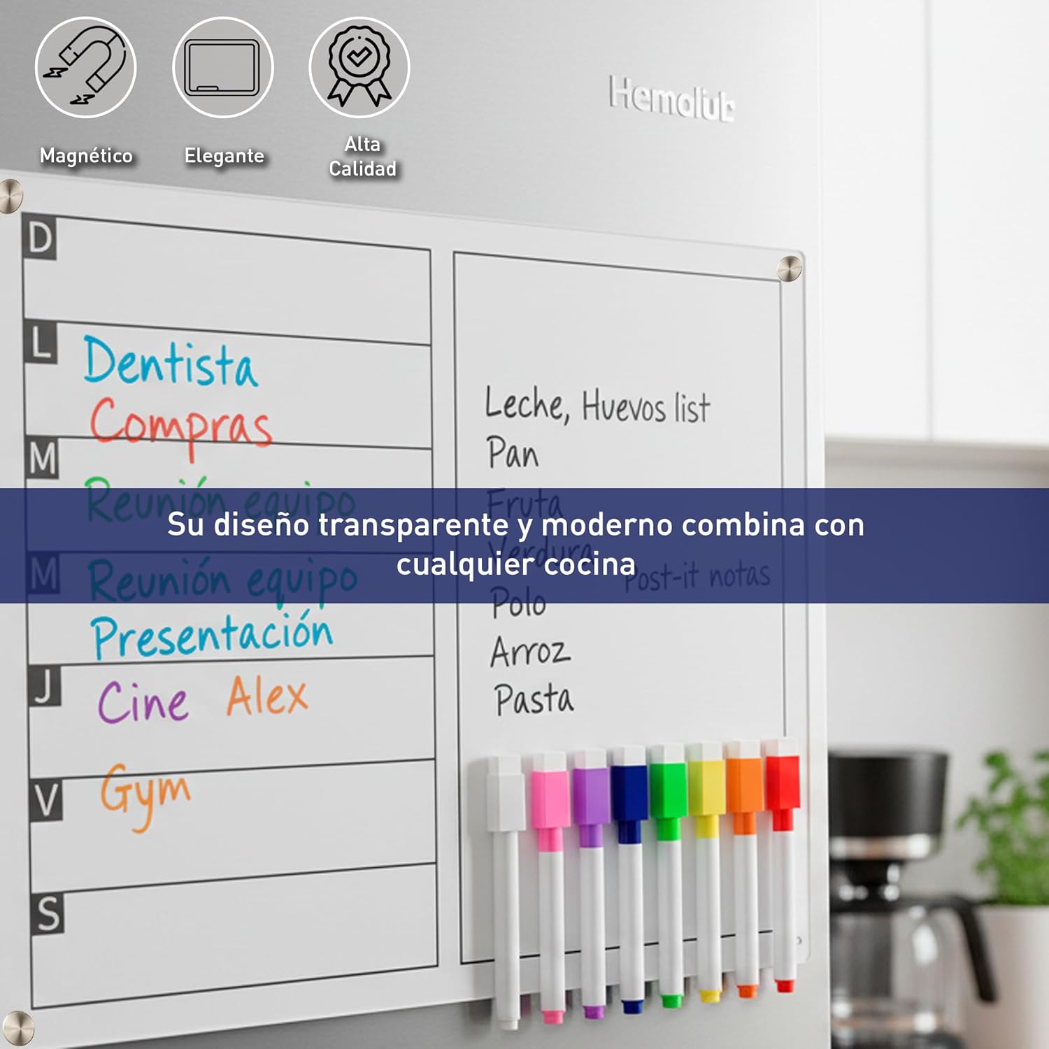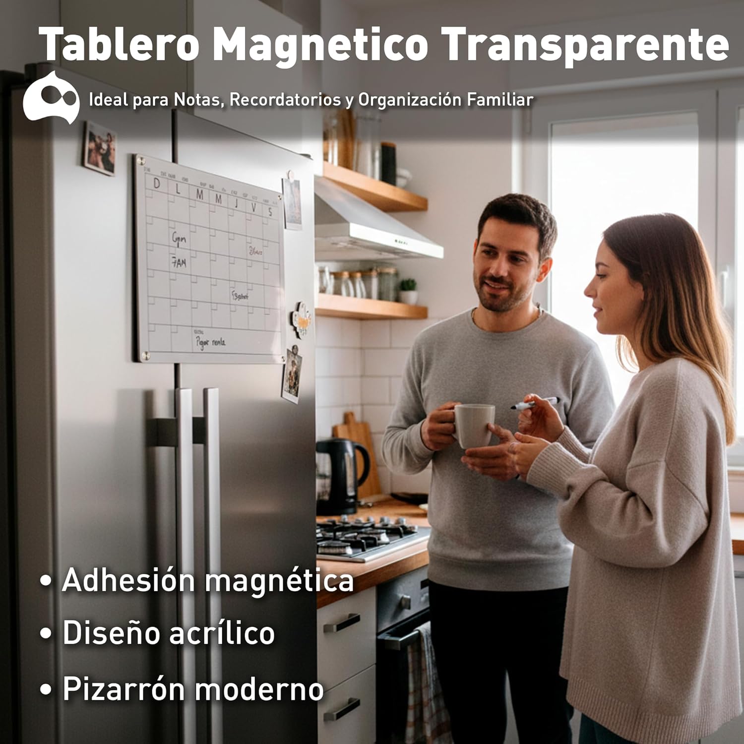 ⚙️ Material / Composición: Acrílico transparente de 2 mm, rotuladores magnéticos, paño de microfibra.