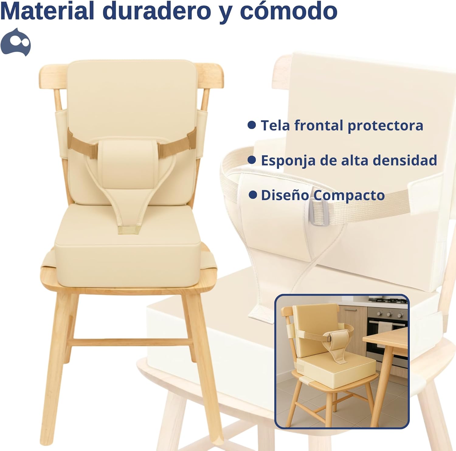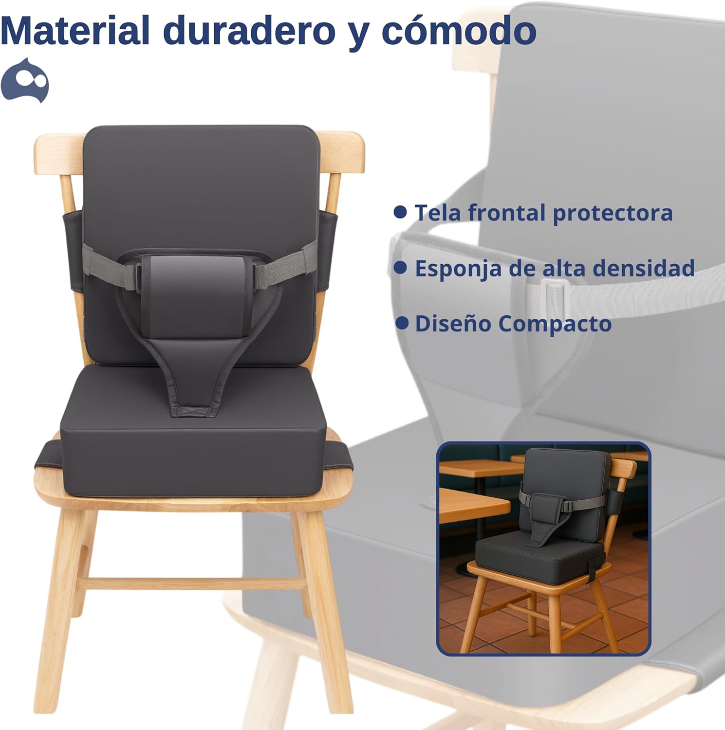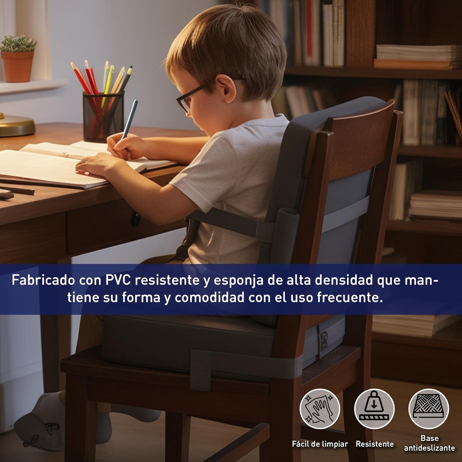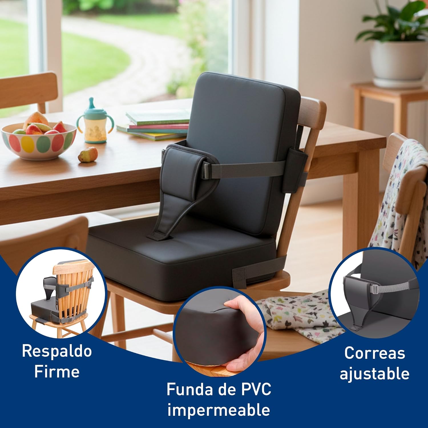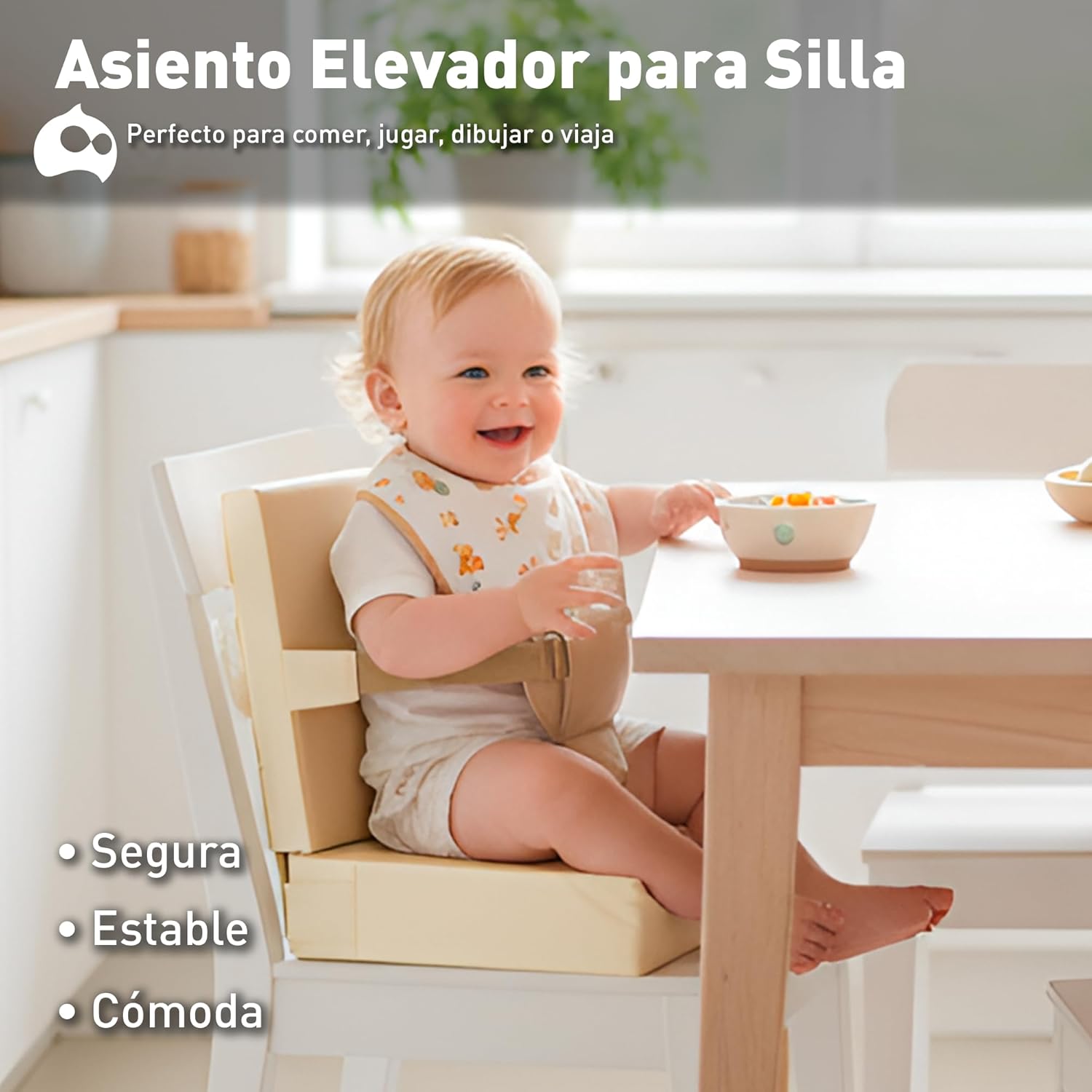 🍽️ [ASIENTO ESTABLE Y ELEVADO] Base antideslizante y correas ajustables que aseguran el asiento a cualquier silla, manteniendo al niño cómodo y a la altura ideal.
