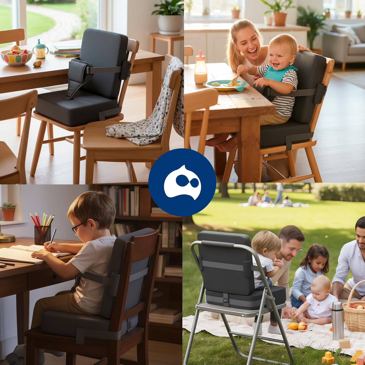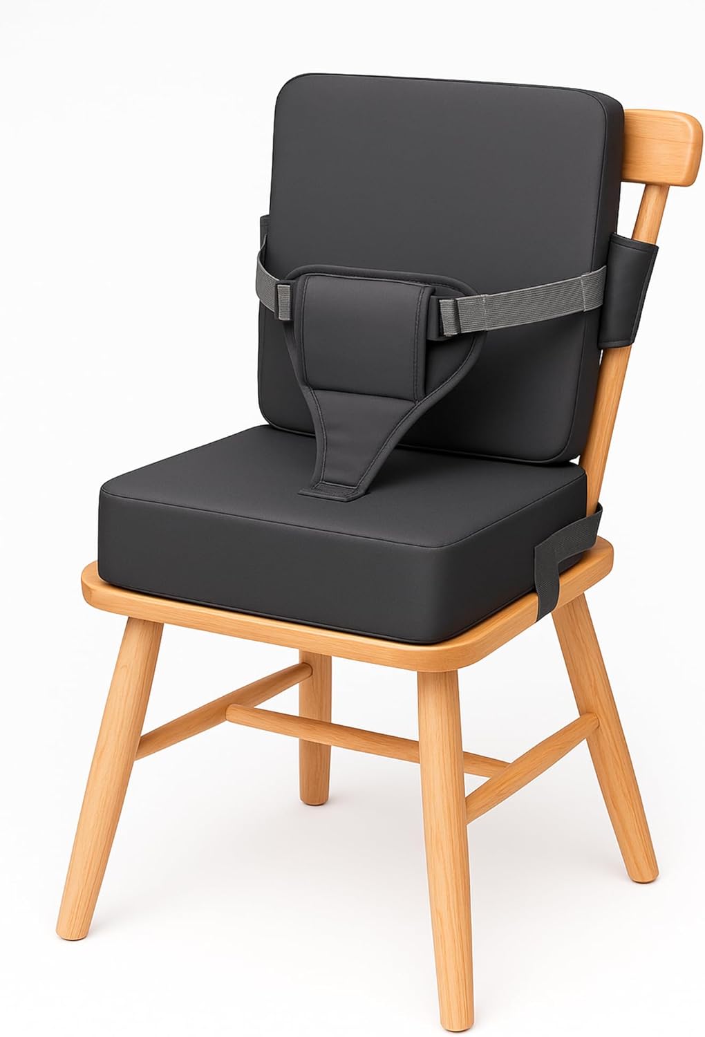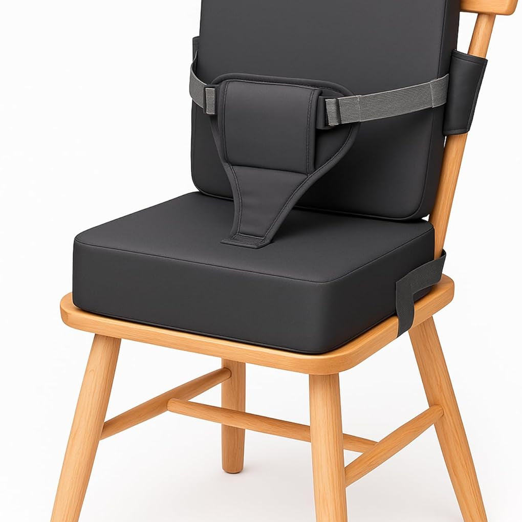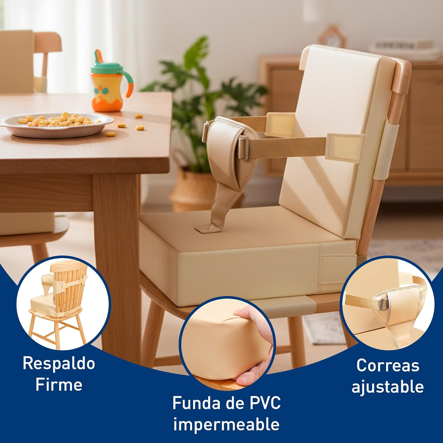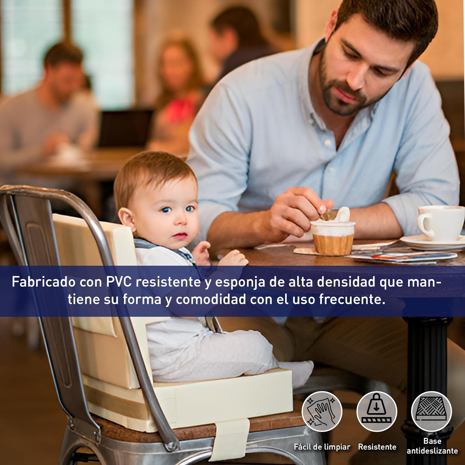 🍽️ [ASIENTO ESTABLE Y ELEVADO] Base antideslizante y correas ajustables que aseguran el asiento a cualquier silla, manteniendo al niño cómodo y a la altura ideal.