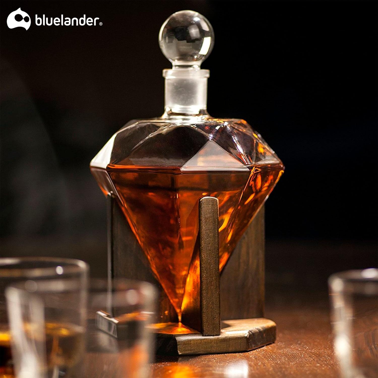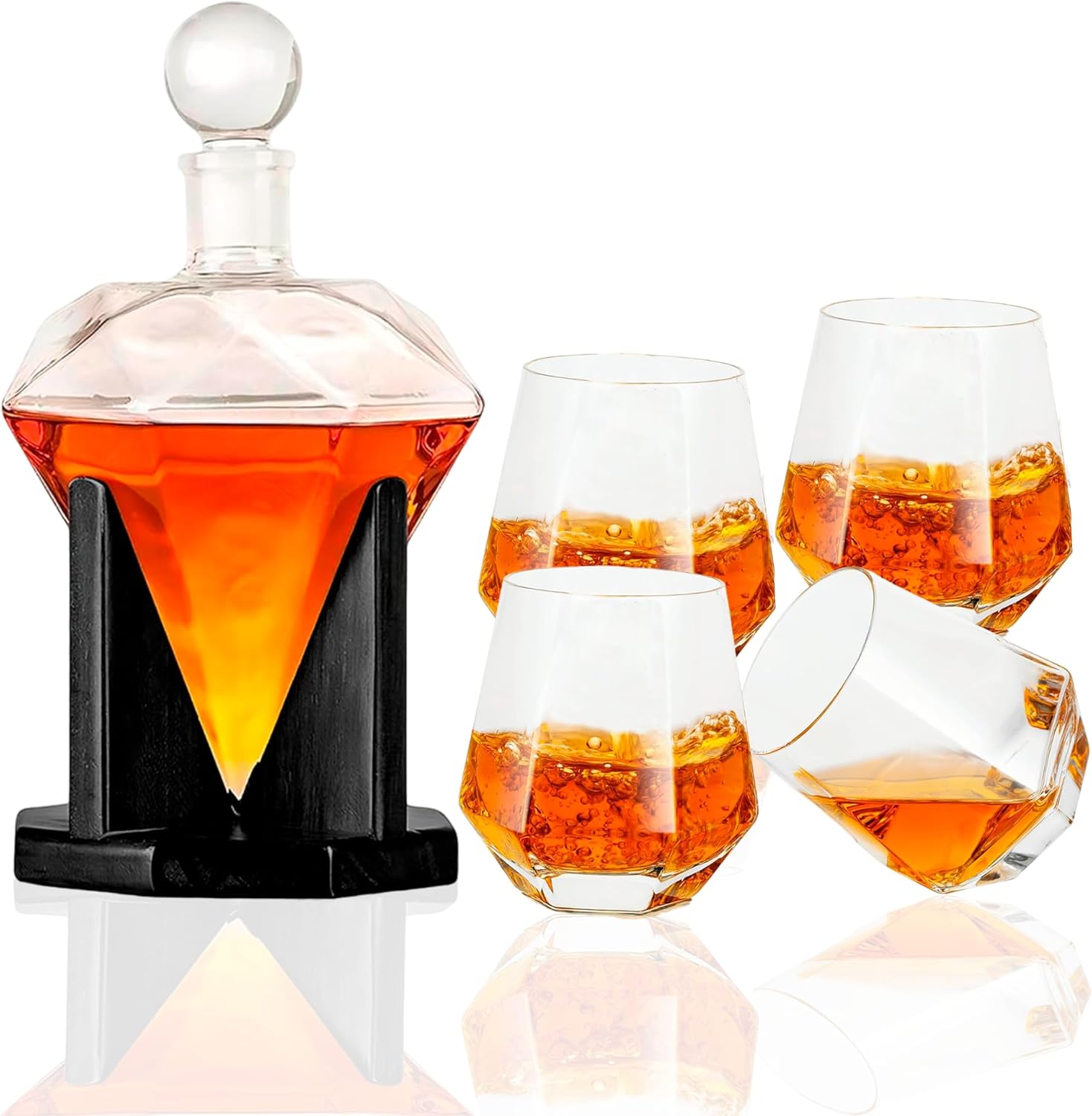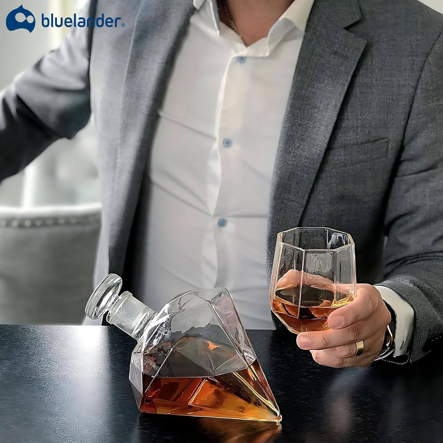 Bluelander Decantador Whisky 750ml - Set con 4 Vasos Cristal Diseño Diamante