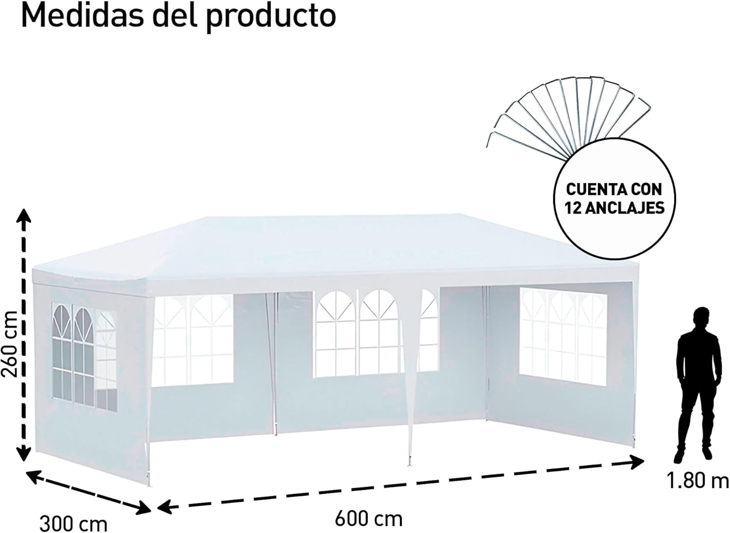 Bluelander Toldo Carpa 3x6m con Paredes Laterales - Impermeable para Eventos