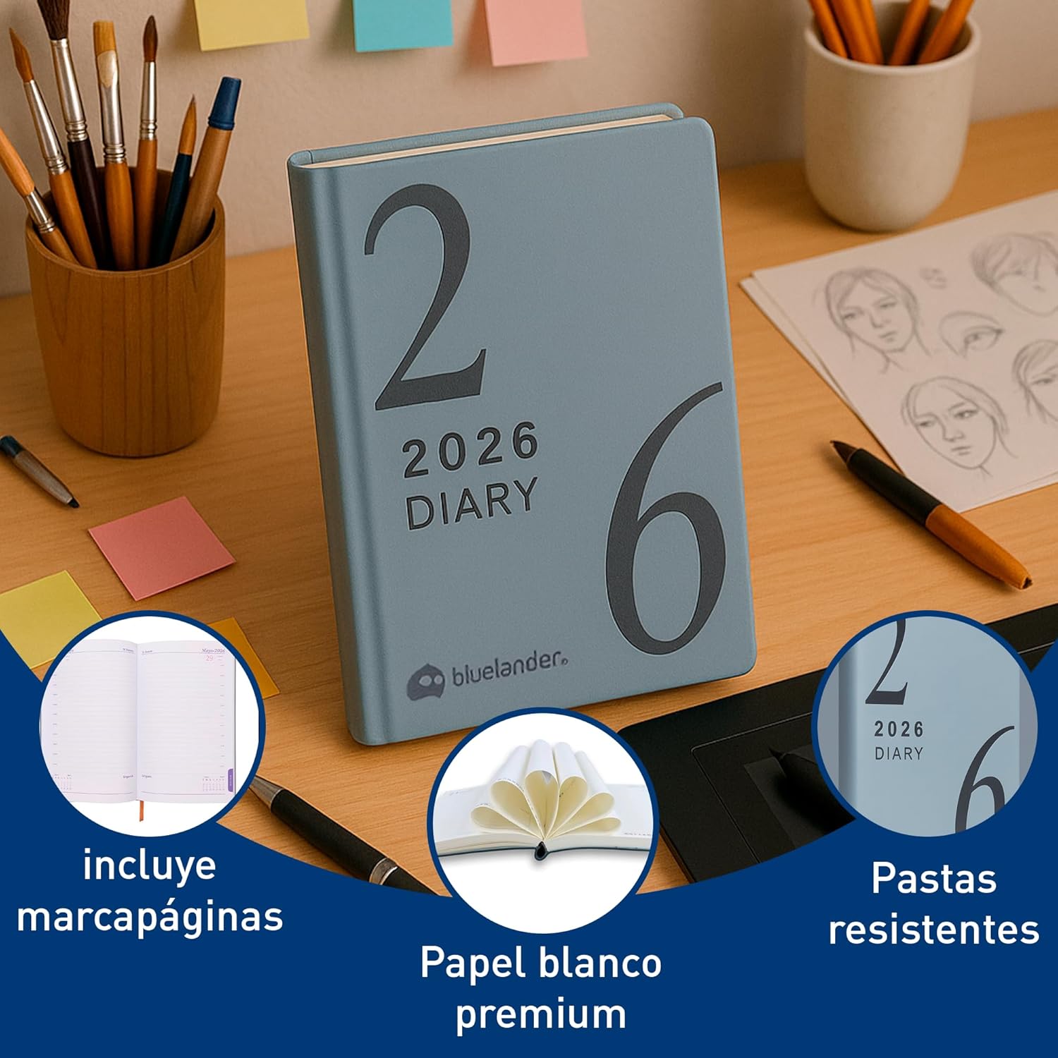 Bluelander Agenda 2026 A5 con Planificación Completa y Papel Premium