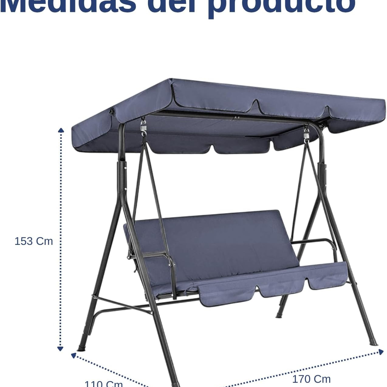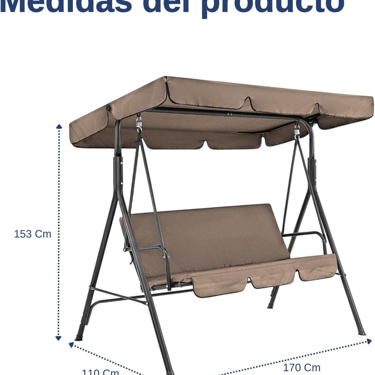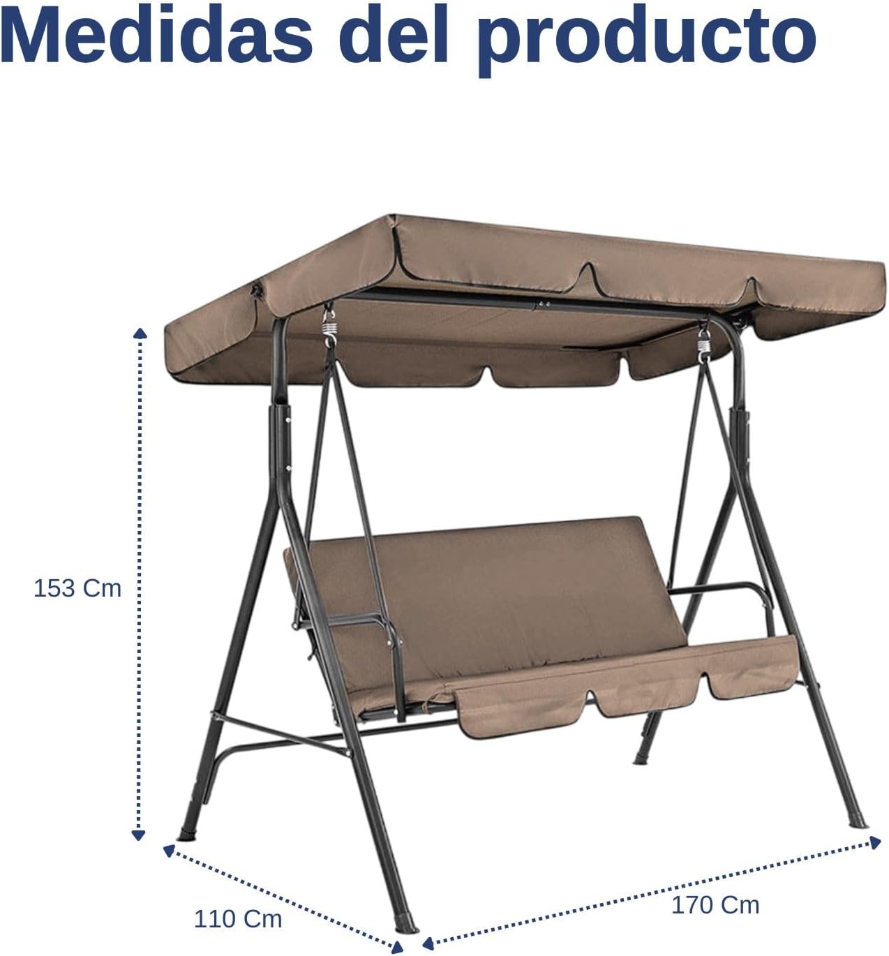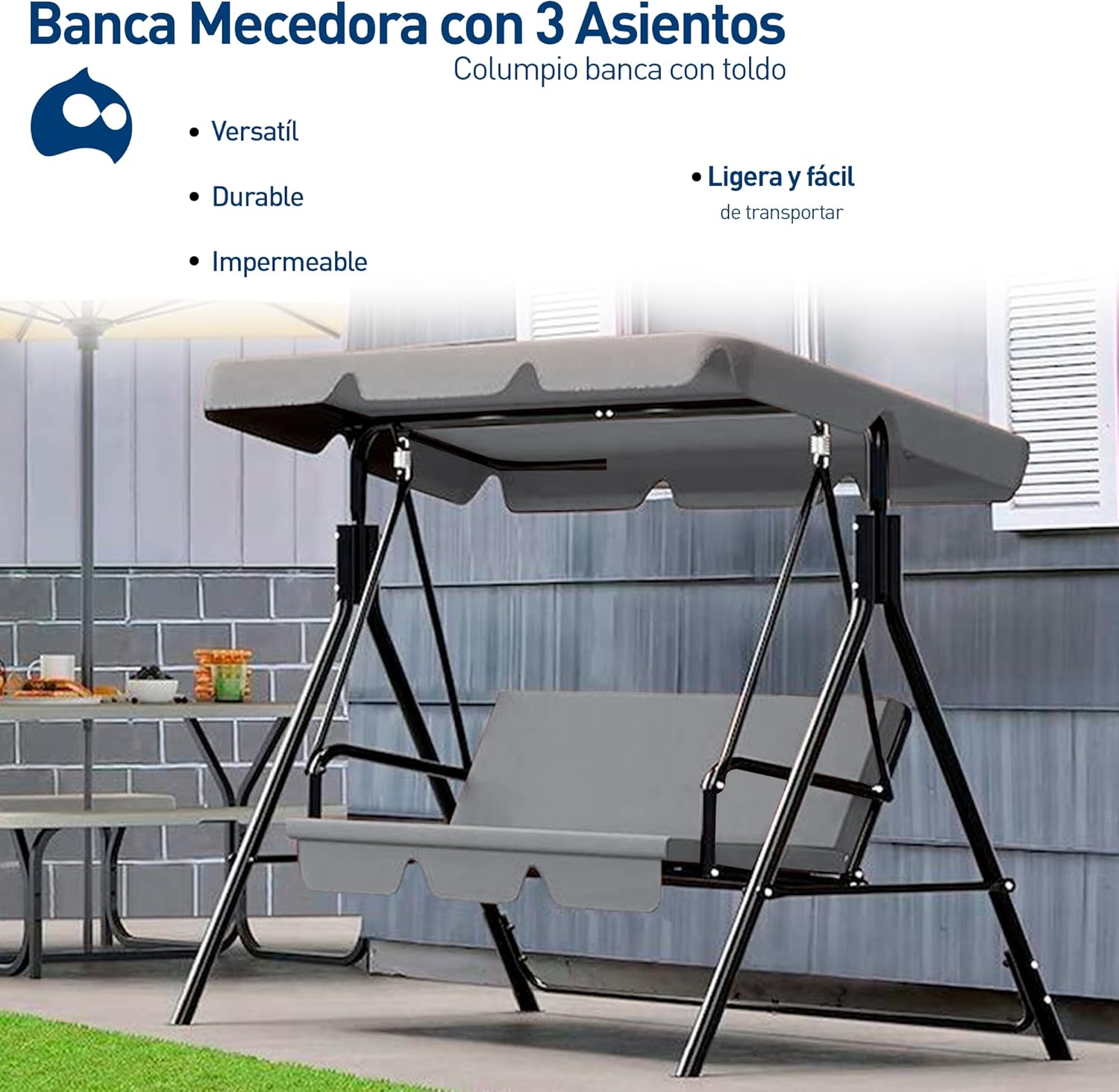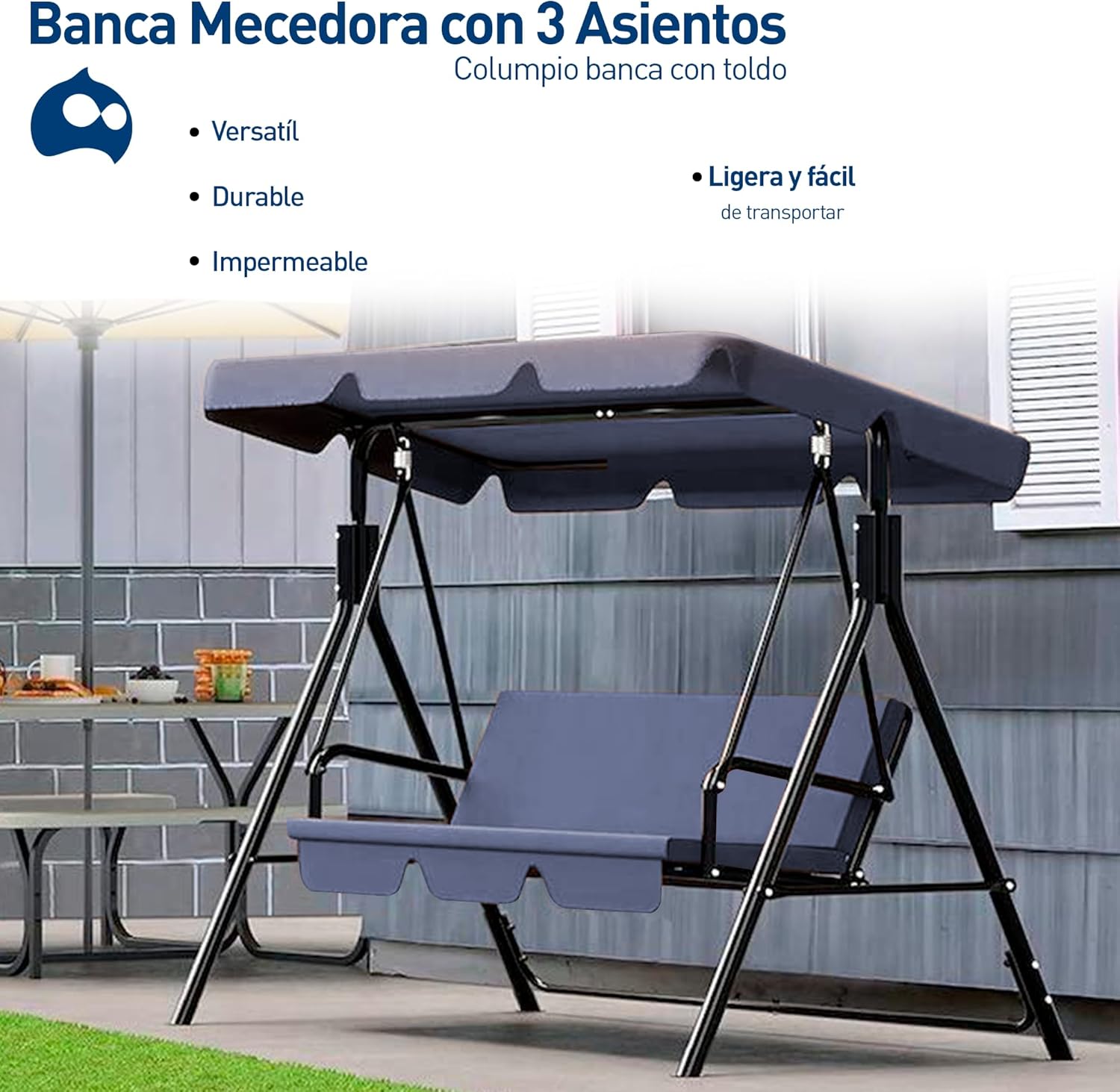 🪑 Banca mecedora de 3 asientos: Ideal para jardín, patio, terraza o junto a la piscina.