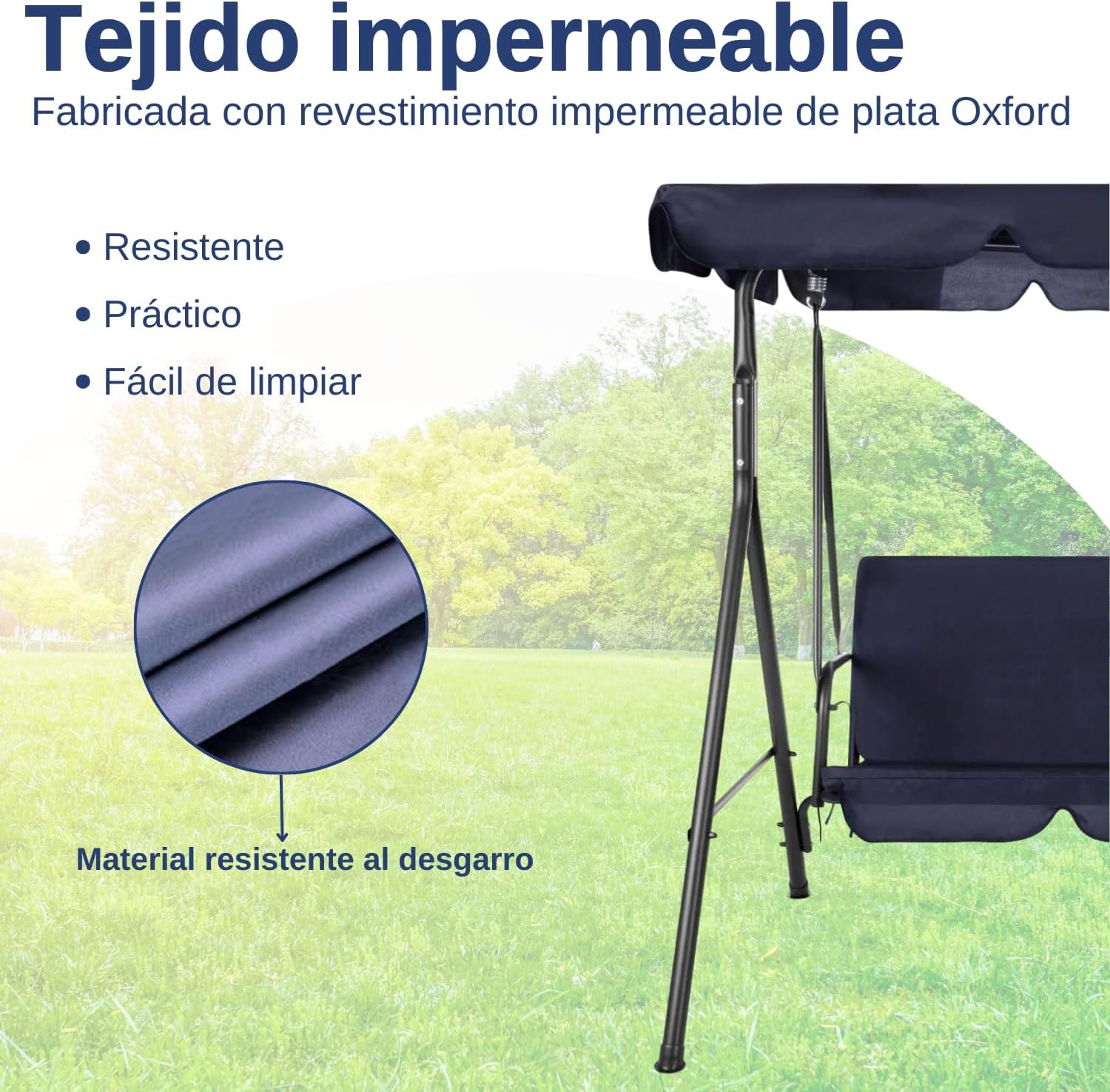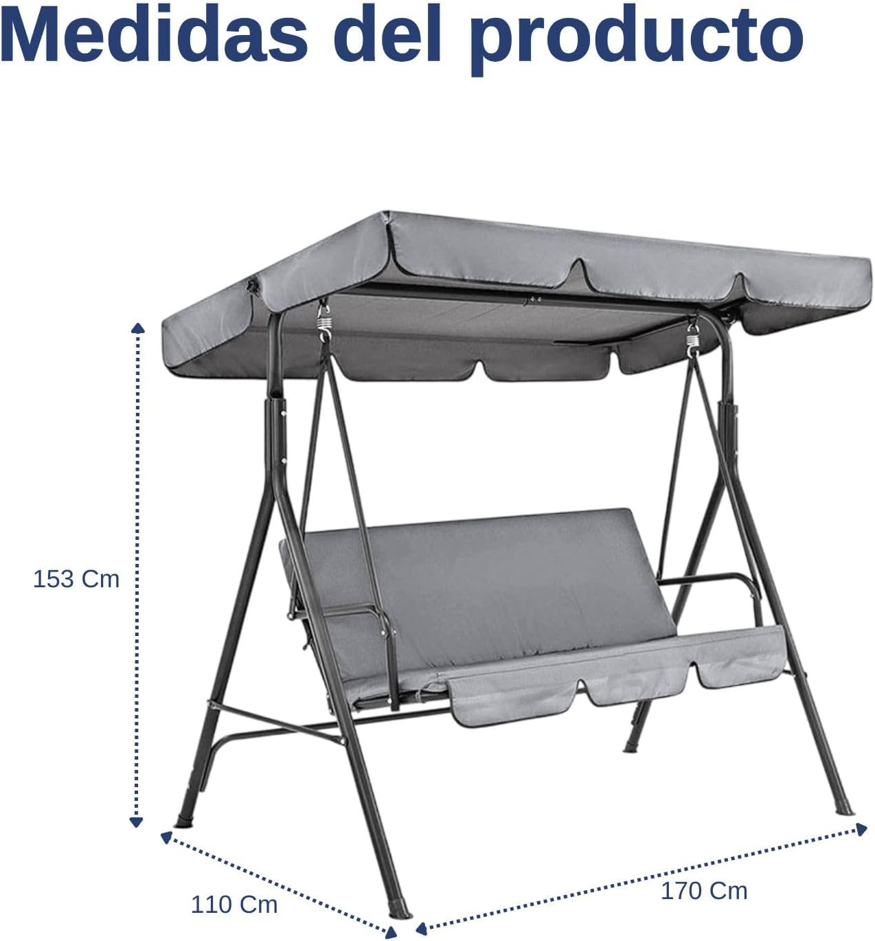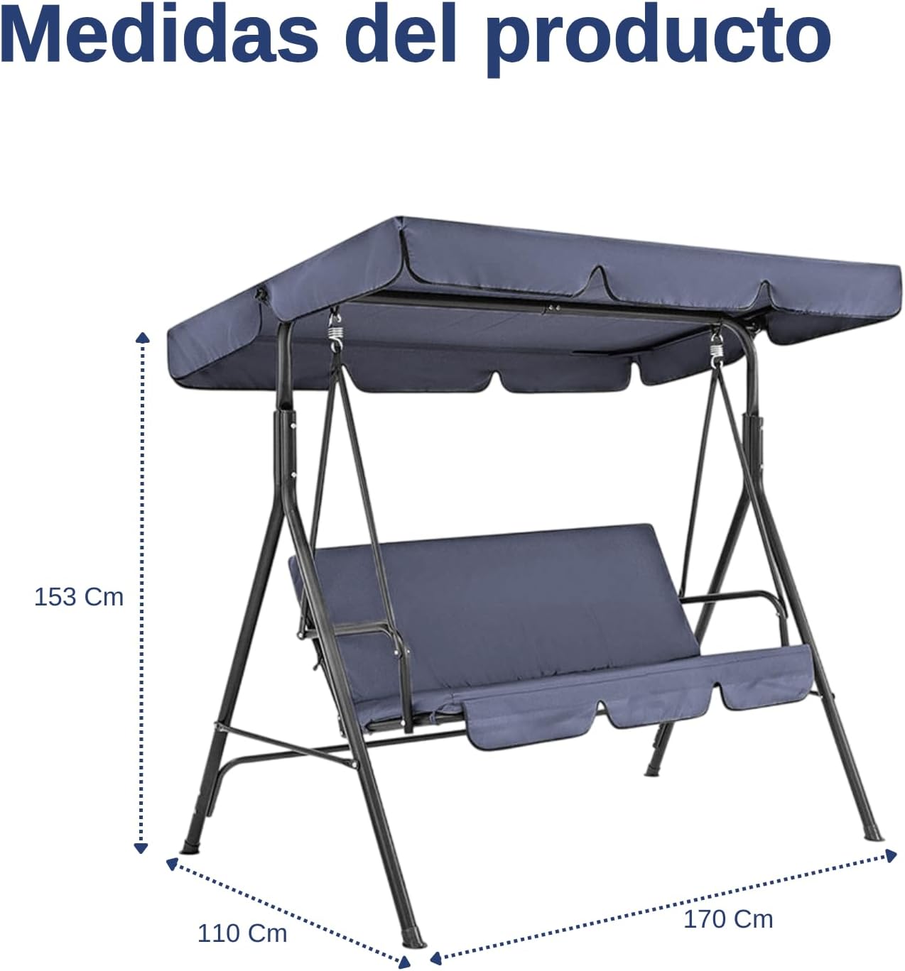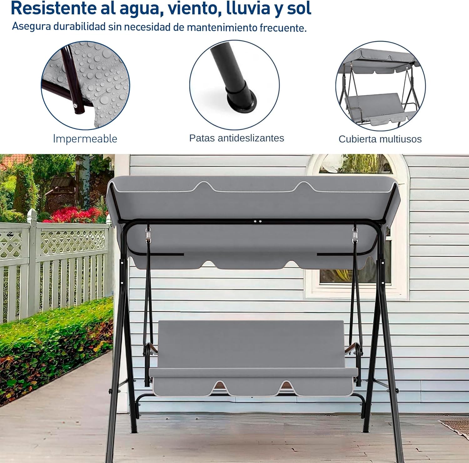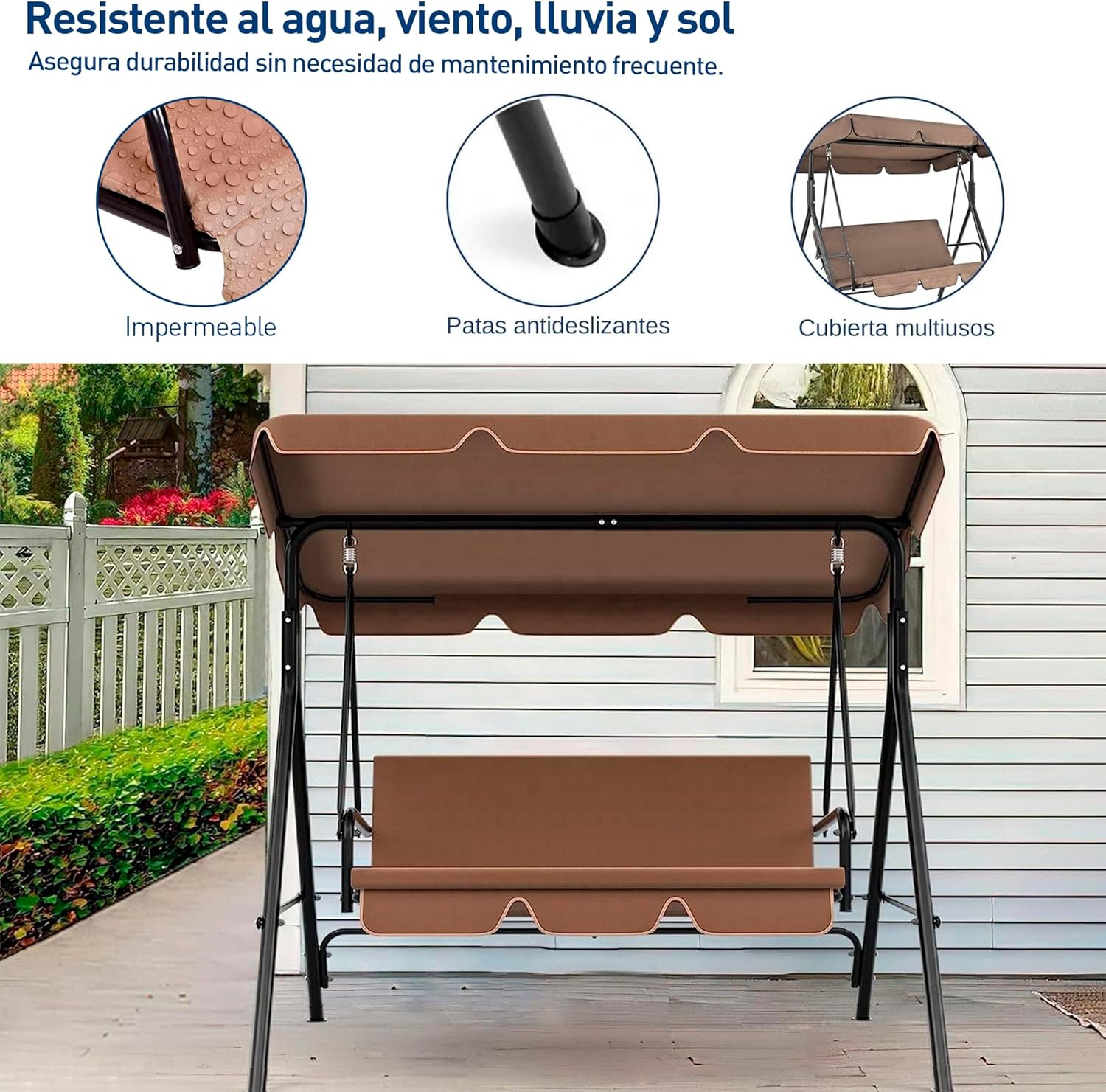 🪑 Banca mecedora de 3 asientos: Ideal para jardín, patio, terraza o junto a la piscina.