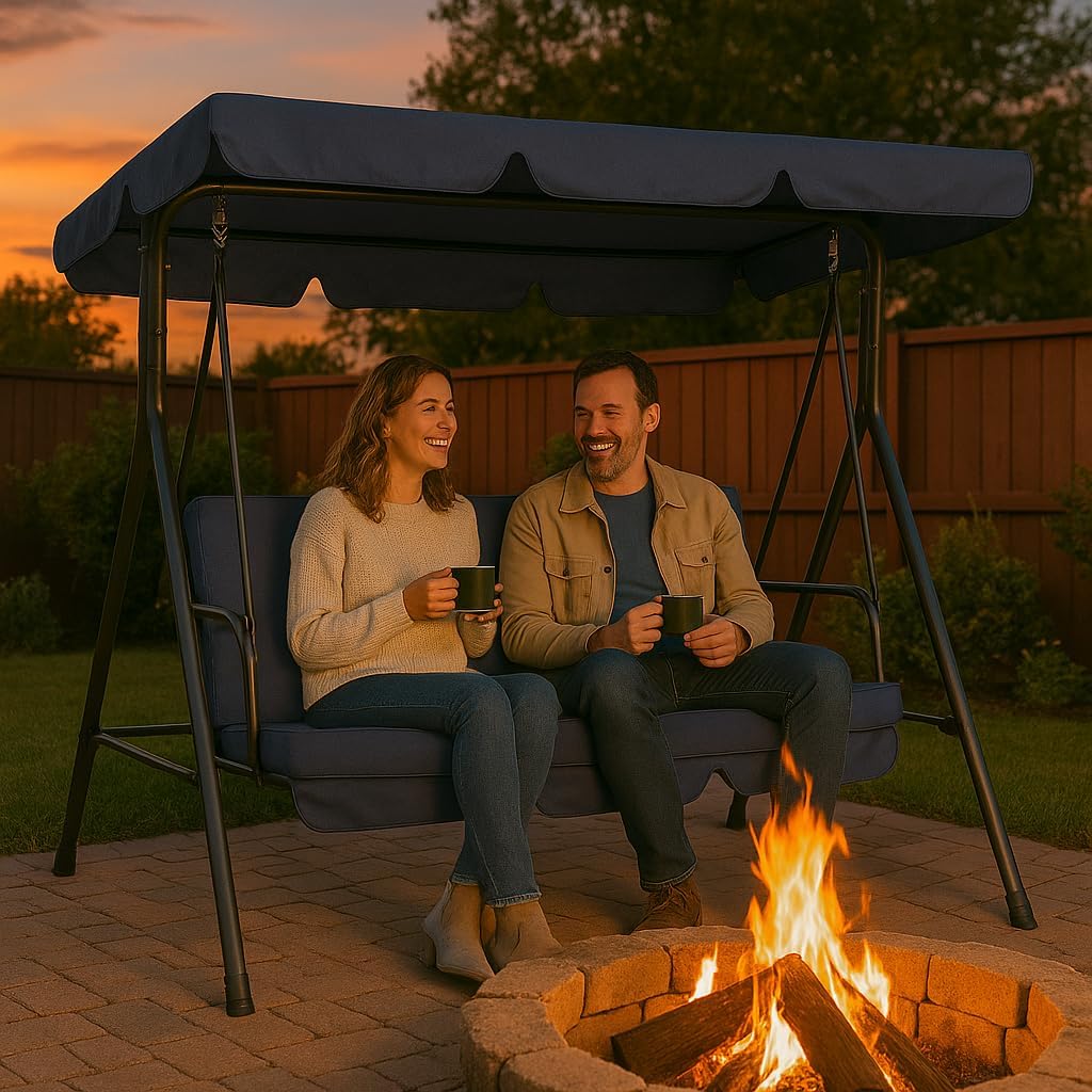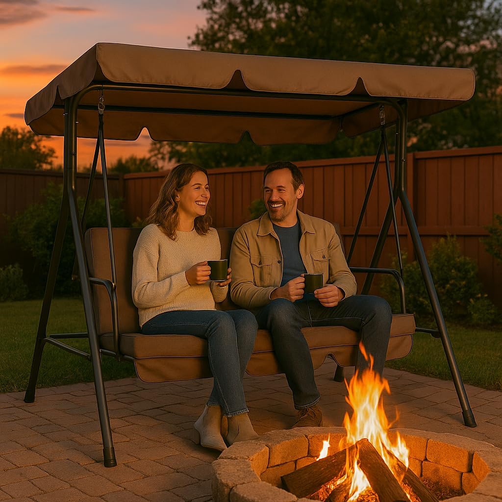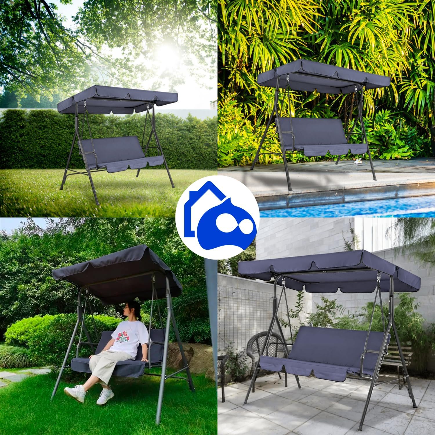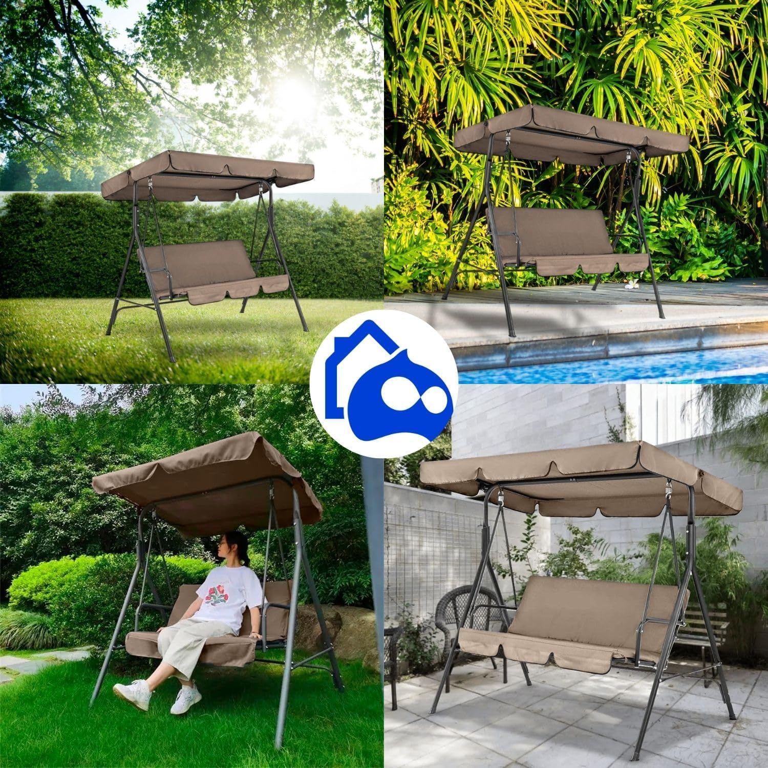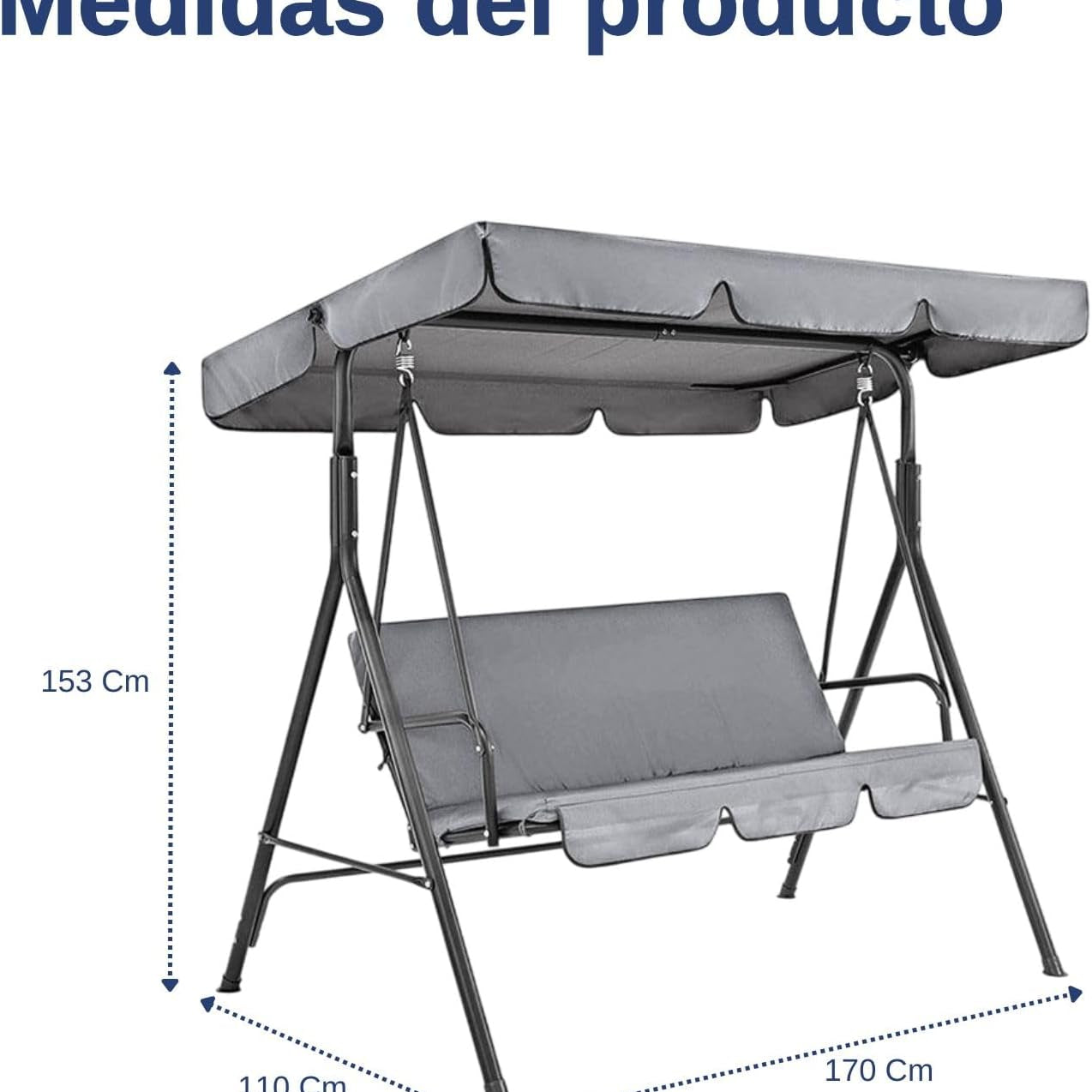🪑 Banca mecedora de 3 asientos: Ideal para jardín, patio, terraza o junto a la piscina.