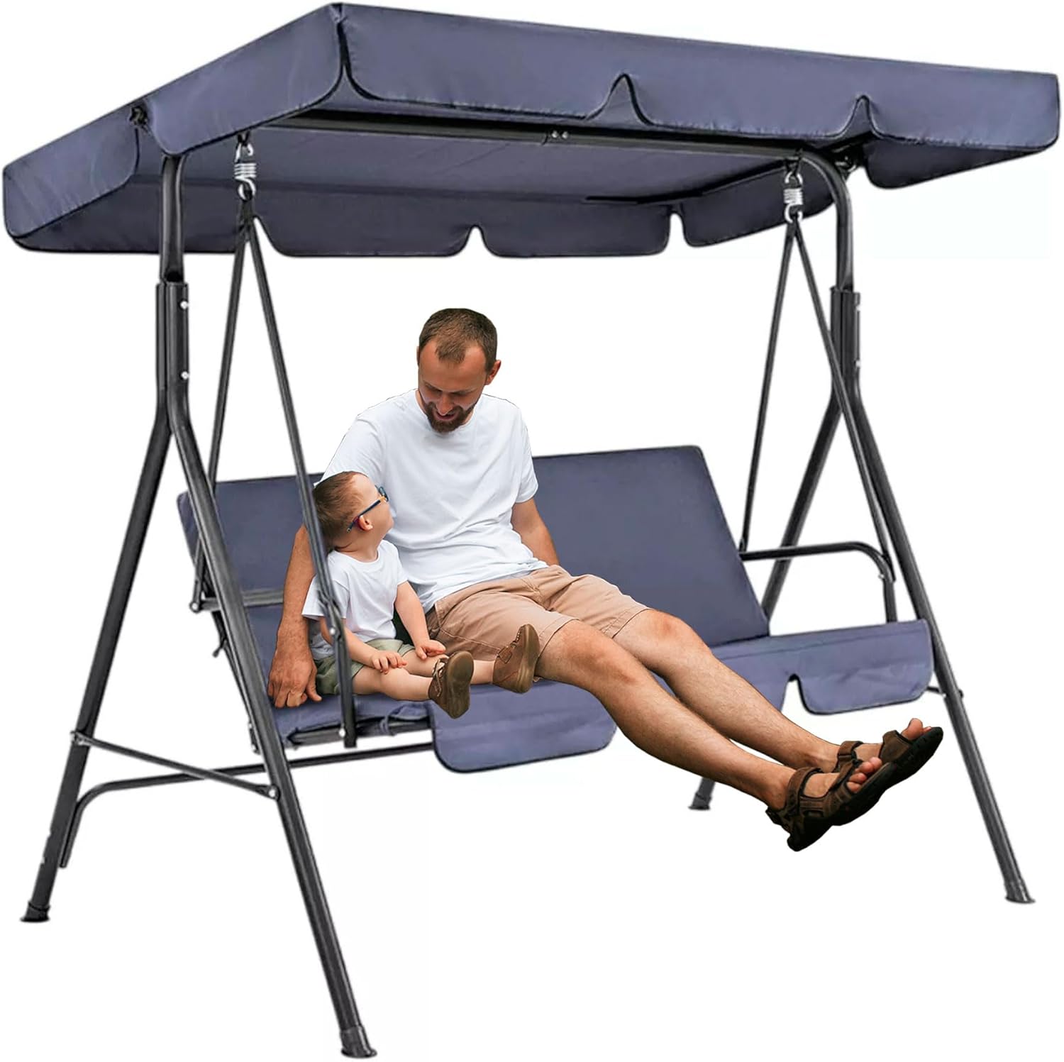 Banca Mecedora Bluelander de 3 Asientos con Toldo Ajustable para Jardín o Patio