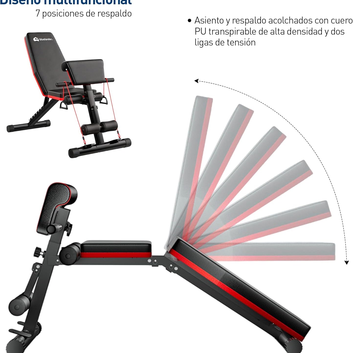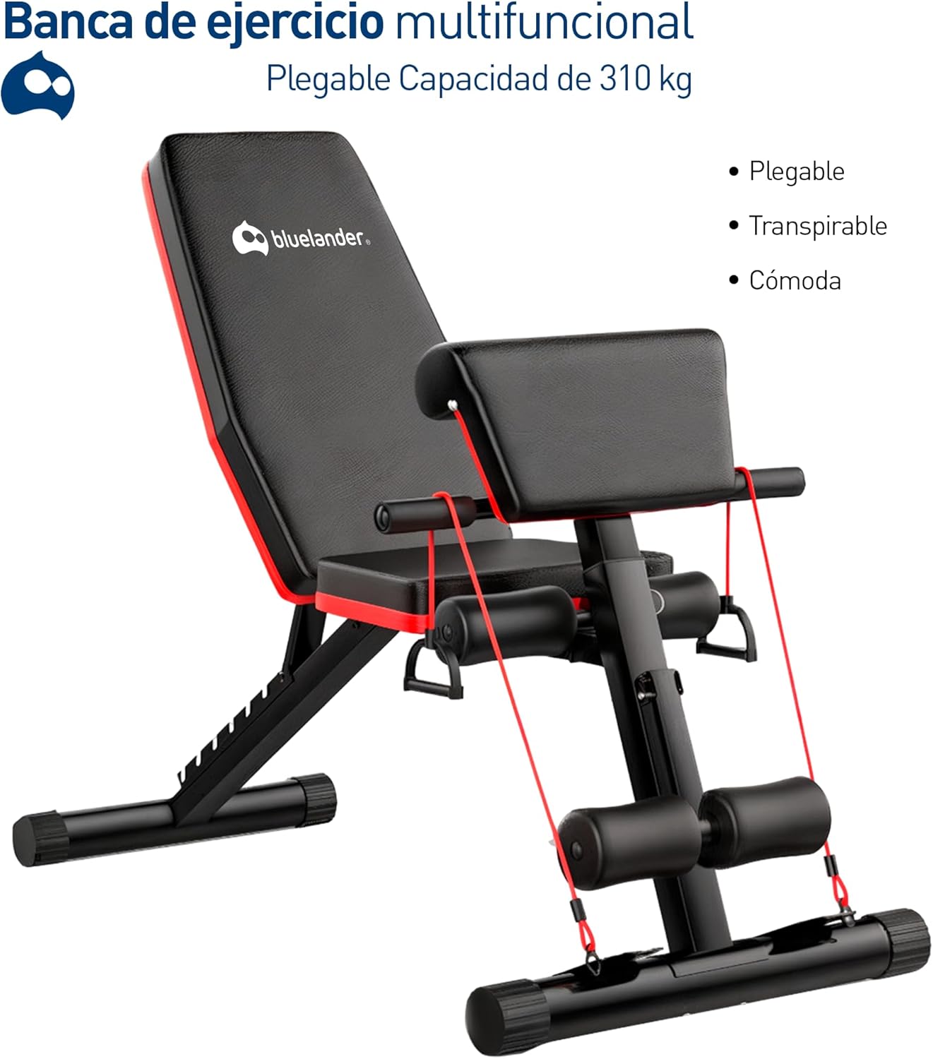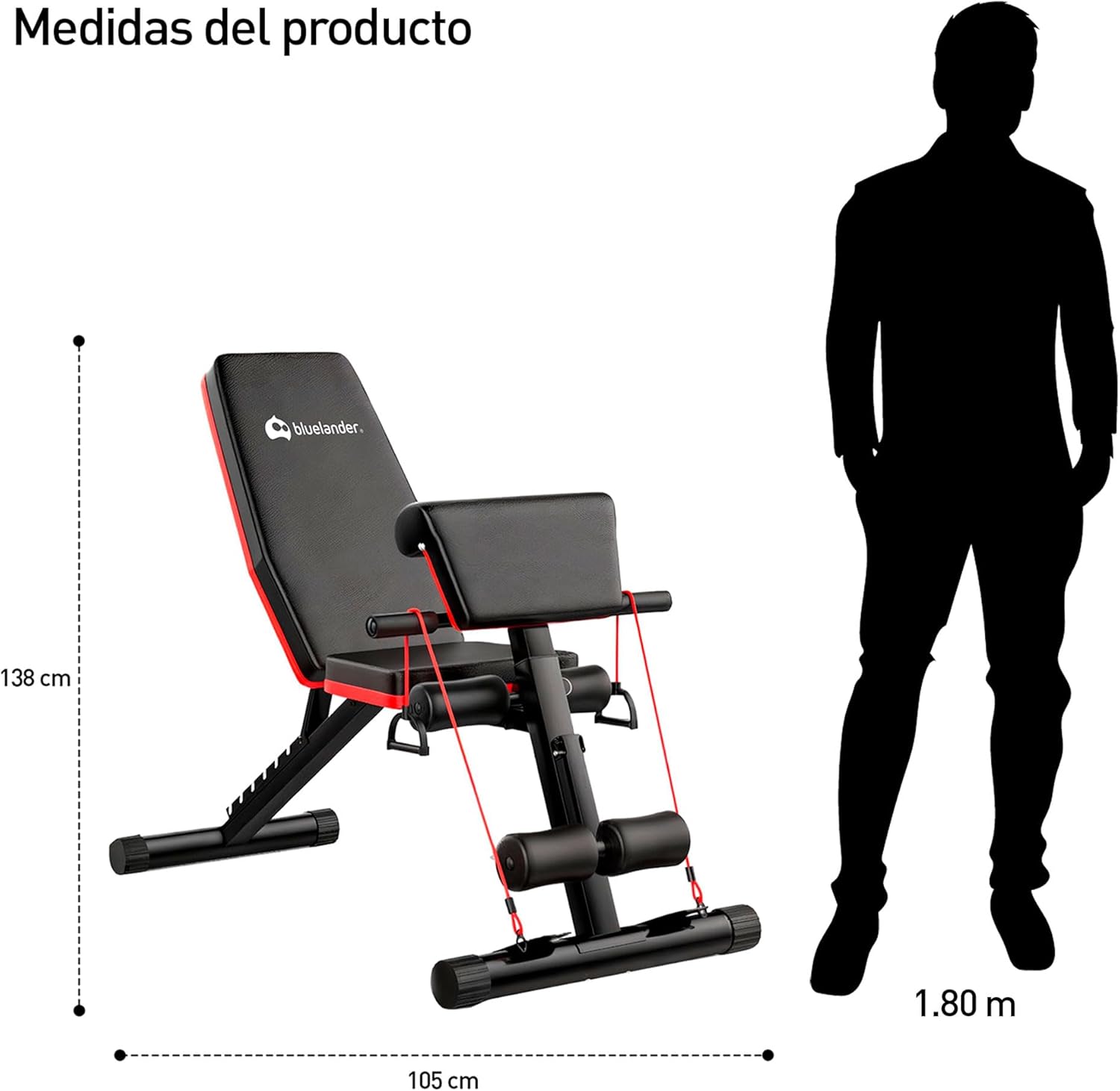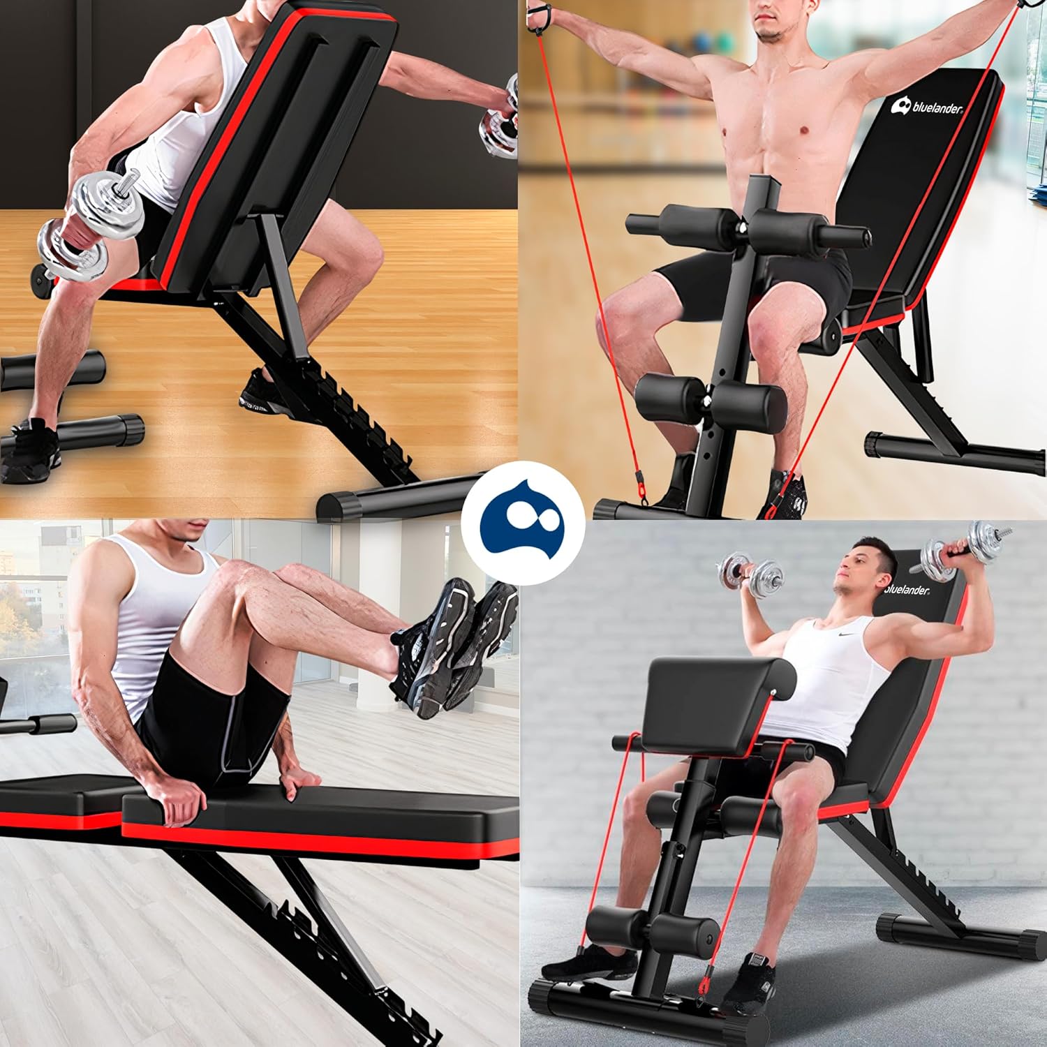 Bluelander Banco de Ejercicio 12 en 1, Soporta 310 kg, con Ligas