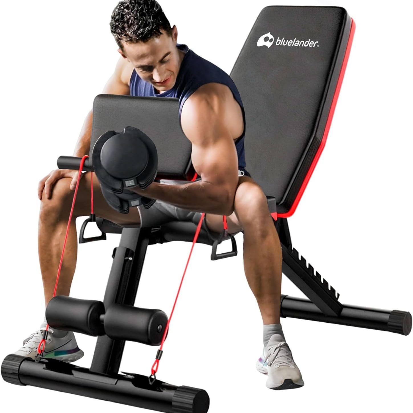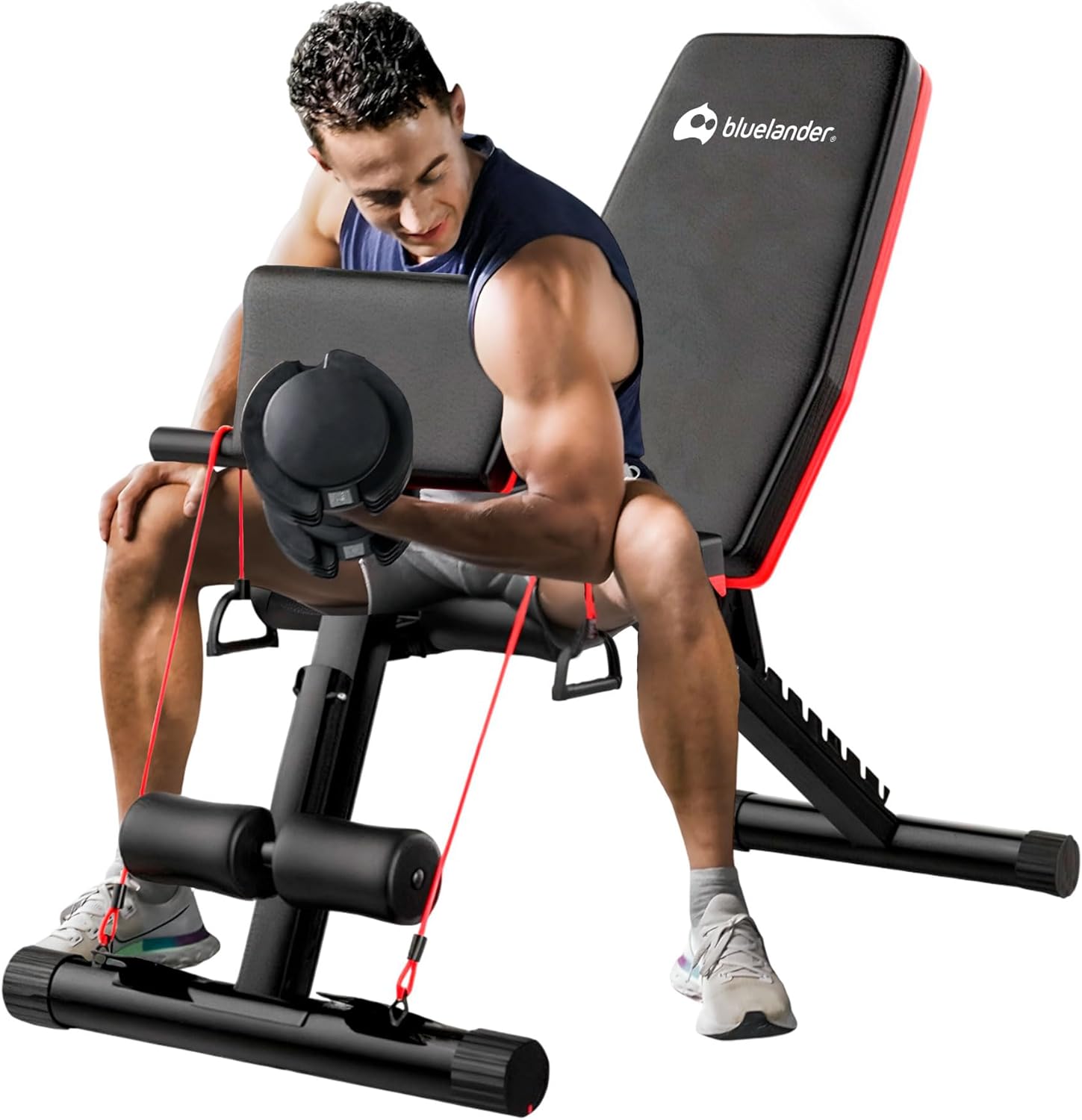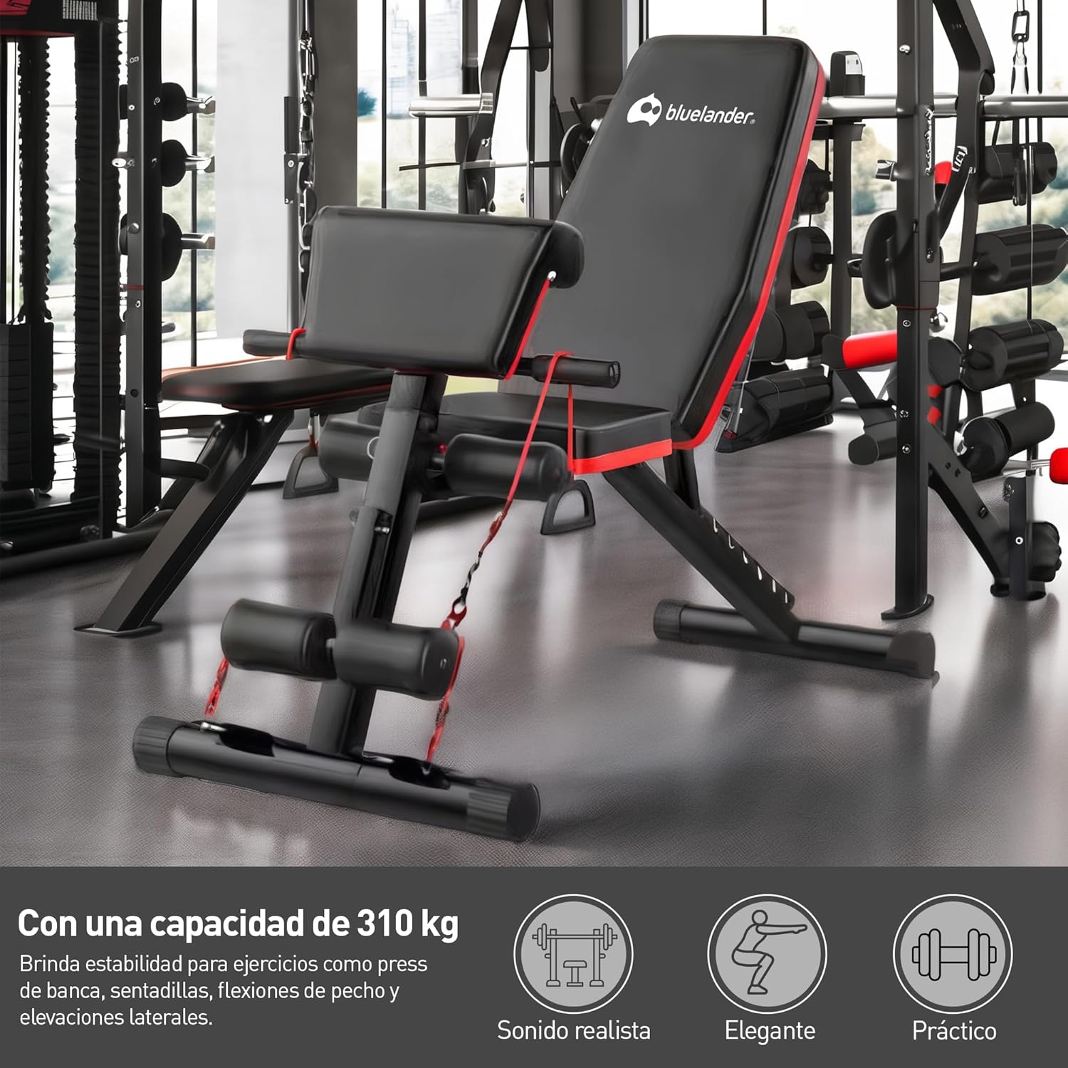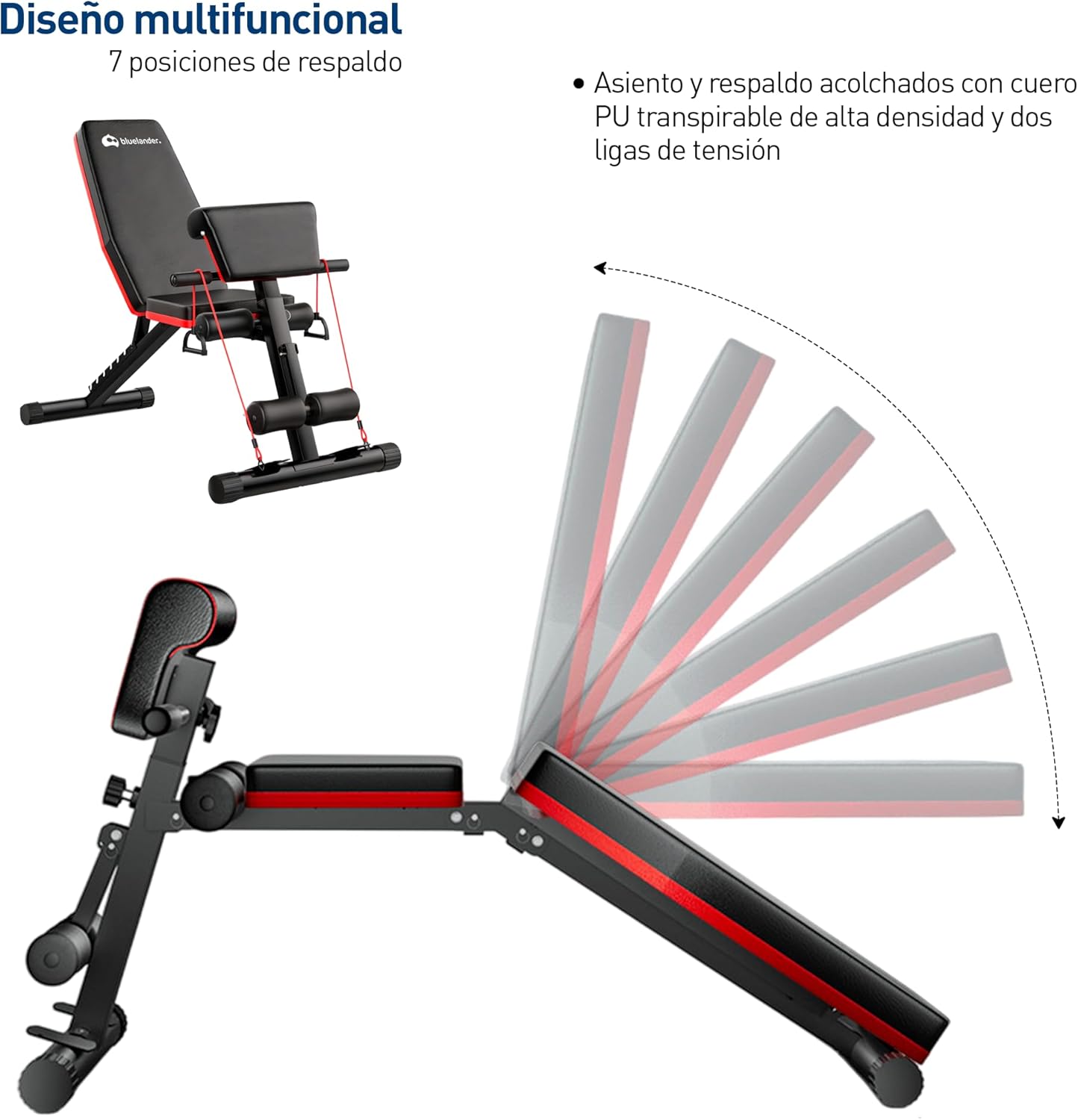 Bluelander Banco de Ejercicio 12 en 1, Soporta 310 kg, con Ligas