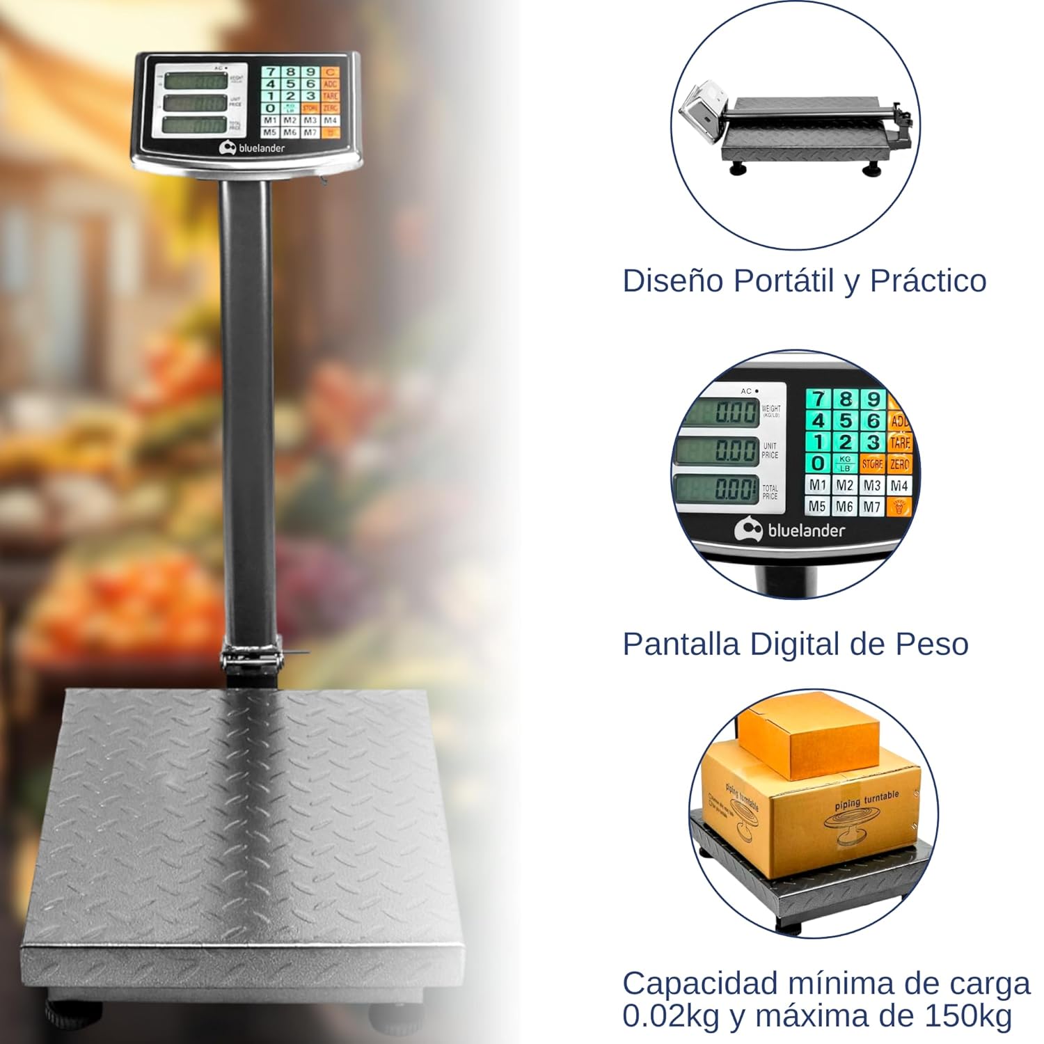 Bluelander Báscula Digital Comercial, Plegable, Soporta 150 kg