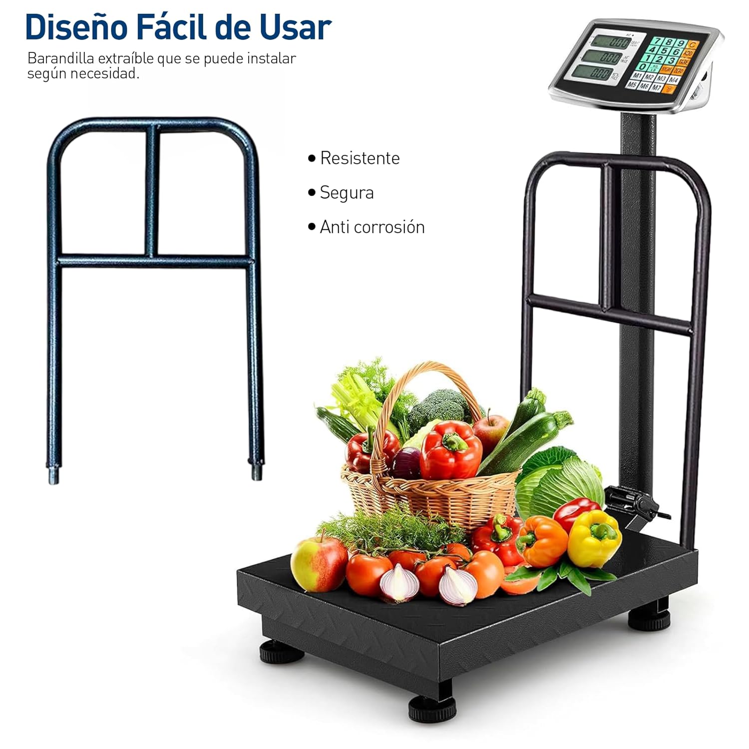 Precisión y resistencia para tu negocio. Con pantalla LCD luminosa, batería recargable y plataforma antideslizante, esta báscula es ideal para mercados, abarrotes y comercios.