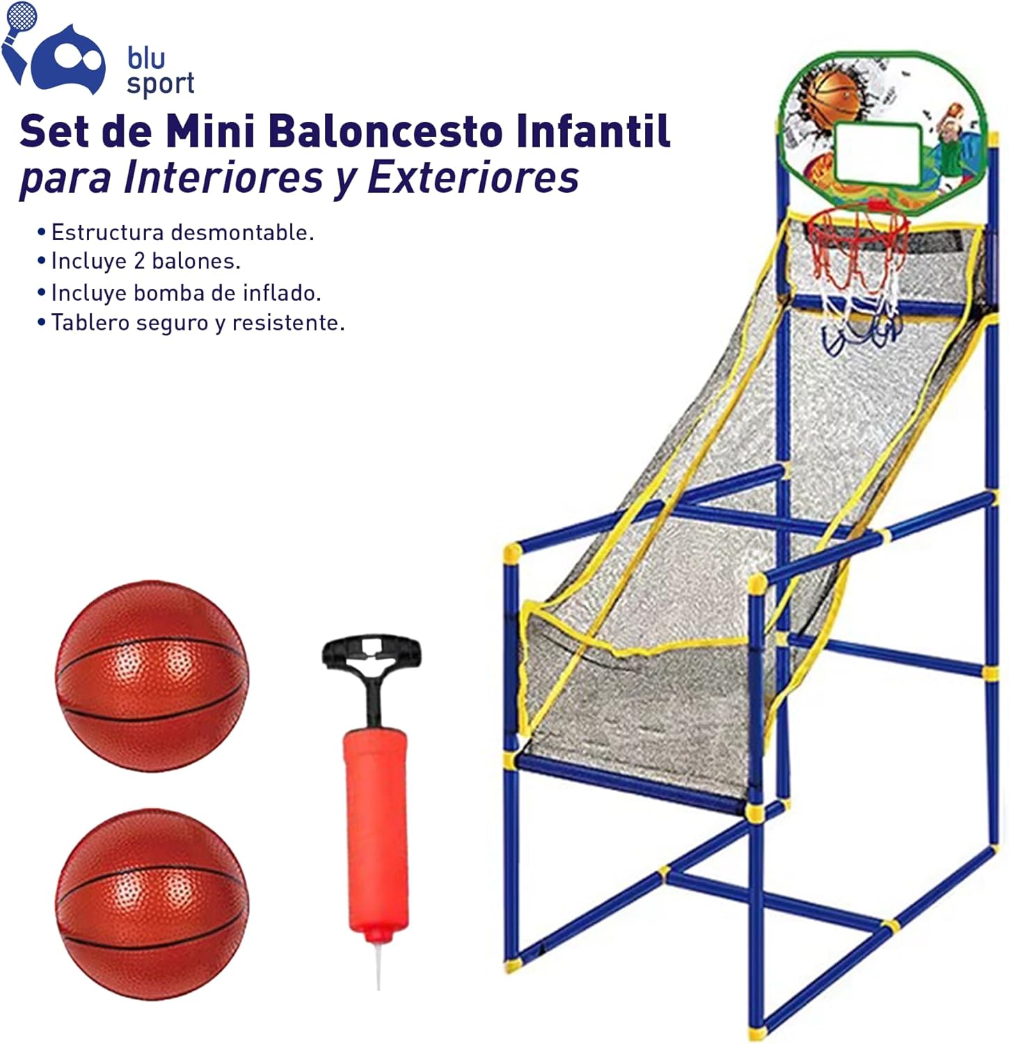 Bluelander Canasta de Básquet para Niños con 4 Pelotas y Bomba