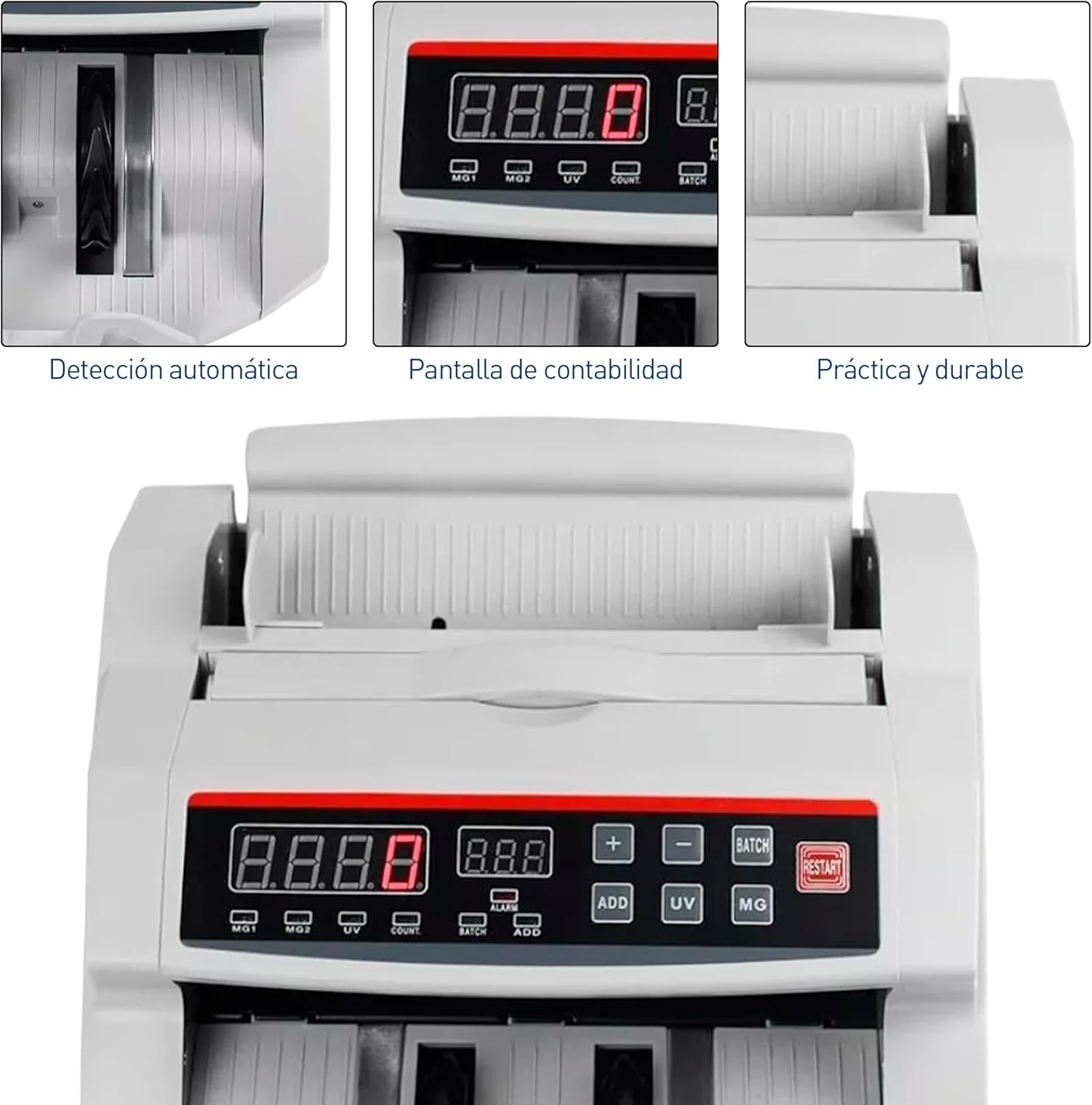 🔹 Detección Avanzada: Tecnología MG y UV para identificar falsificaciones.