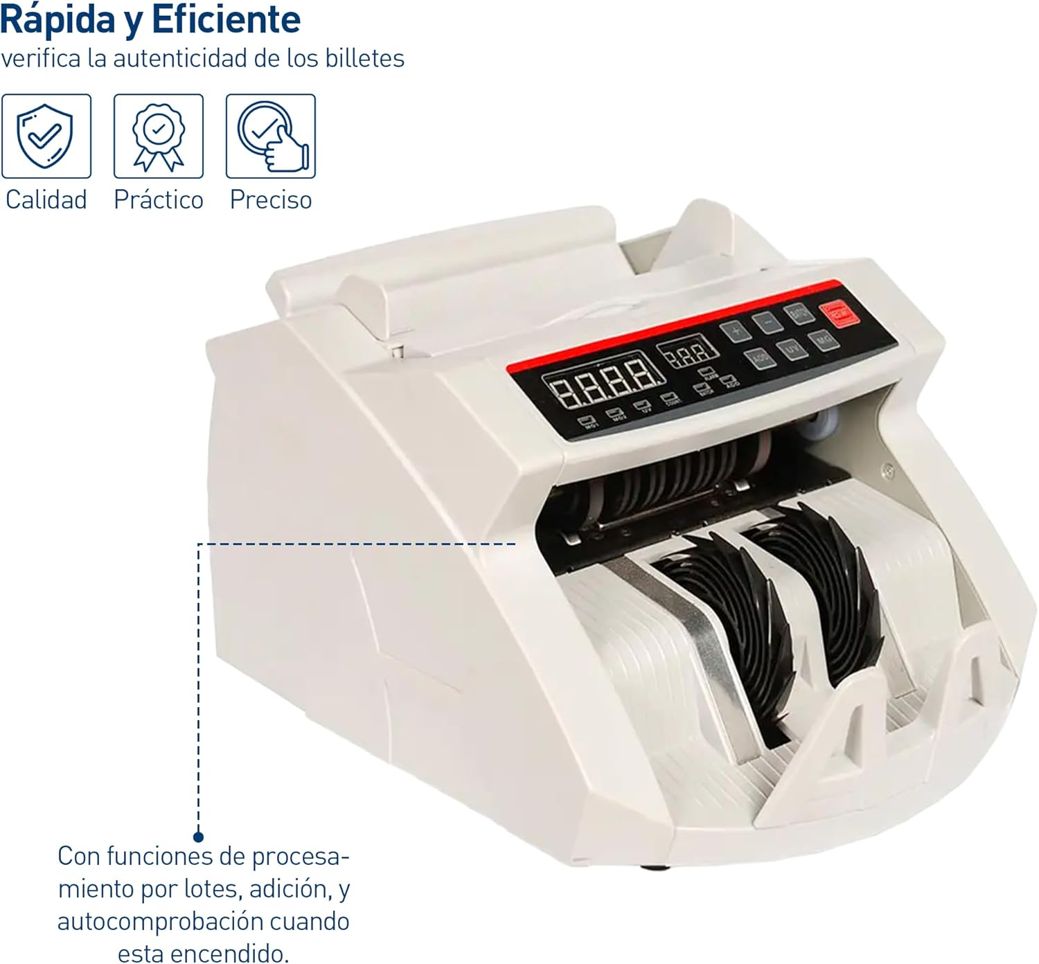 Optimiza tu negocio con esta contadora de billetes rápida, precisa y equipada con detección avanzada de billetes falsos. Ideal para bancos, supermercados y oficinas.