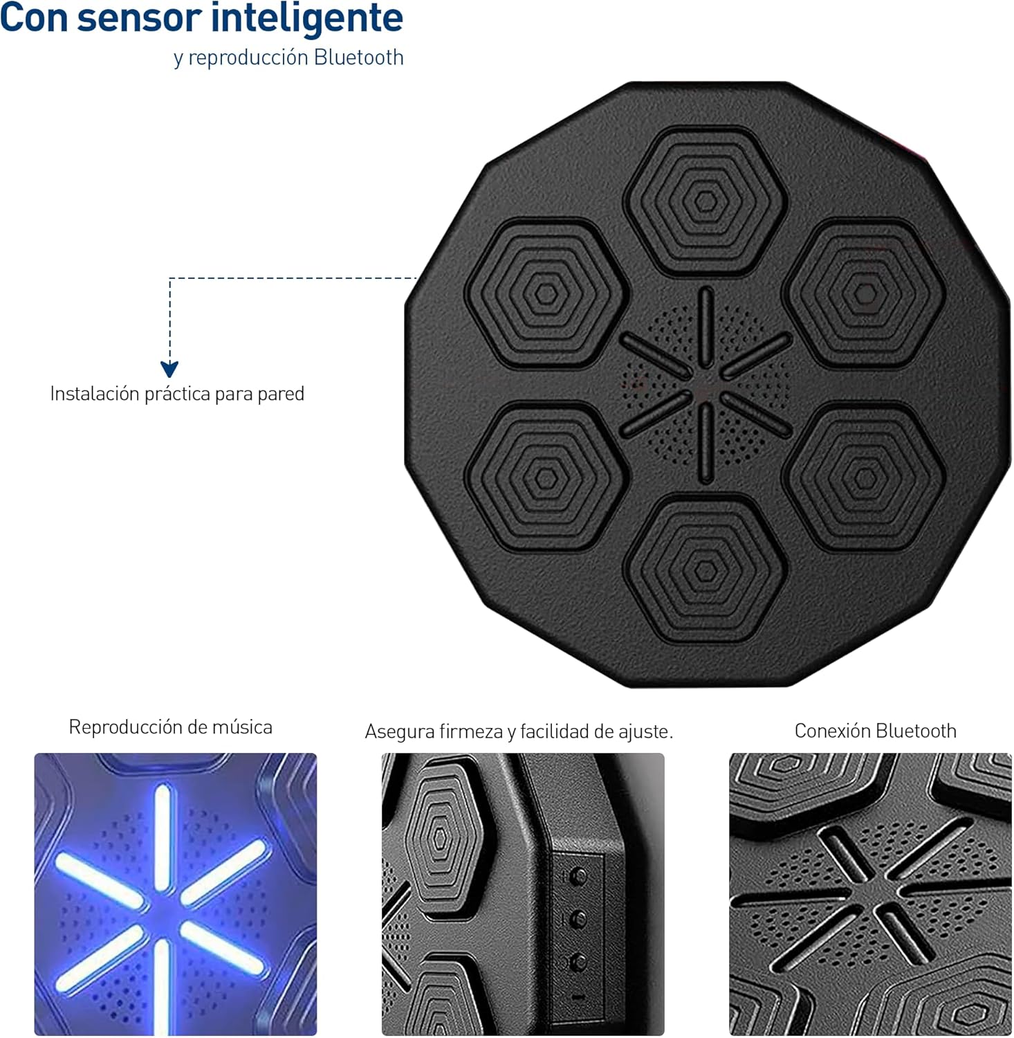 ¡Entrena como un profesional con ritmo y tecnología! Esta innovadora máquina de boxeo con luces y altavoces sincroniza tus golpes con la música, mejorando reflejos y coordinación. Fácil de instalar y con conexión Bluetooth para entrenar con tu playlist favorita.