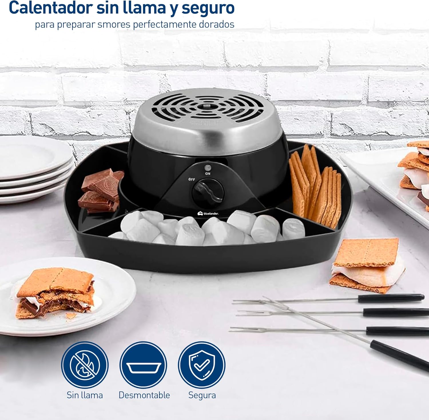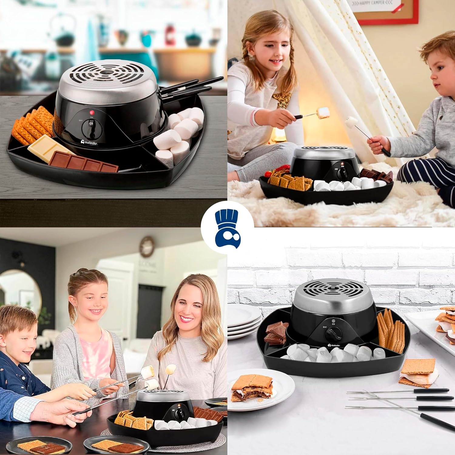 Bluelander Máquina Eléctrica para Smores de Acero Inoxidable con 4 Bandejas y Tenedores – Fácil de Limpiar