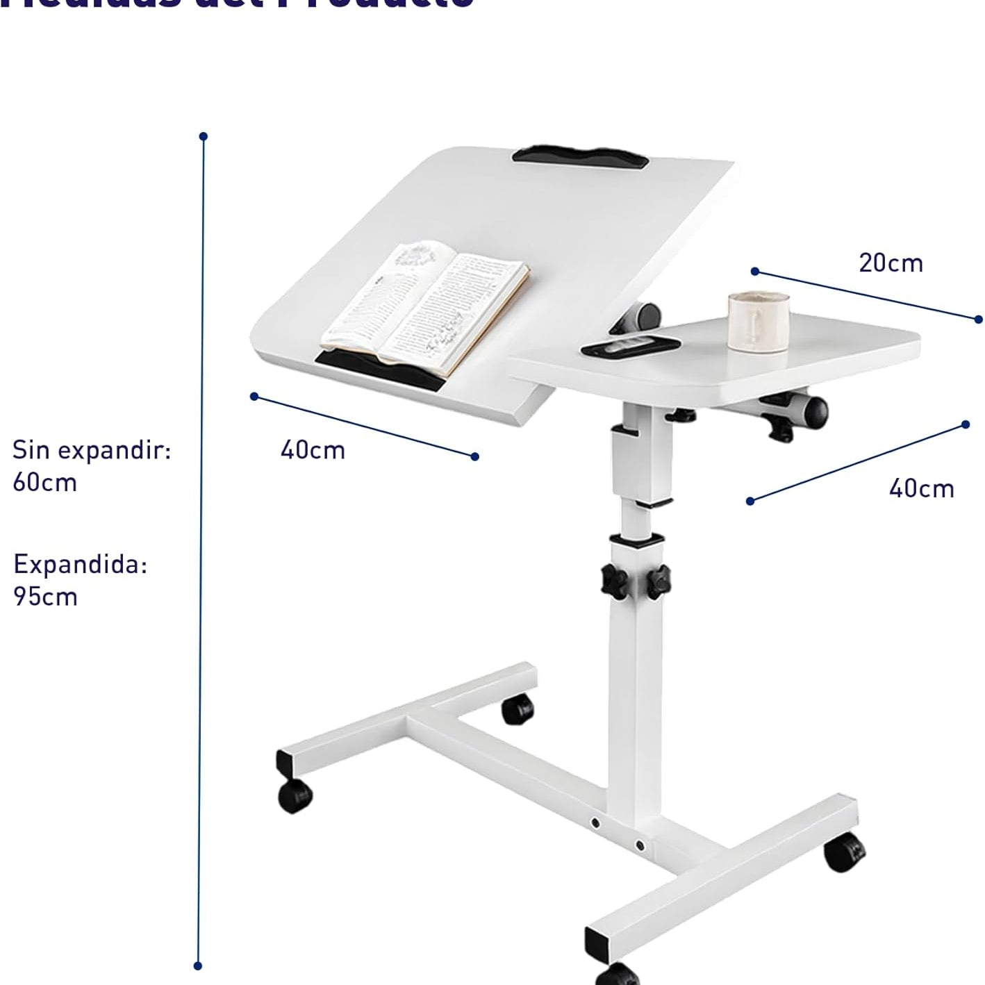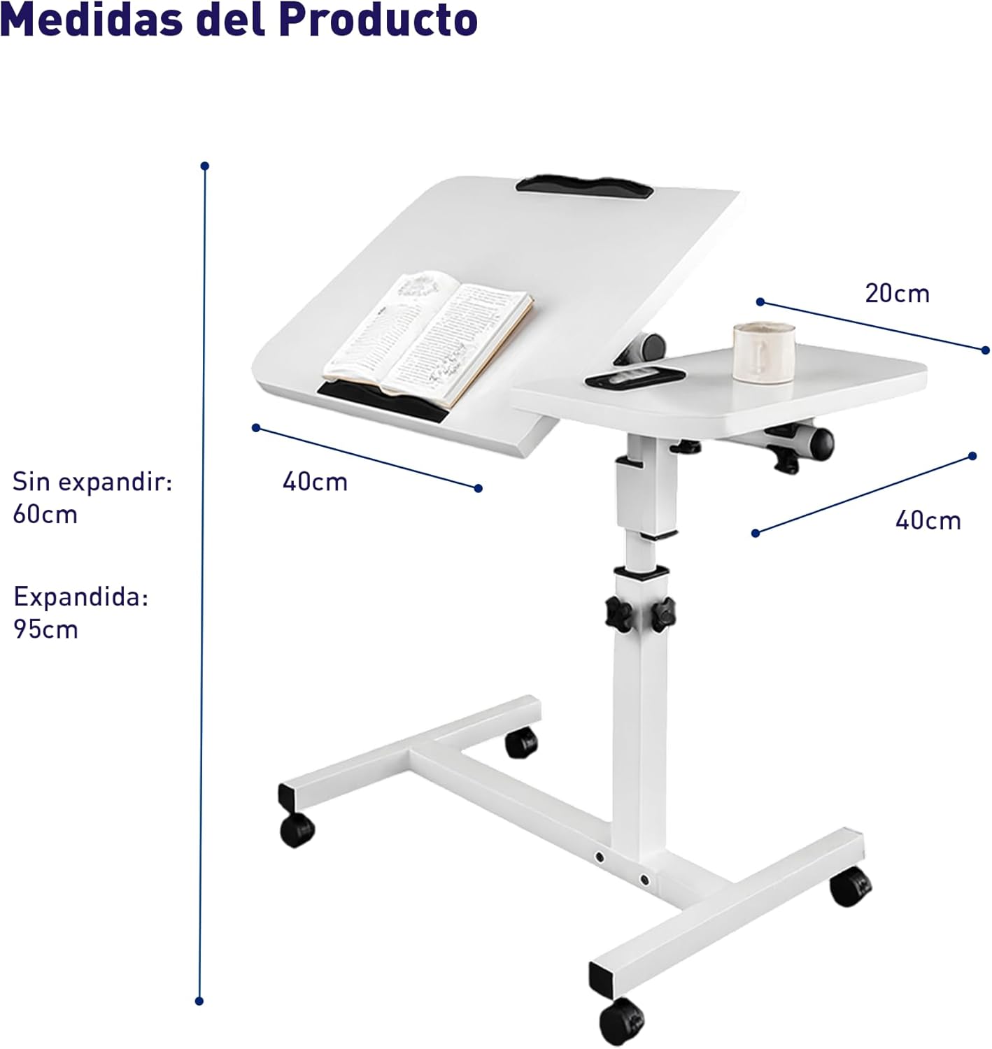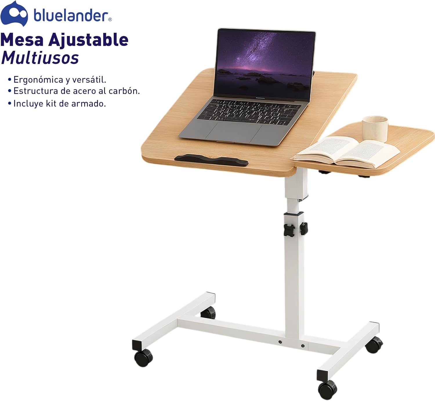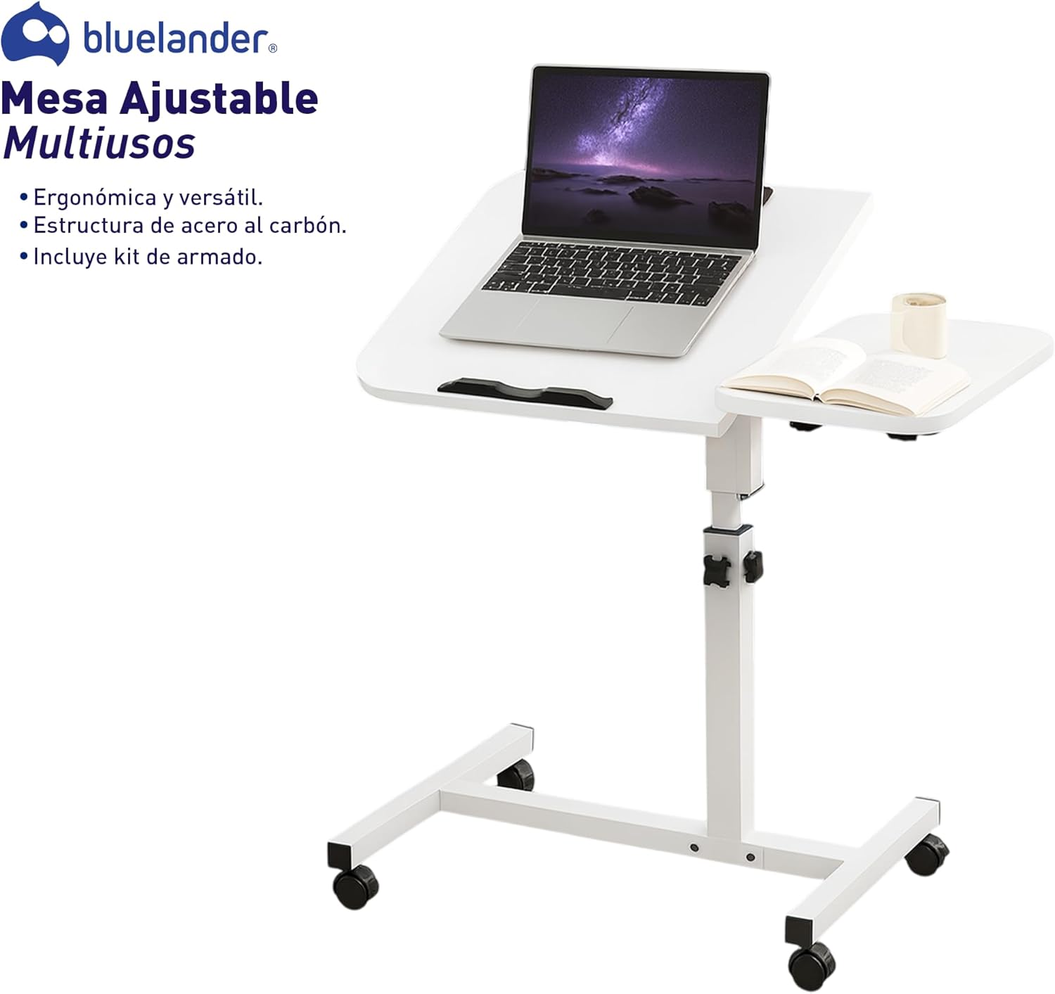 Bluelander Mesa para Laptop 60×40 cm Altura Ajustable 60–95 cm con Ruedas y Bloqueo