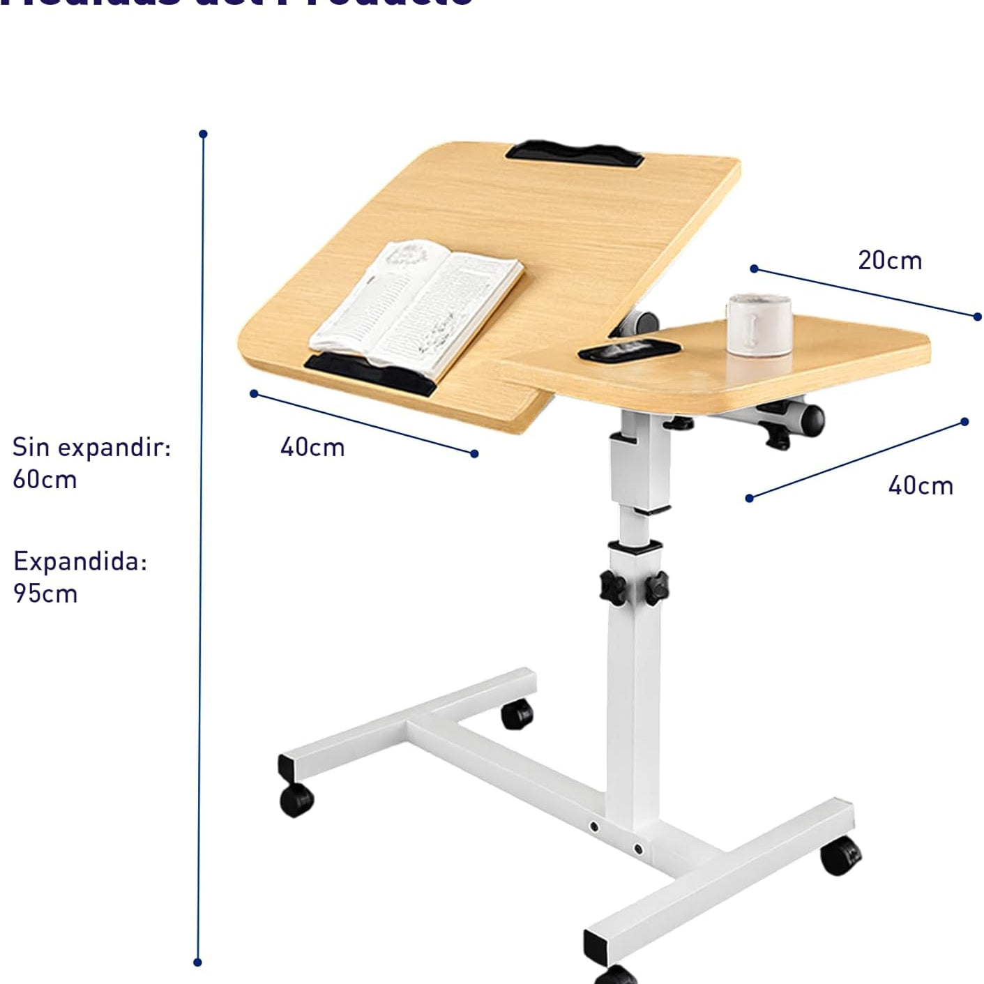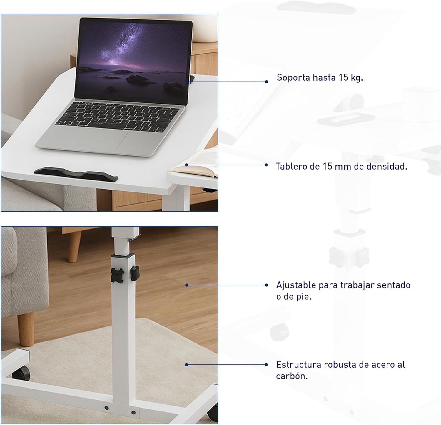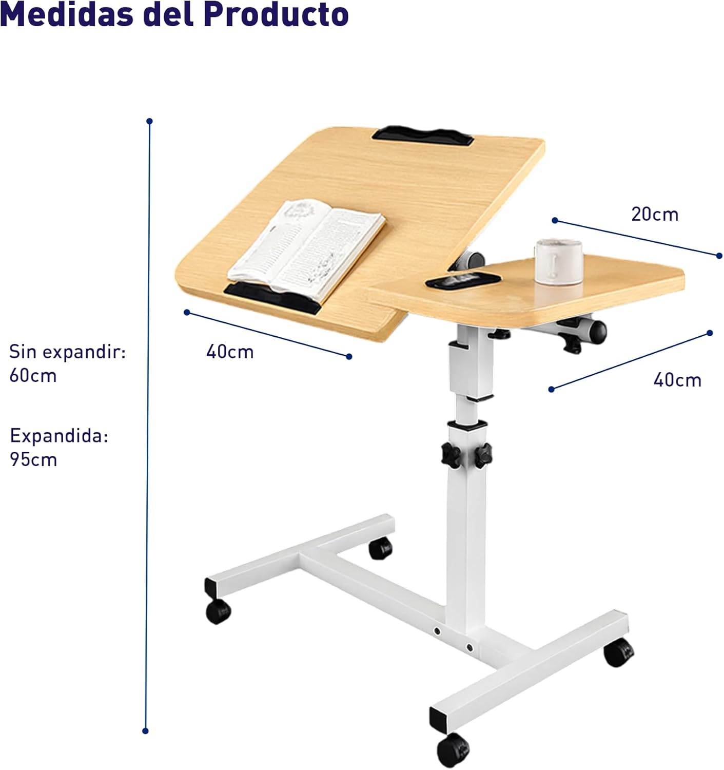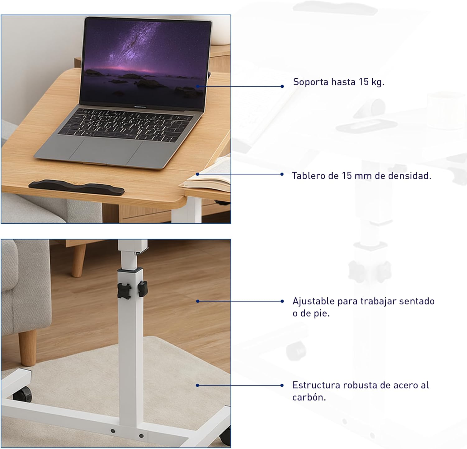 Bluelander Mesa para Laptop 60×40 cm Altura Ajustable 60–95 cm con Ruedas y Bloqueo