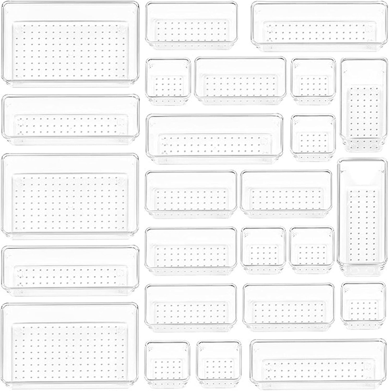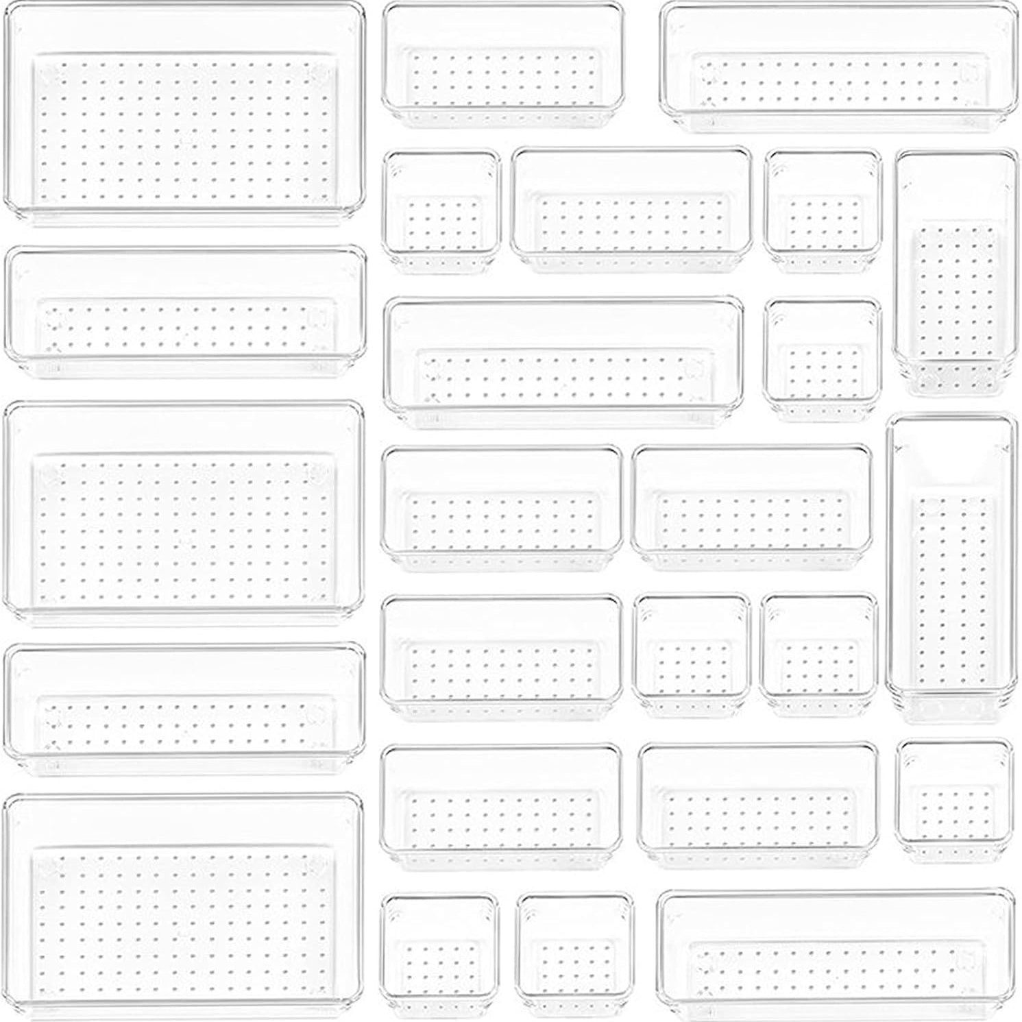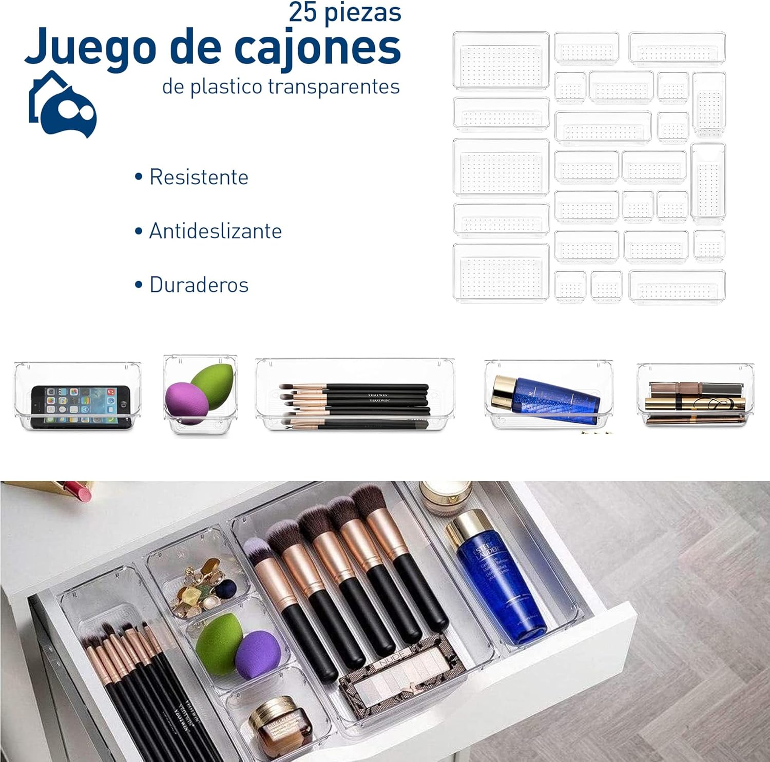 Bluelander Organizador de Cajones 25 Piezas, Plástico Transparente, 4 Tamaños, Ideal para Maquillaje y Escritorio
