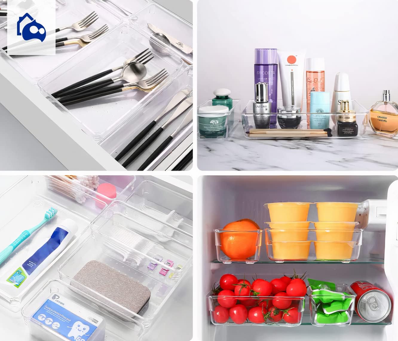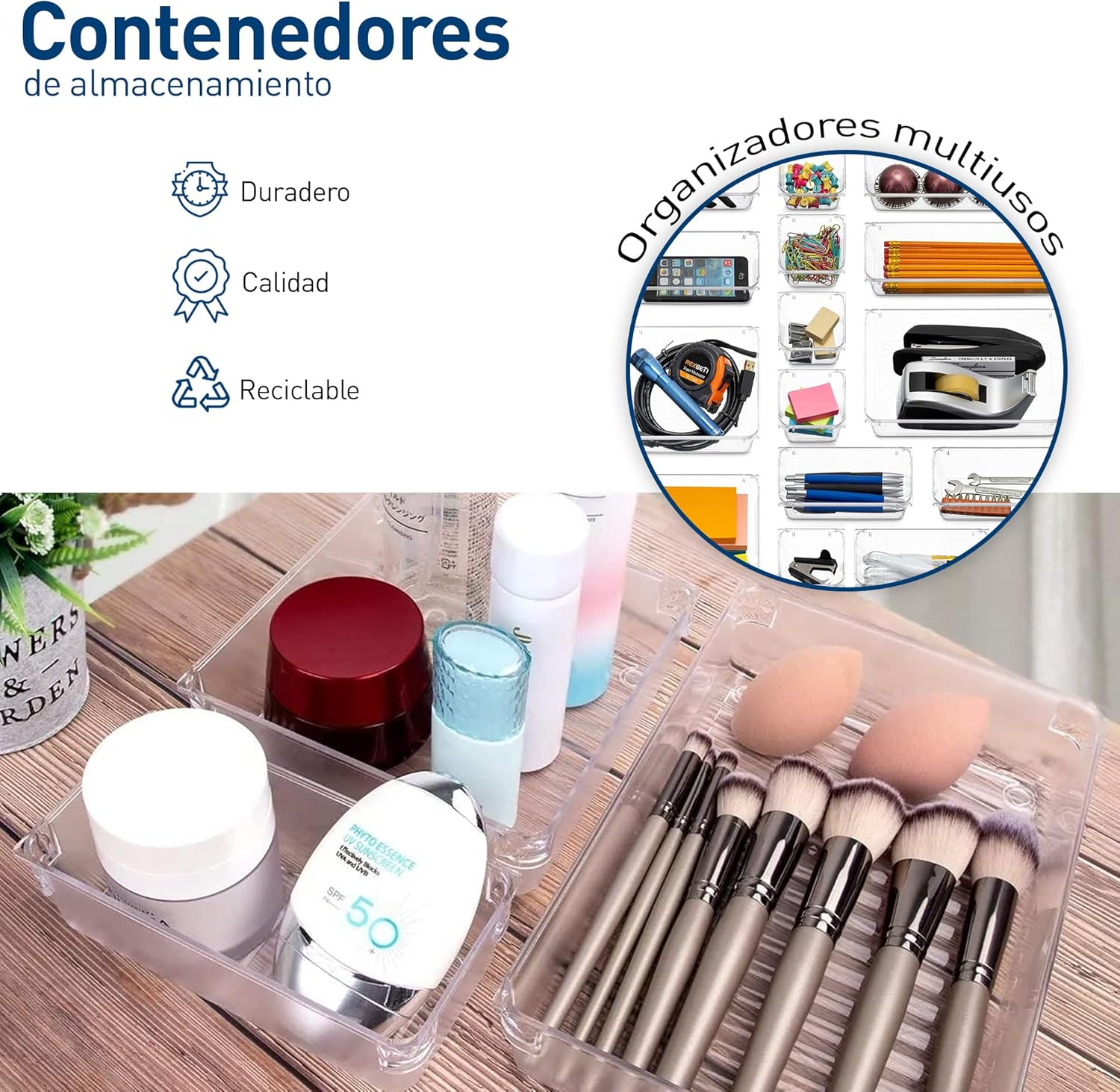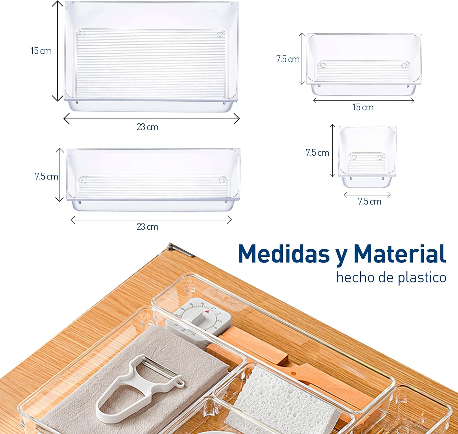 -Organiza cajones con estilo con este set de 25 piezas en plástico transparente y resistente.