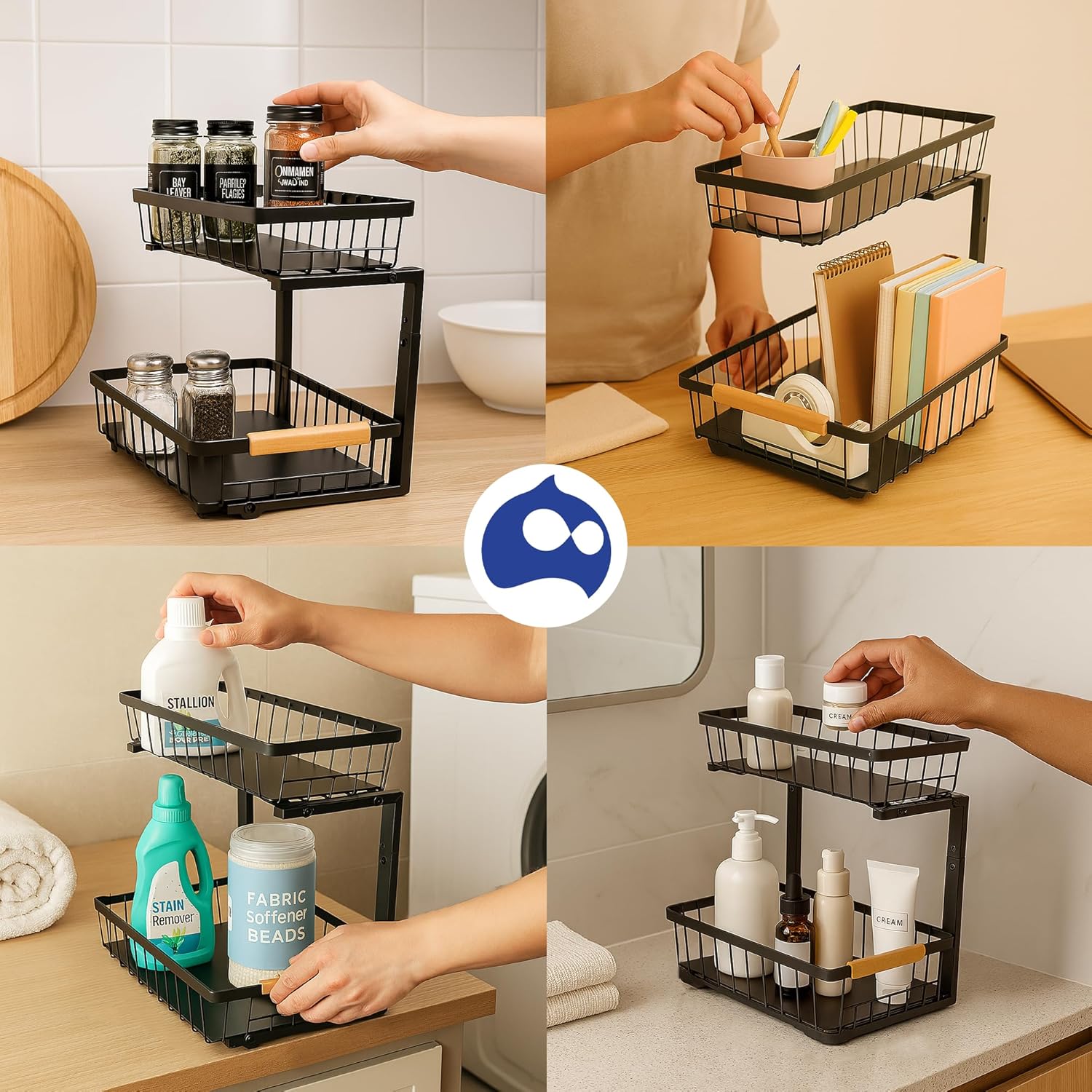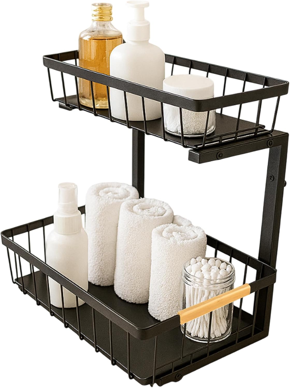 🗄️ Dos niveles tipo cajón con asa lateral para fácil acceso, incluso en espacios con tuberías u obstáculos.