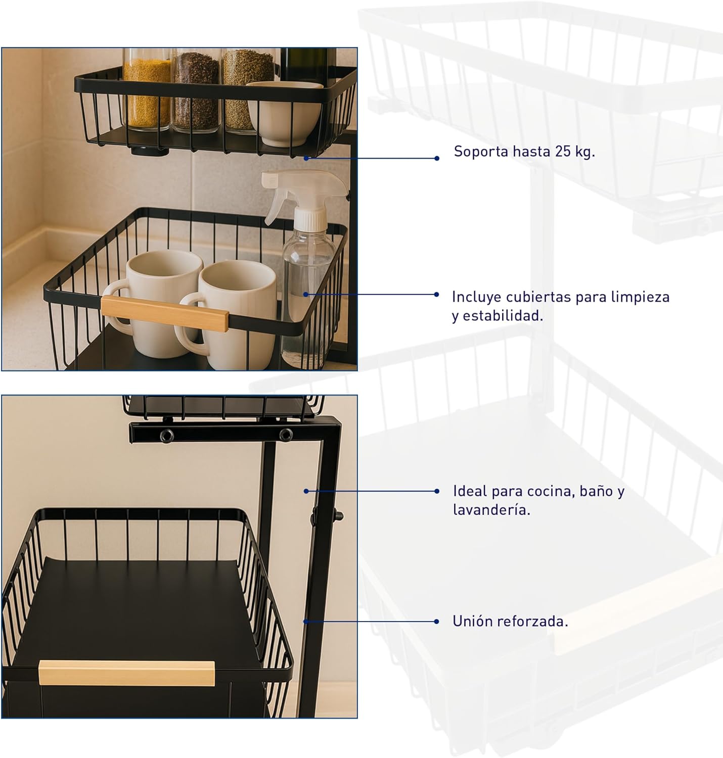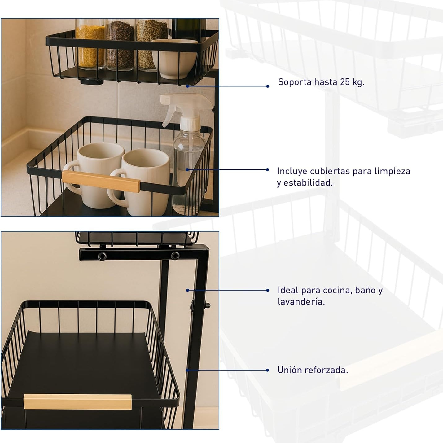 🏠 Uso versátil: ideal para cocina, baño o lavandería, organiza desde productos de limpieza hasta cosméticos o especias.