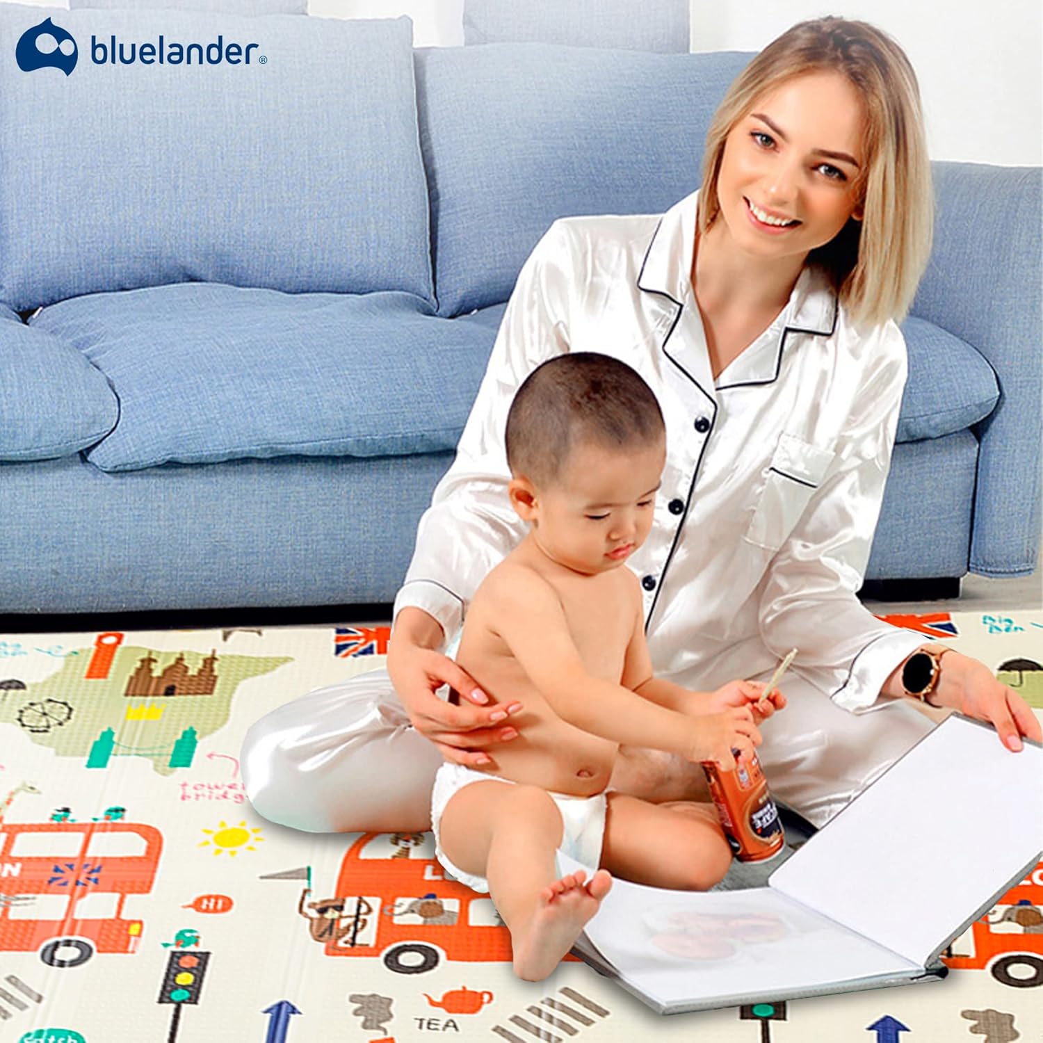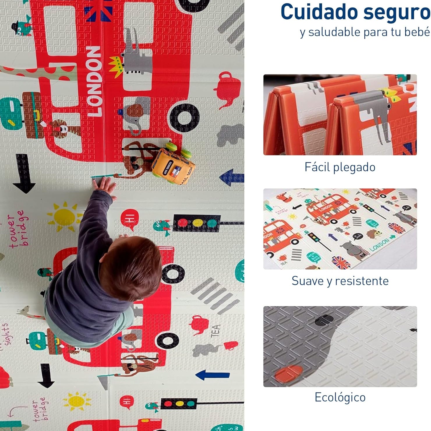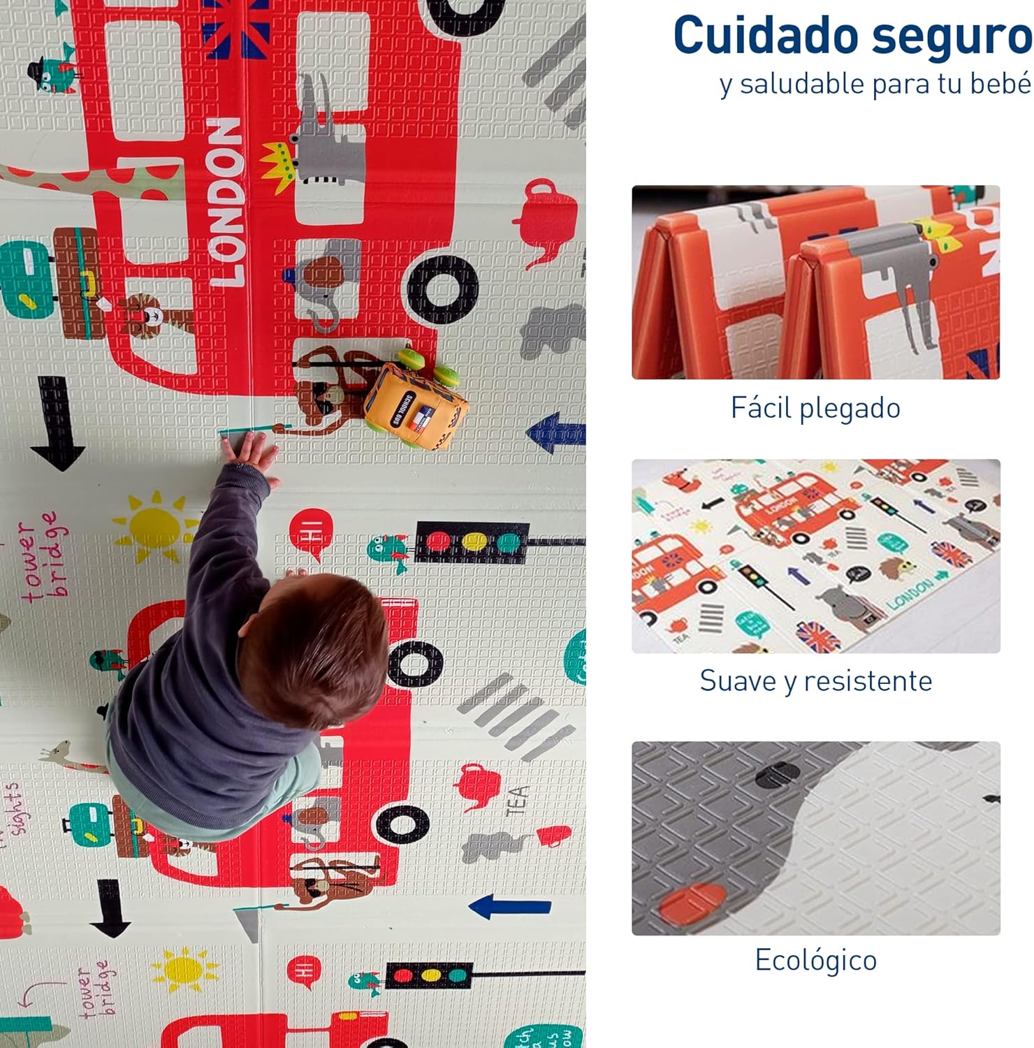 Bluelander "Tapete Plegable para Bebé de Espuma XPE, 2 m x 1.5 m, Diseño Ciudad y Animales"