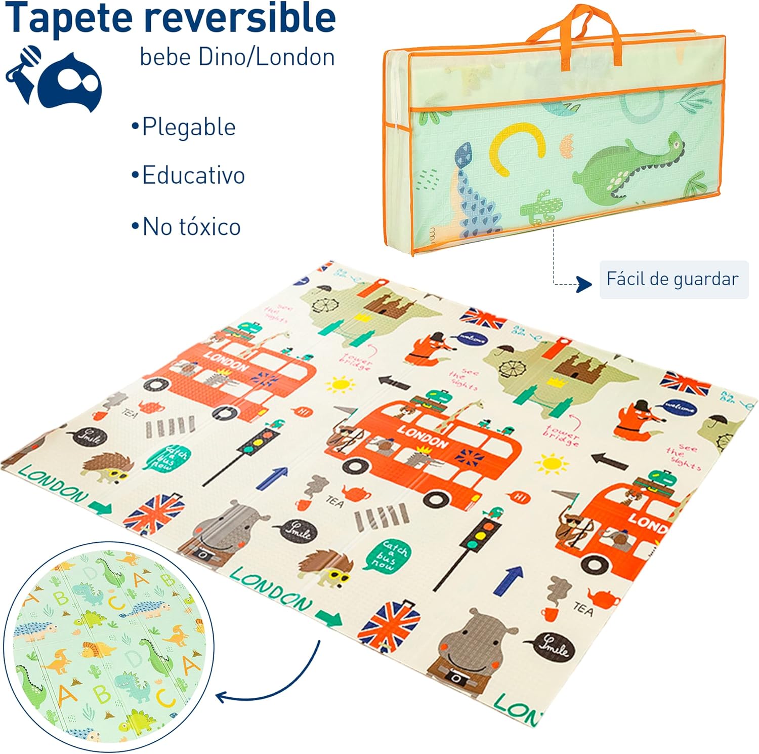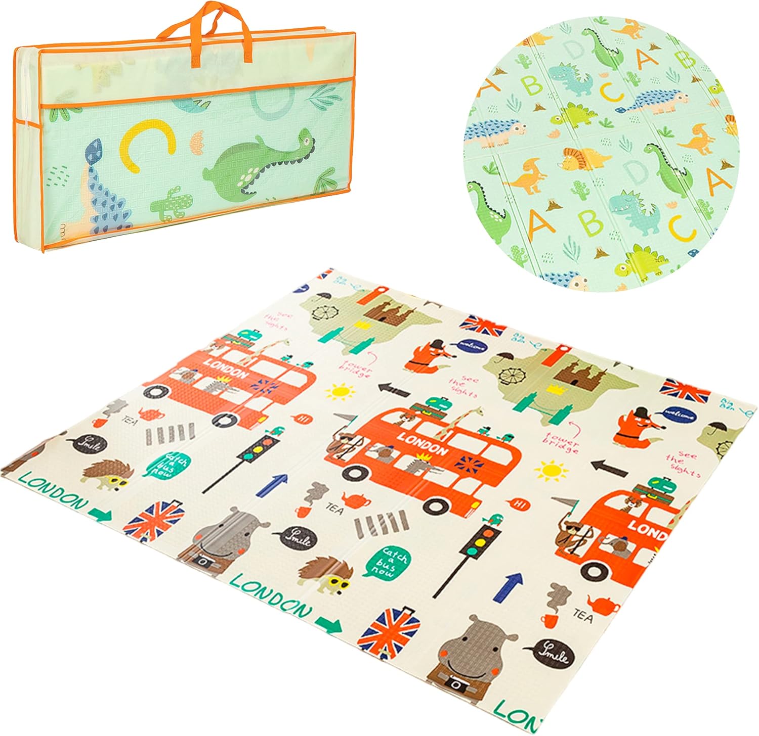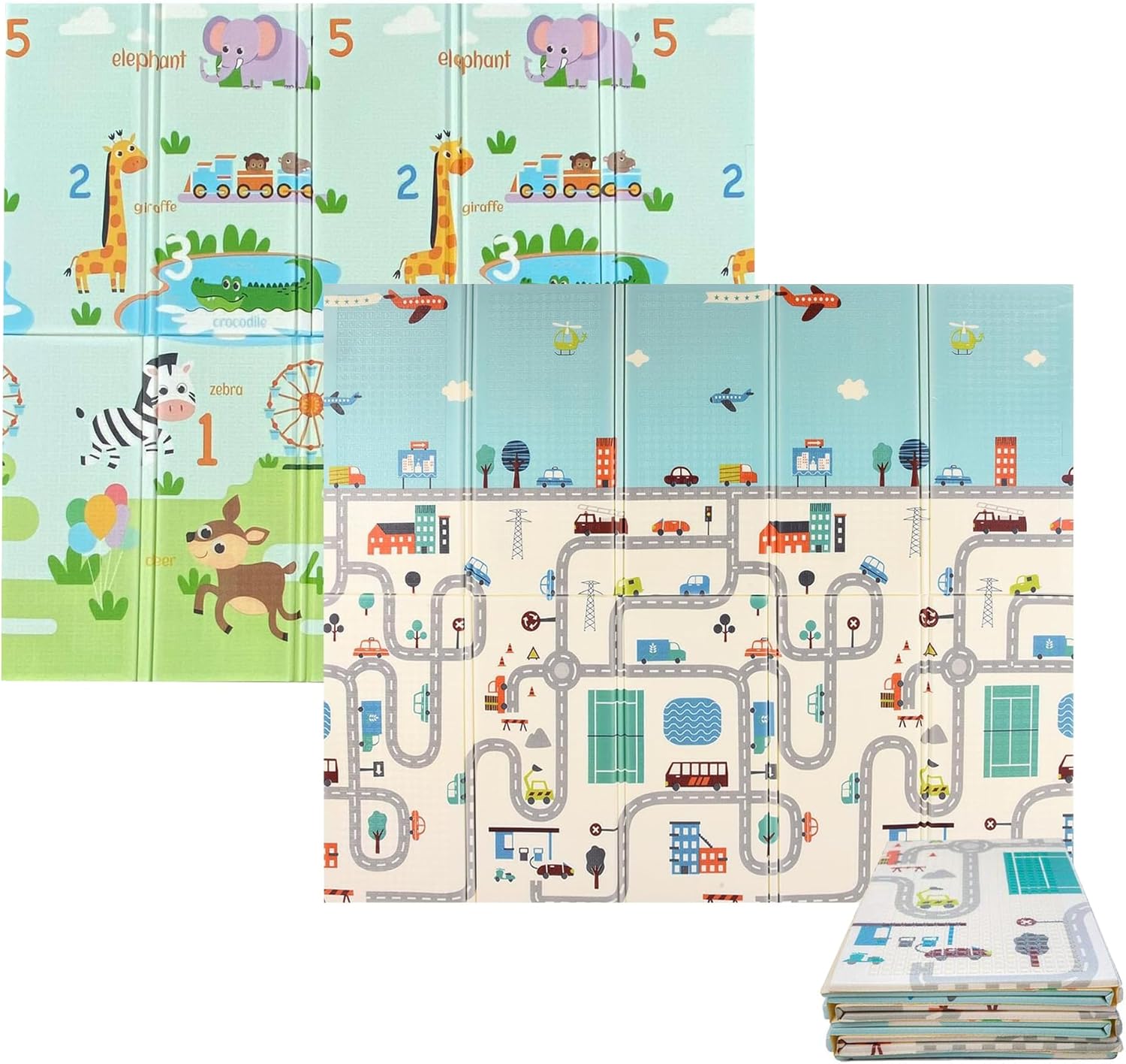 Bluelander "Tapete Plegable para Bebé de Espuma XPE, 2 m x 1.5 m, Diseño Ciudad y Animales"
