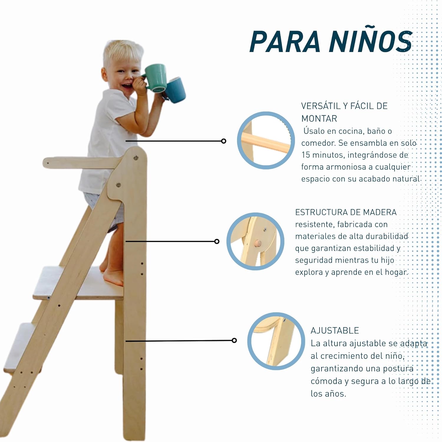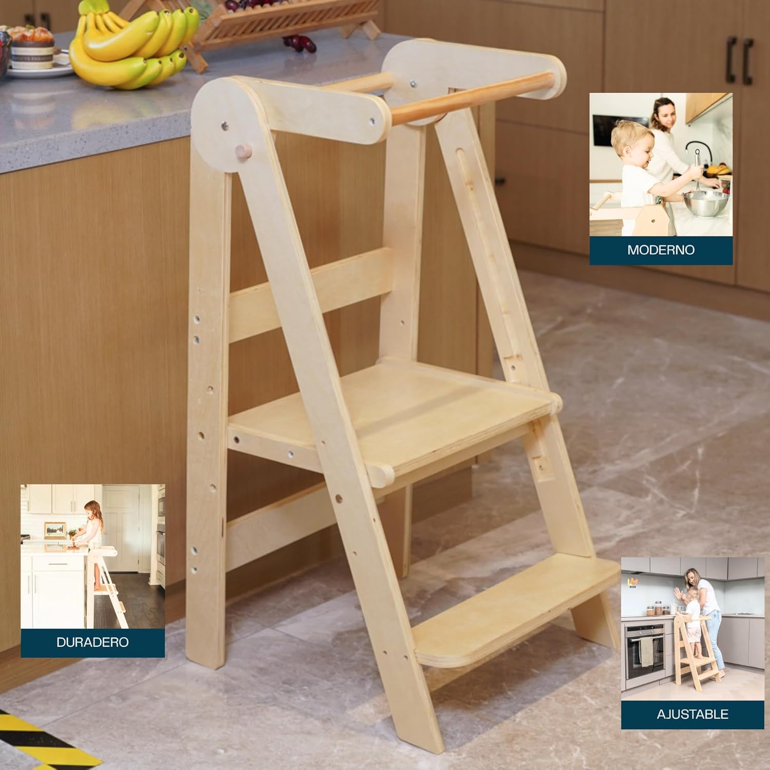 Bluelander Torre de Aprendizaje Montessori Plegable de Madera para Niños (27 kg)