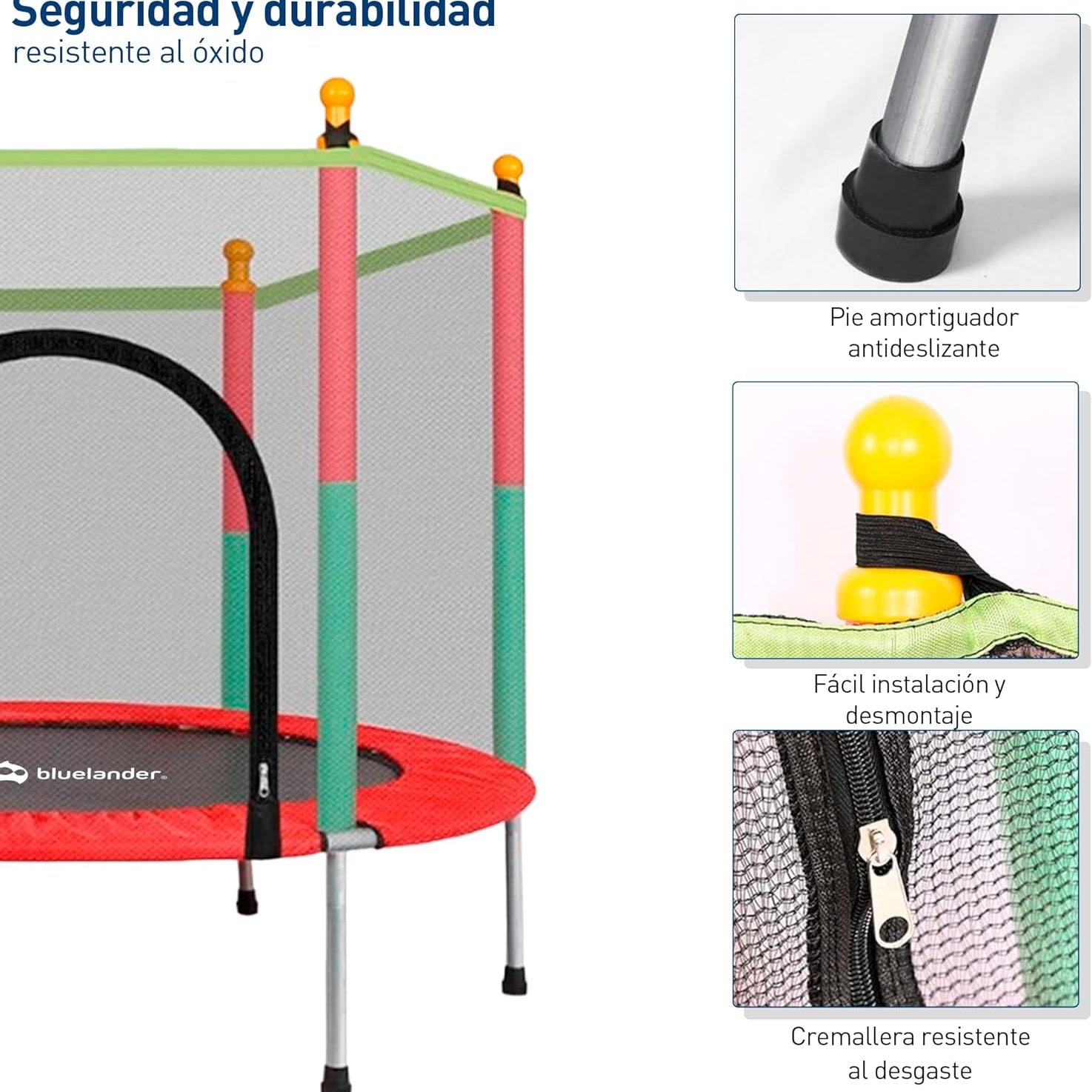 Diversión segura y sin límites con este brincolín diseñado para niños. Su malla de seguridad sin costuras y su resistente marco de acero garantizan estabilidad y protección. Ideal para interiores y exteriores, fomenta el ejercicio y el desarrollo motor. Fácil de montar en menos de 30 minutos.