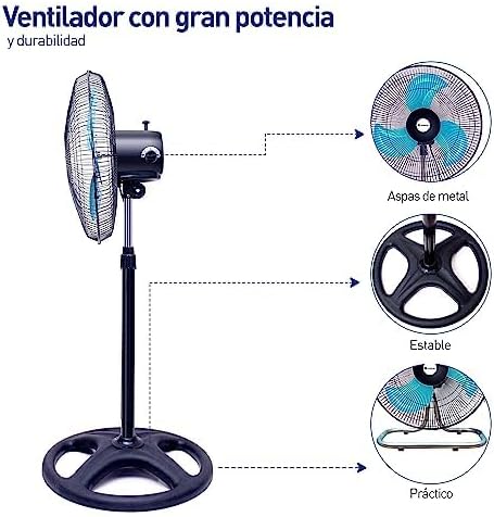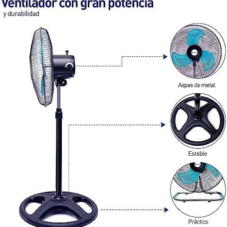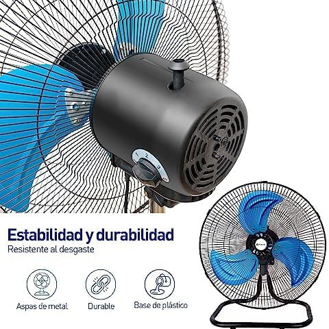 🔁 3 en 1 multifuncional: Úsalo como ventilador de piso, pedestal o pared.