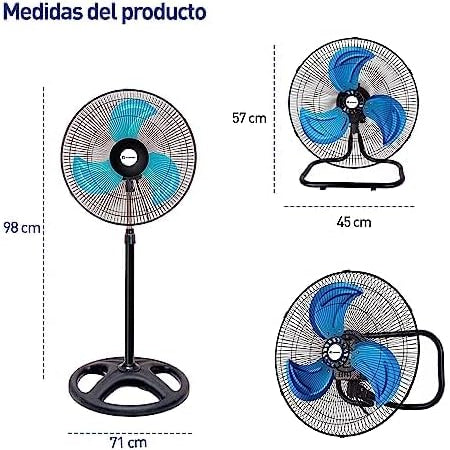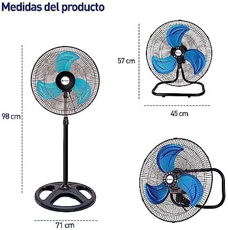 Bluelander Ventilador 3 en 1 Piso, Pared y Pedestal – 18", Metal, 3 Velocidades, 70W