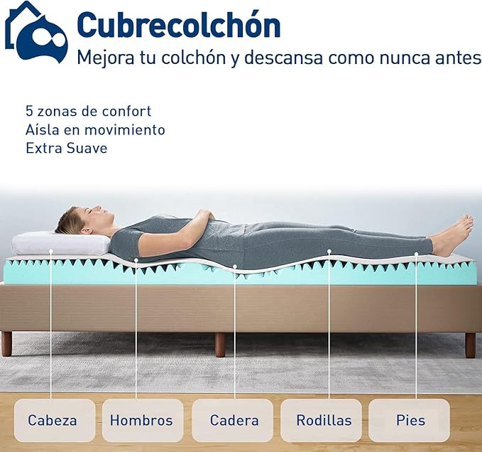 - [ÁREAS DE CONFORT] Brindan un soporte adaptable y equilibrado a todas las partes de tu cuerpo, distribuyendo el peso de manera uniforme para aliviar los puntos de presión y ofrecerte un descanso reparador