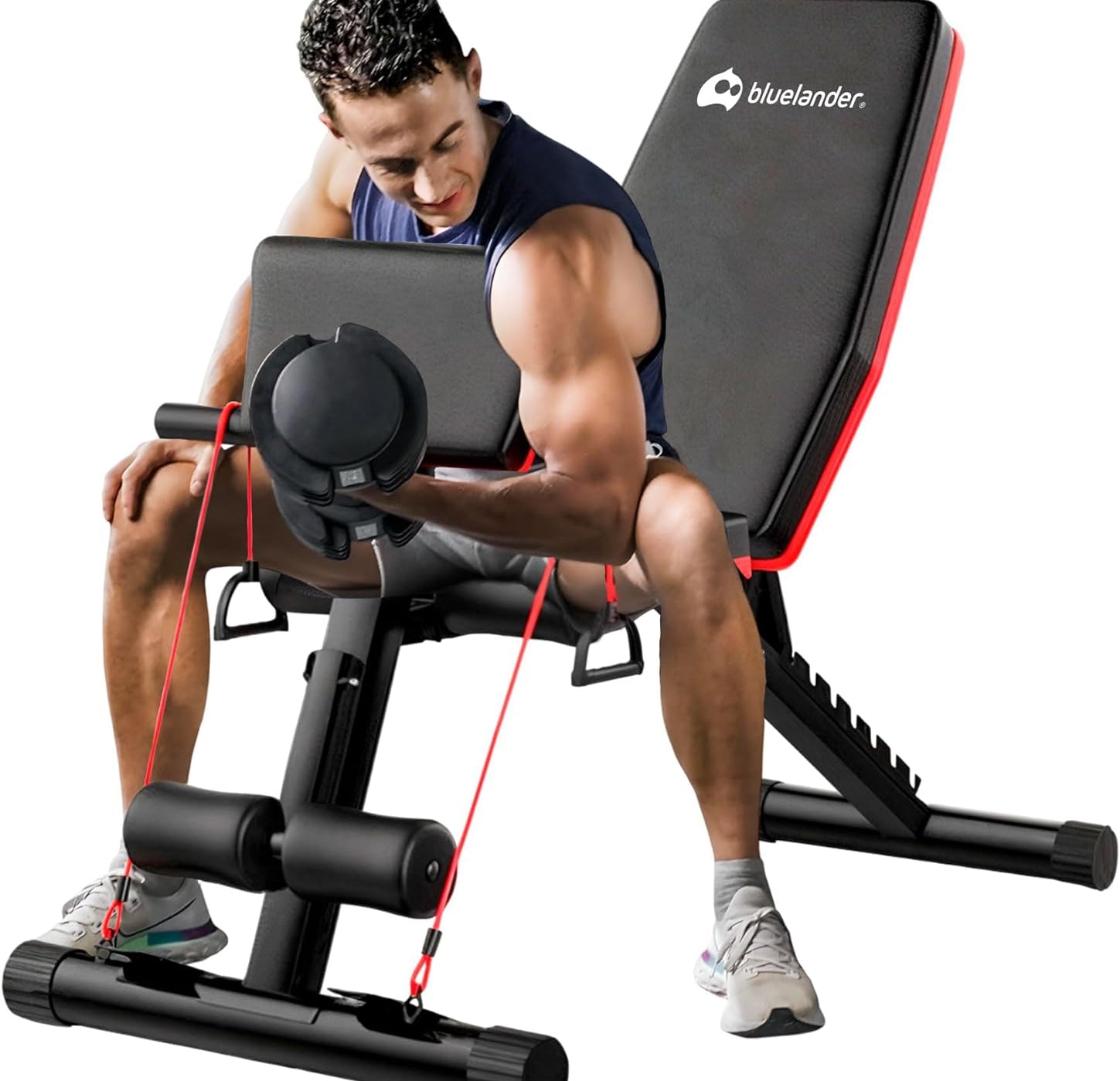 Bluelander Banco de Ejercicio 12 en 1, Soporta 310 kg, con Ligas