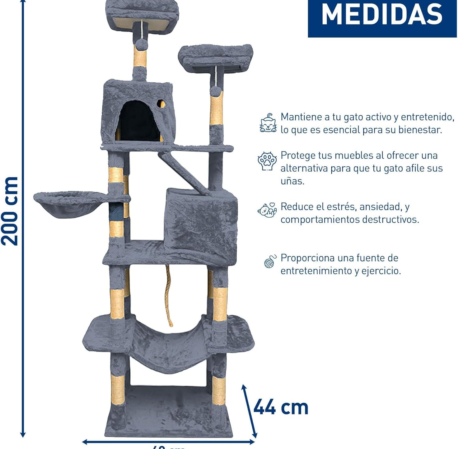 Bluelander Torre para Gatos 2m - Rascador Multinivel con Hamaca Azul