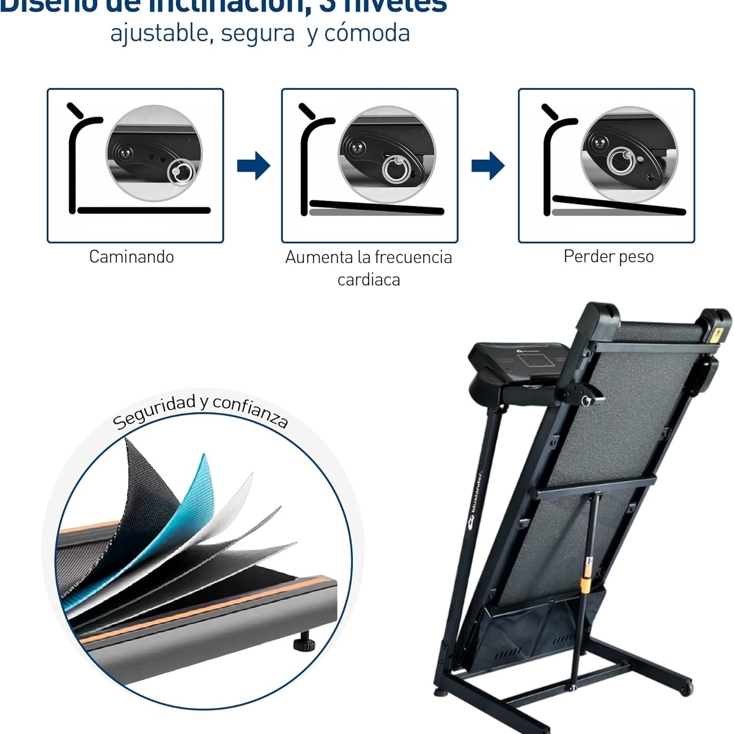 Bluelander Caminadora Eléctrica 2.5 HP, Plegable, con Bocinas