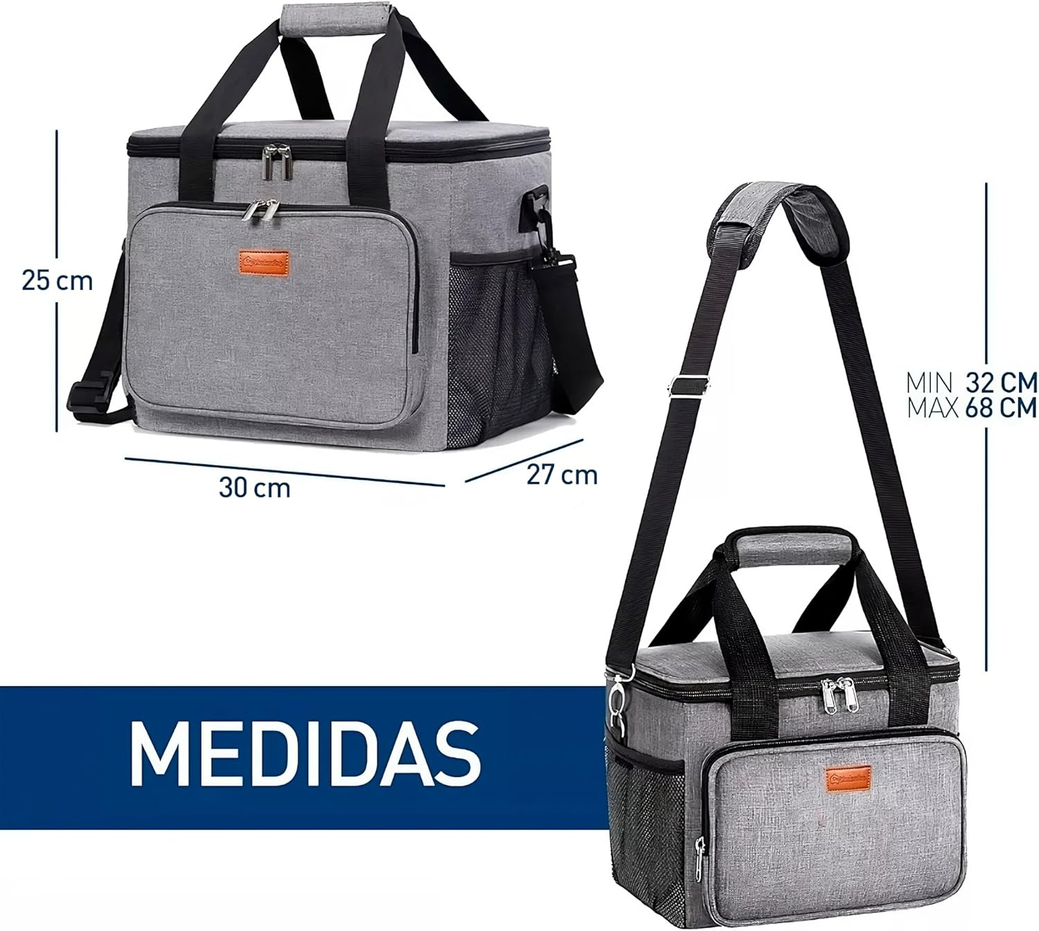 🔹 Bolsillo principal amplio para recipientes grandes