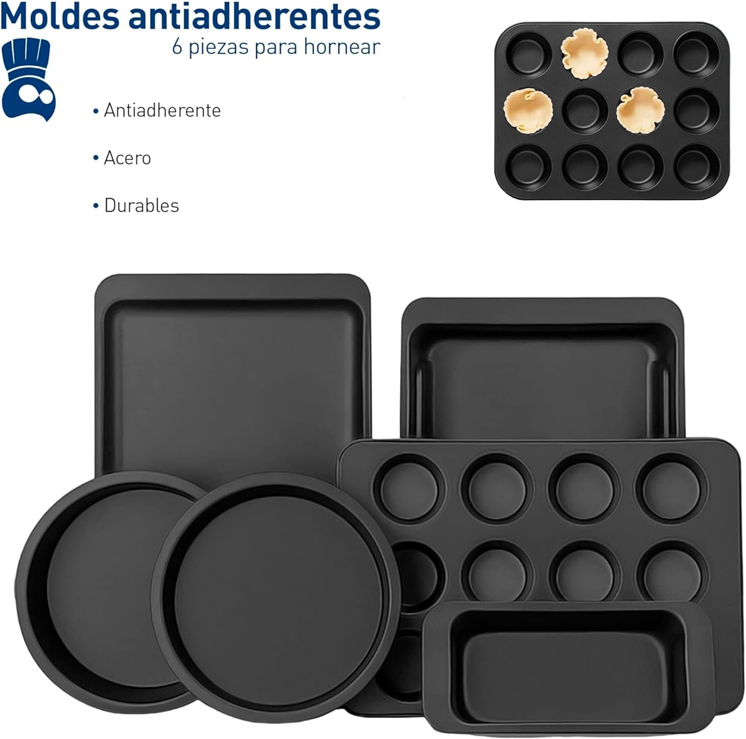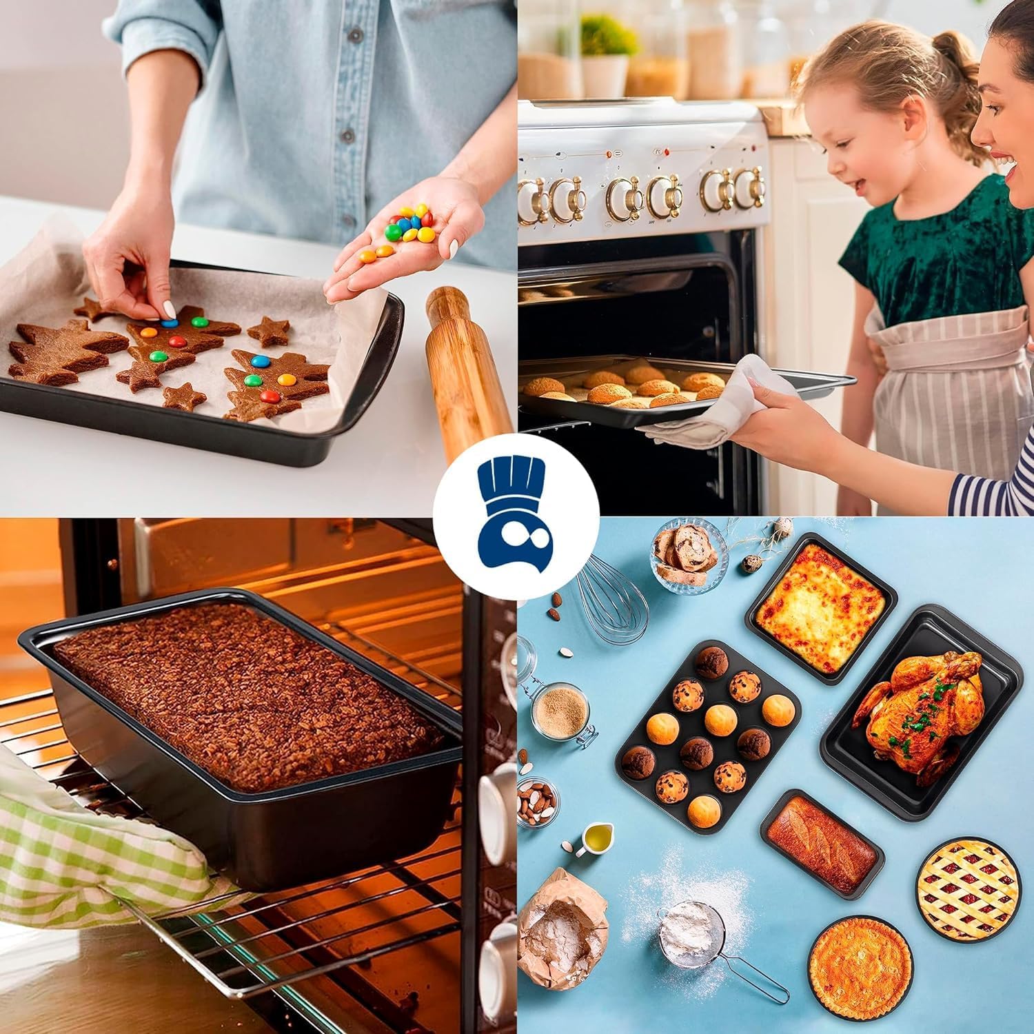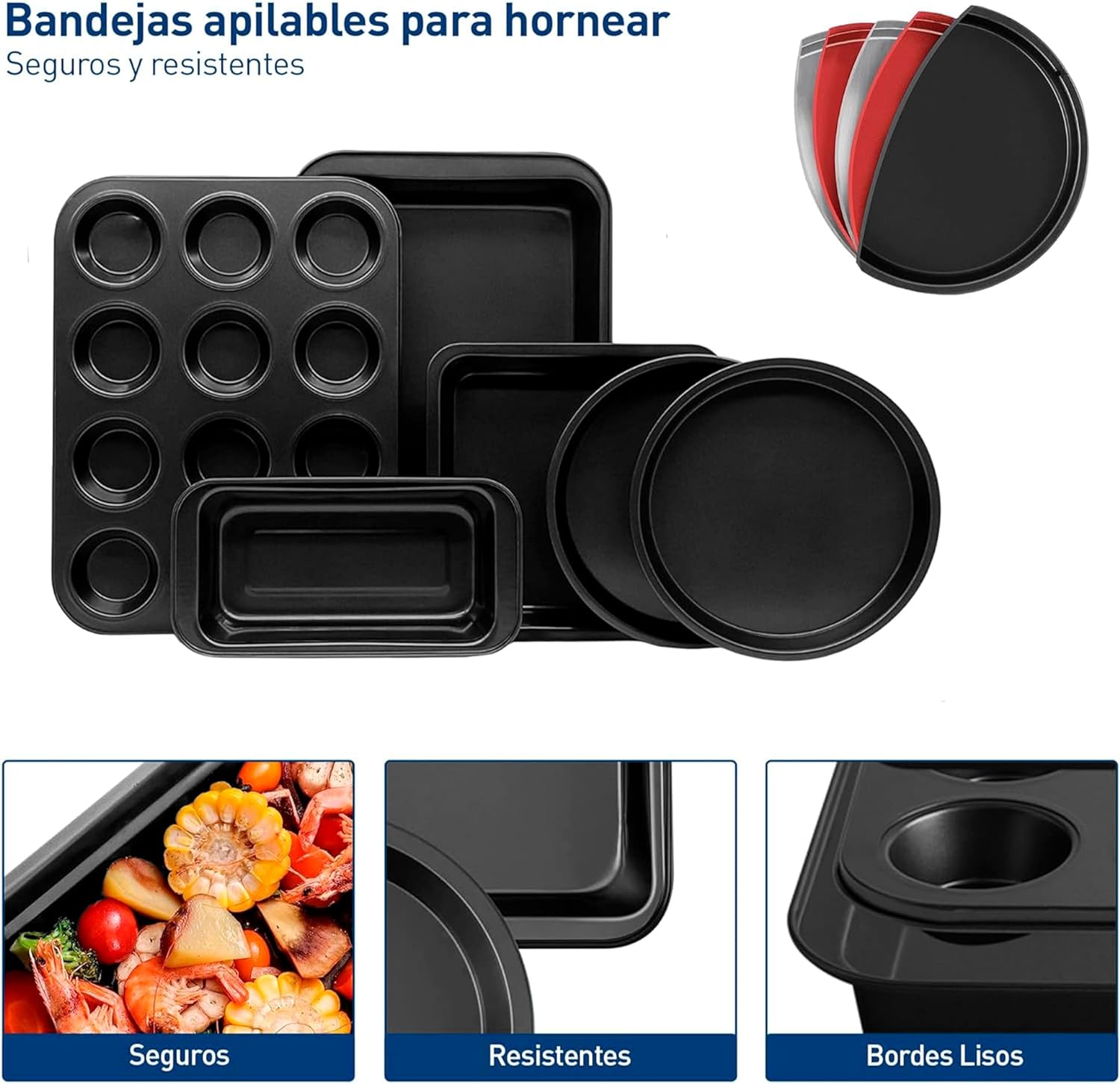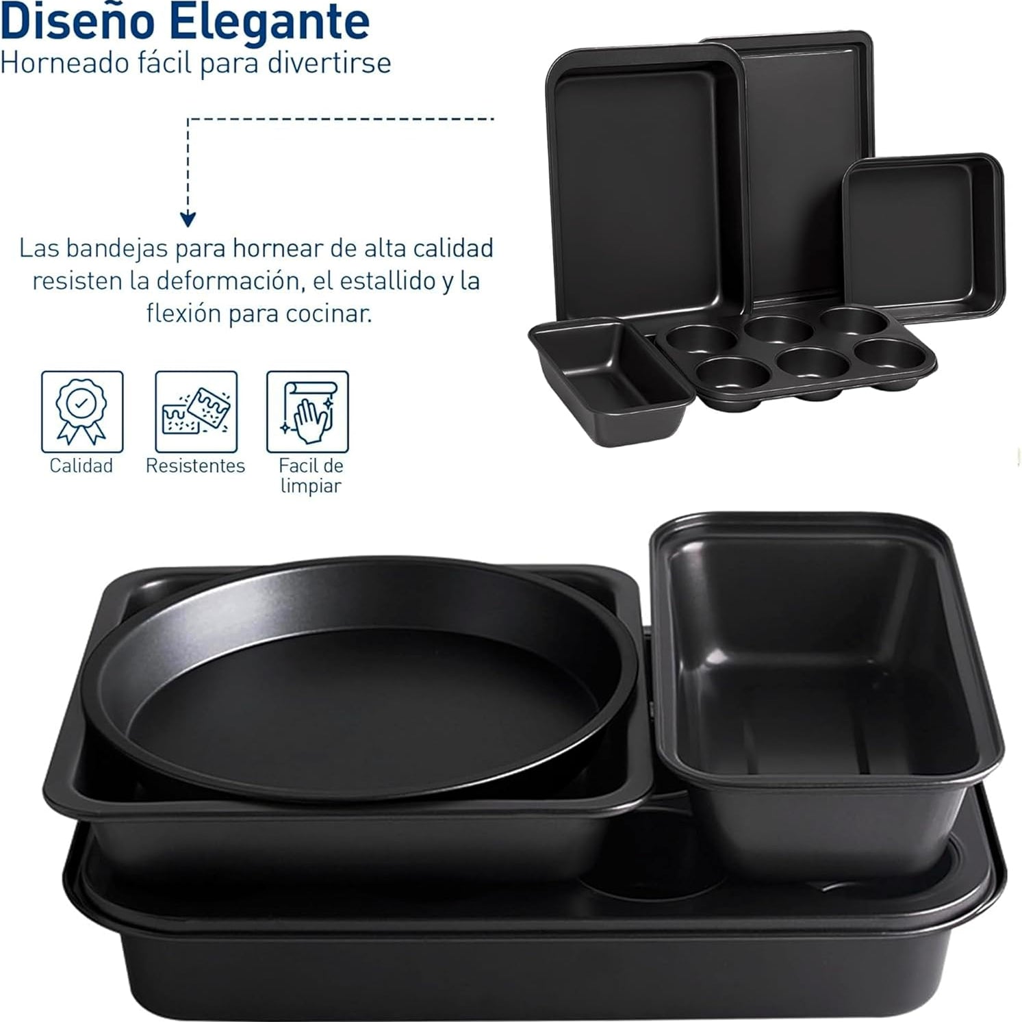 ✅ Set Completo de 6 Piezas: Incluye bandejas para hornear pan, pizza, magdalenas y más.