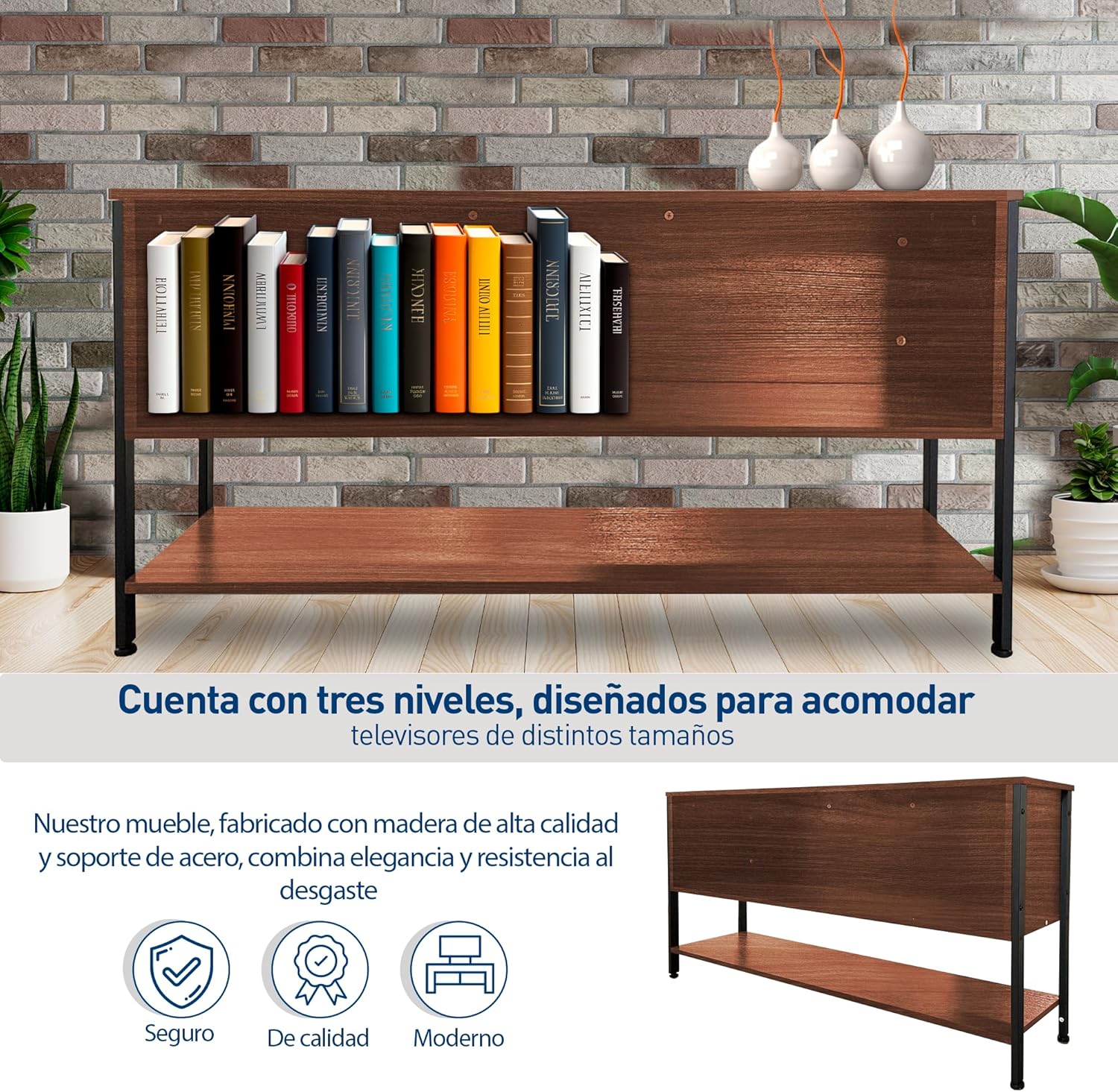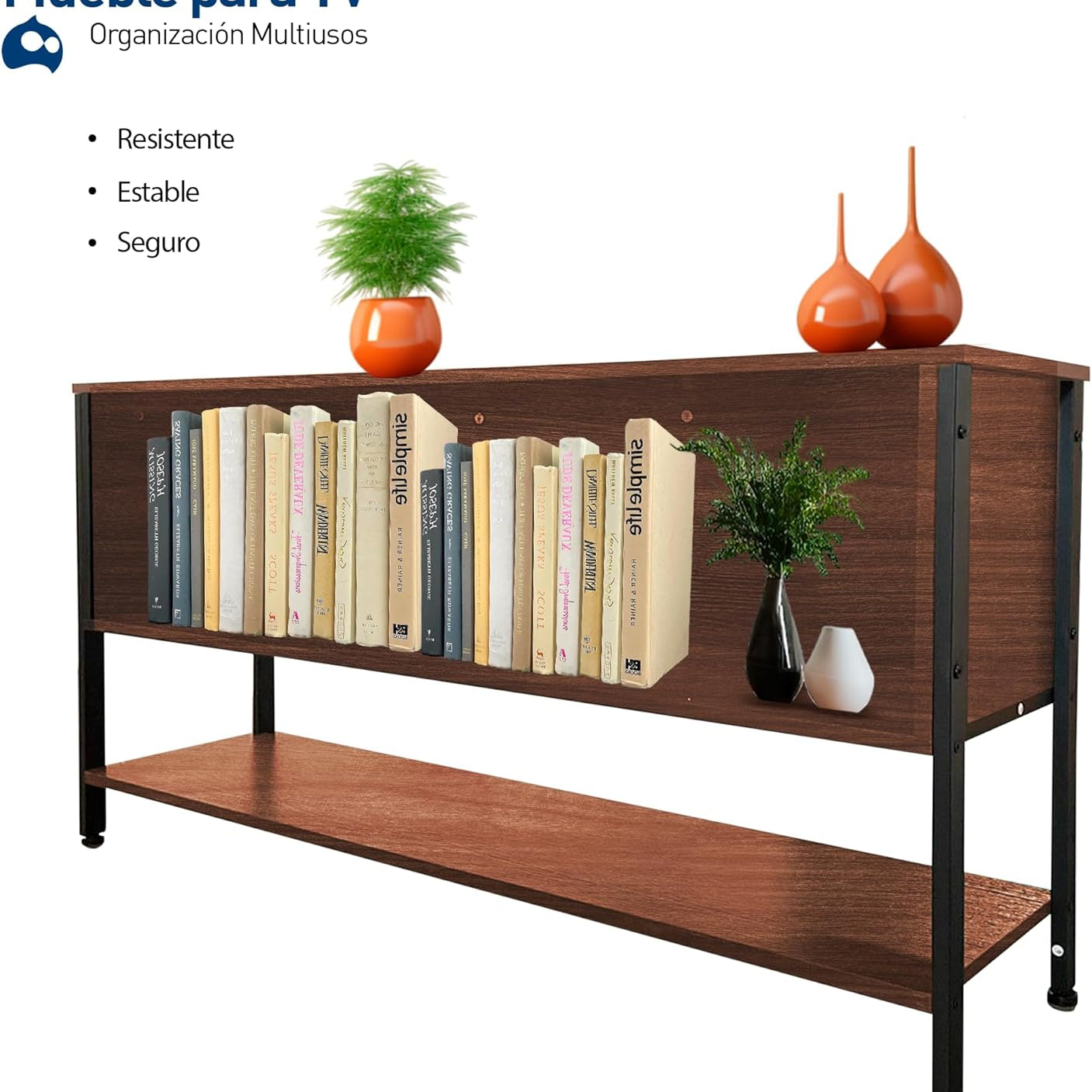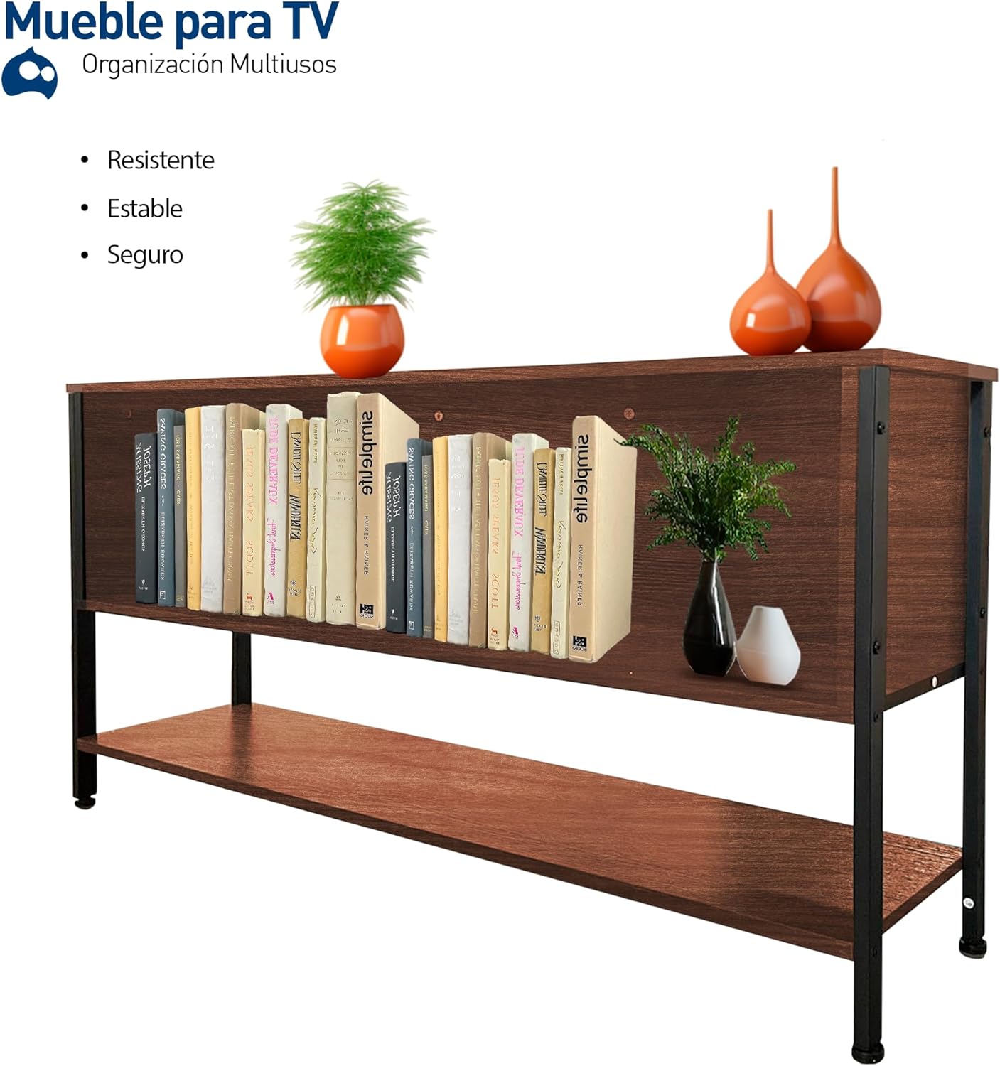 [VERSATILIDAD Y ESTILO] Acabado en color café que se adapta a cualquier decoración, ideal como mueble de entretenimiento o librero moderno.