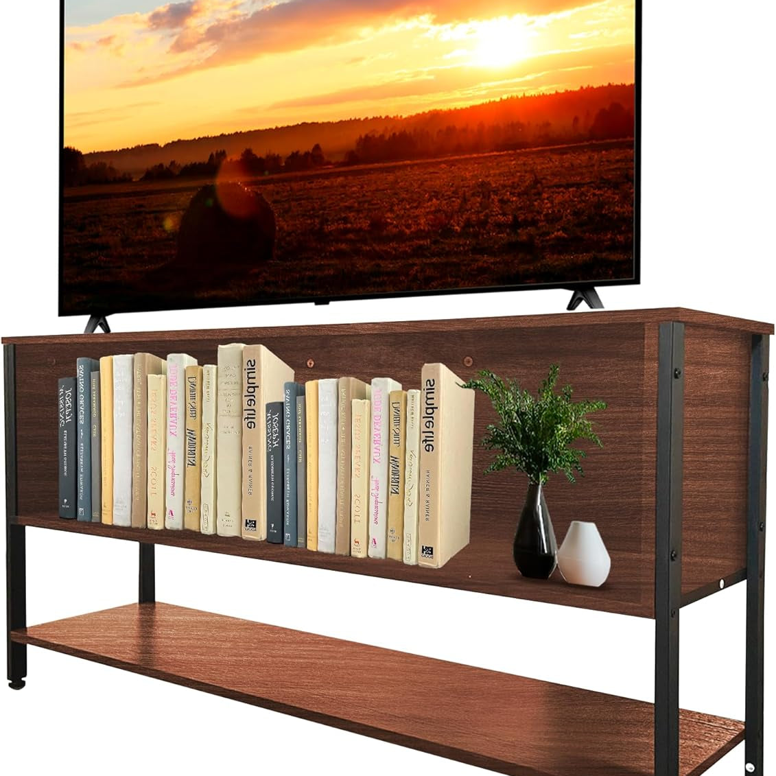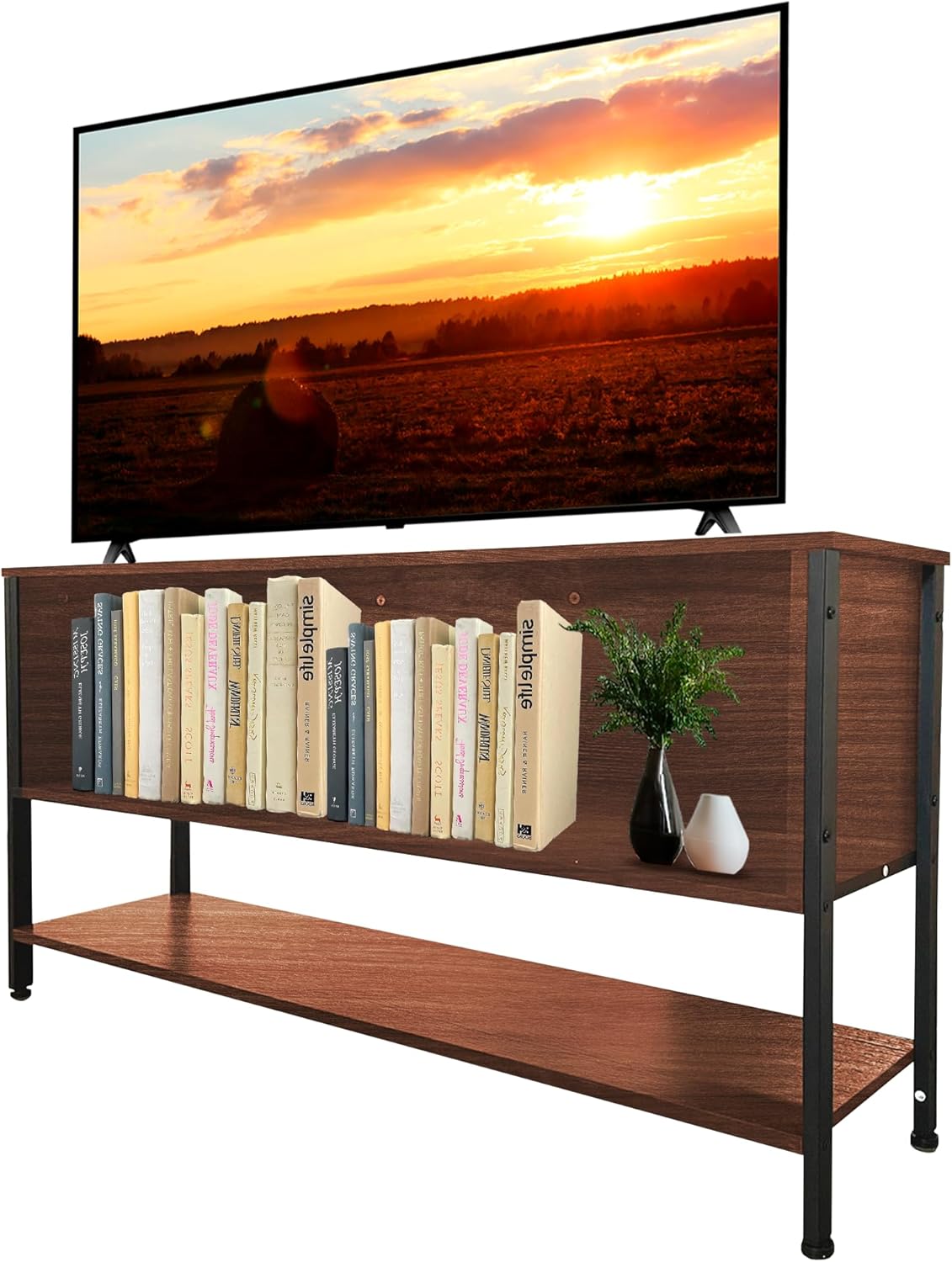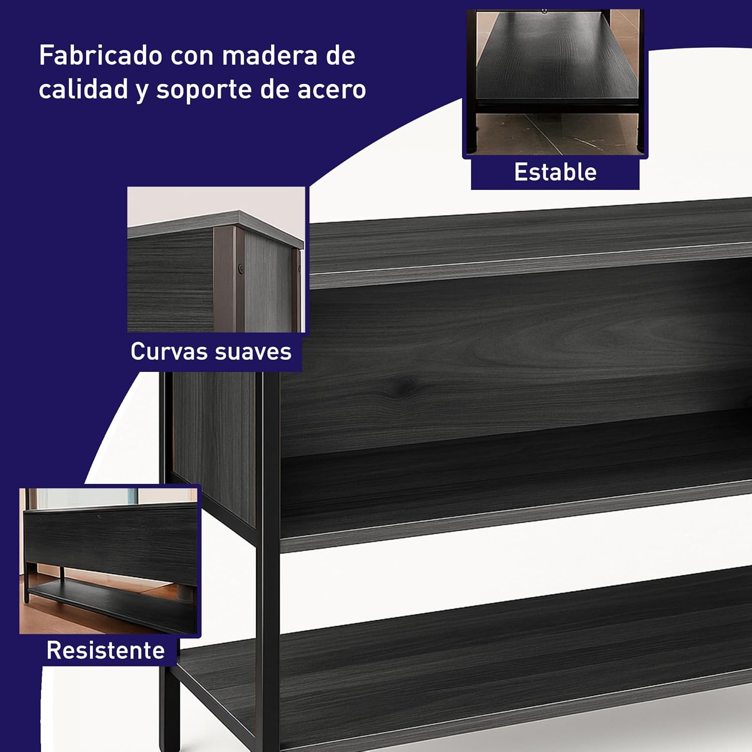 [VERSATILIDAD Y ESTILO] Acabado en color café que se adapta a cualquier decoración, ideal como mueble de entretenimiento o librero moderno.
