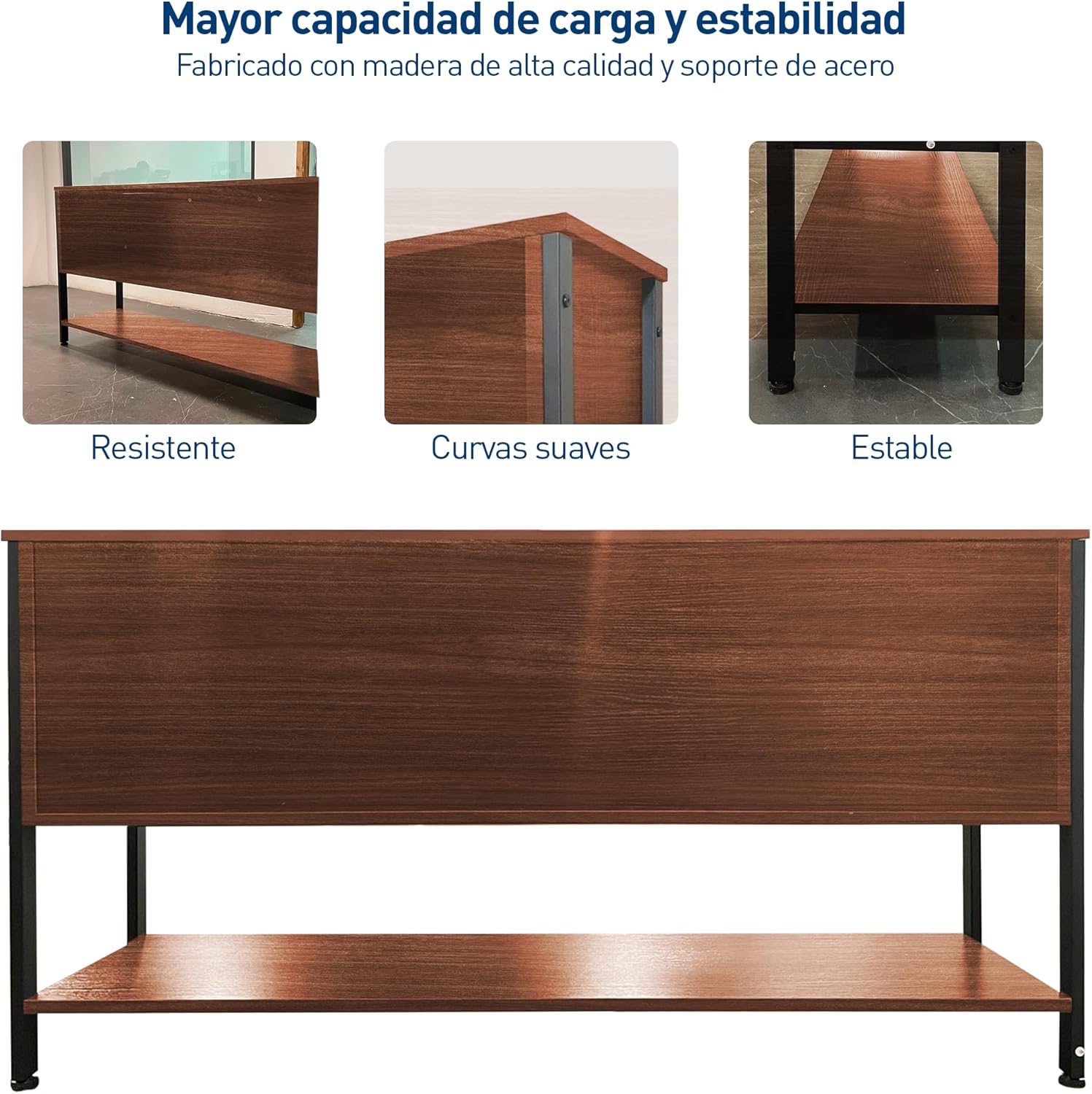 [ESTRUCTURA REFORZADA] Laterales metálicos que brindan estabilidad y mayor capacidad de carga, soportando hasta 60 kg de manera segura.