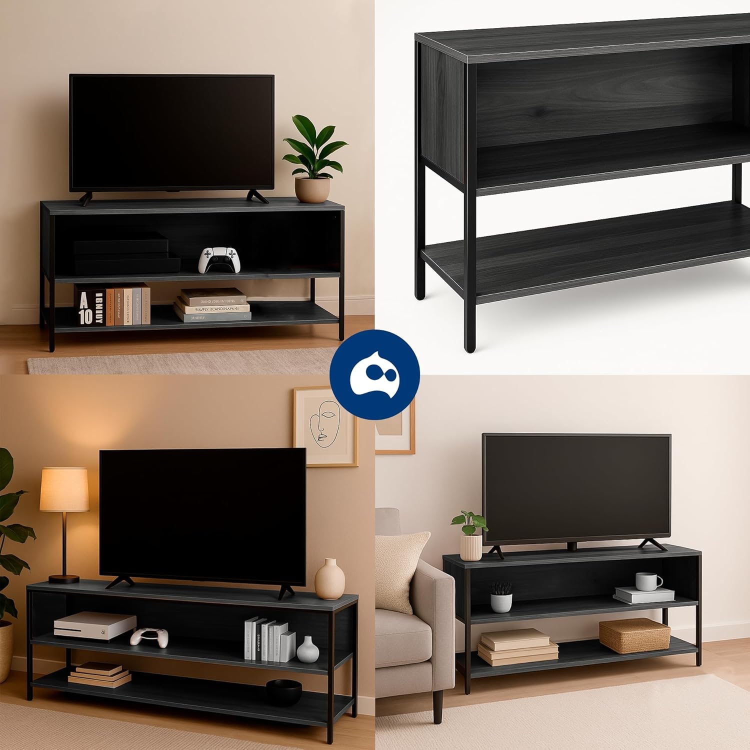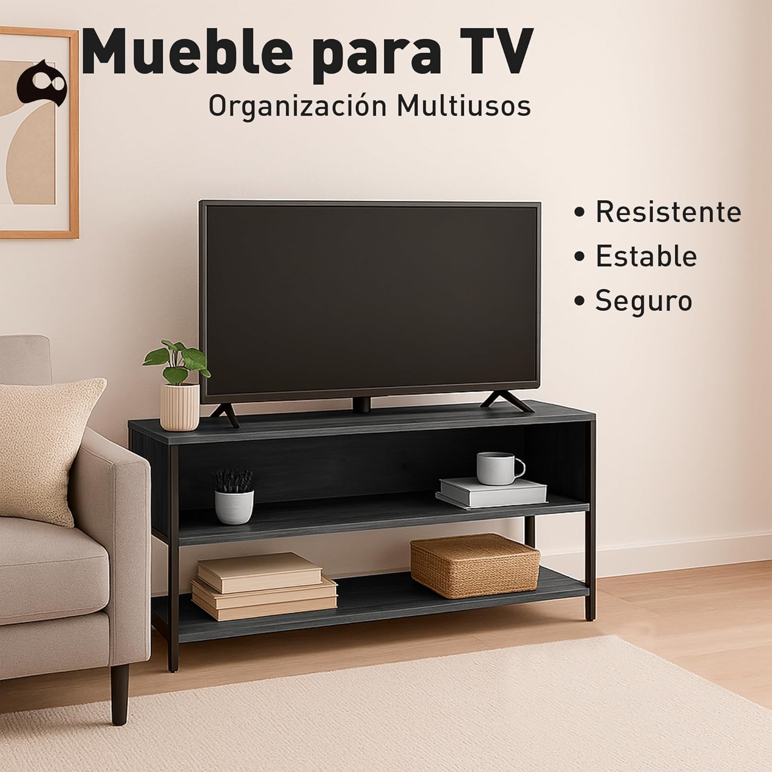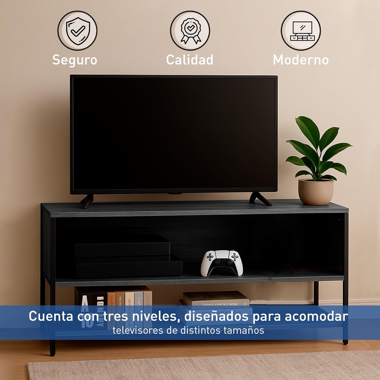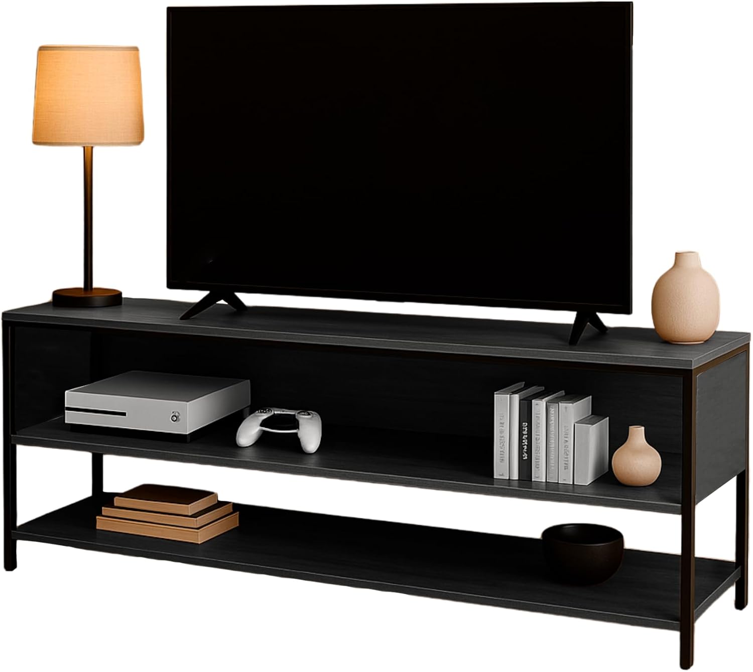 [DISEÑO FUNCIONAL Y ORGANIZADO] Mueble para TV de 50" con tres niveles que ofrecen espacio para dispositivos, consolas, libros o decoración, ideal para sala o recámara.