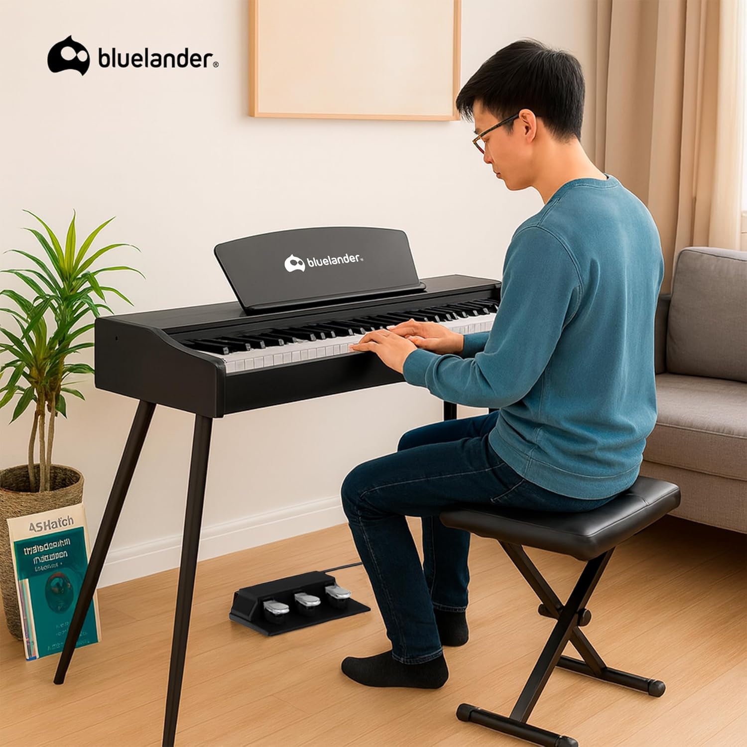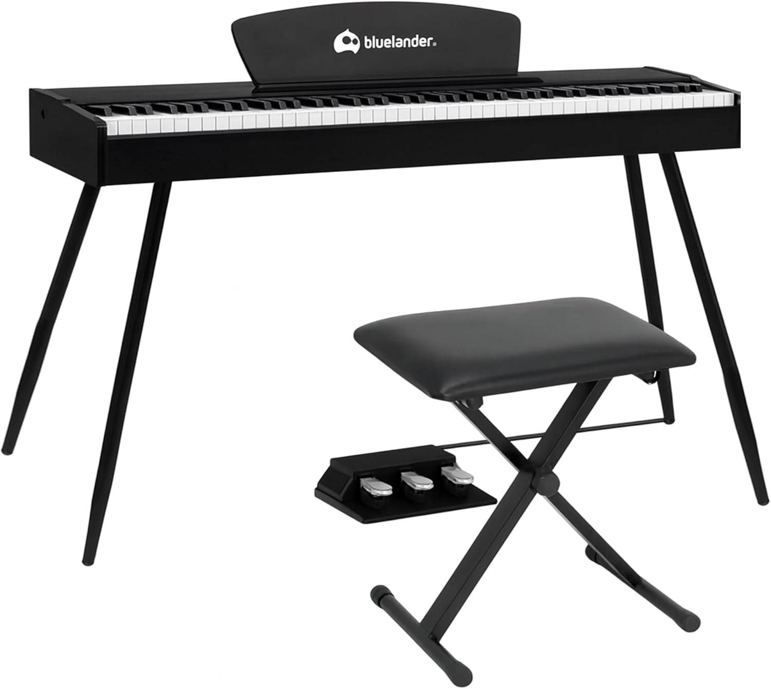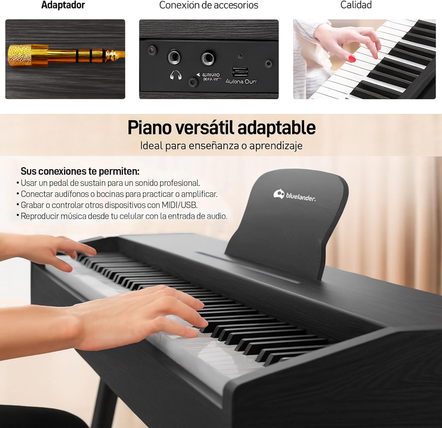 Piano Digital Bluelander 88 Teclas con 3 Pedales, Atril y Banco Ajustable