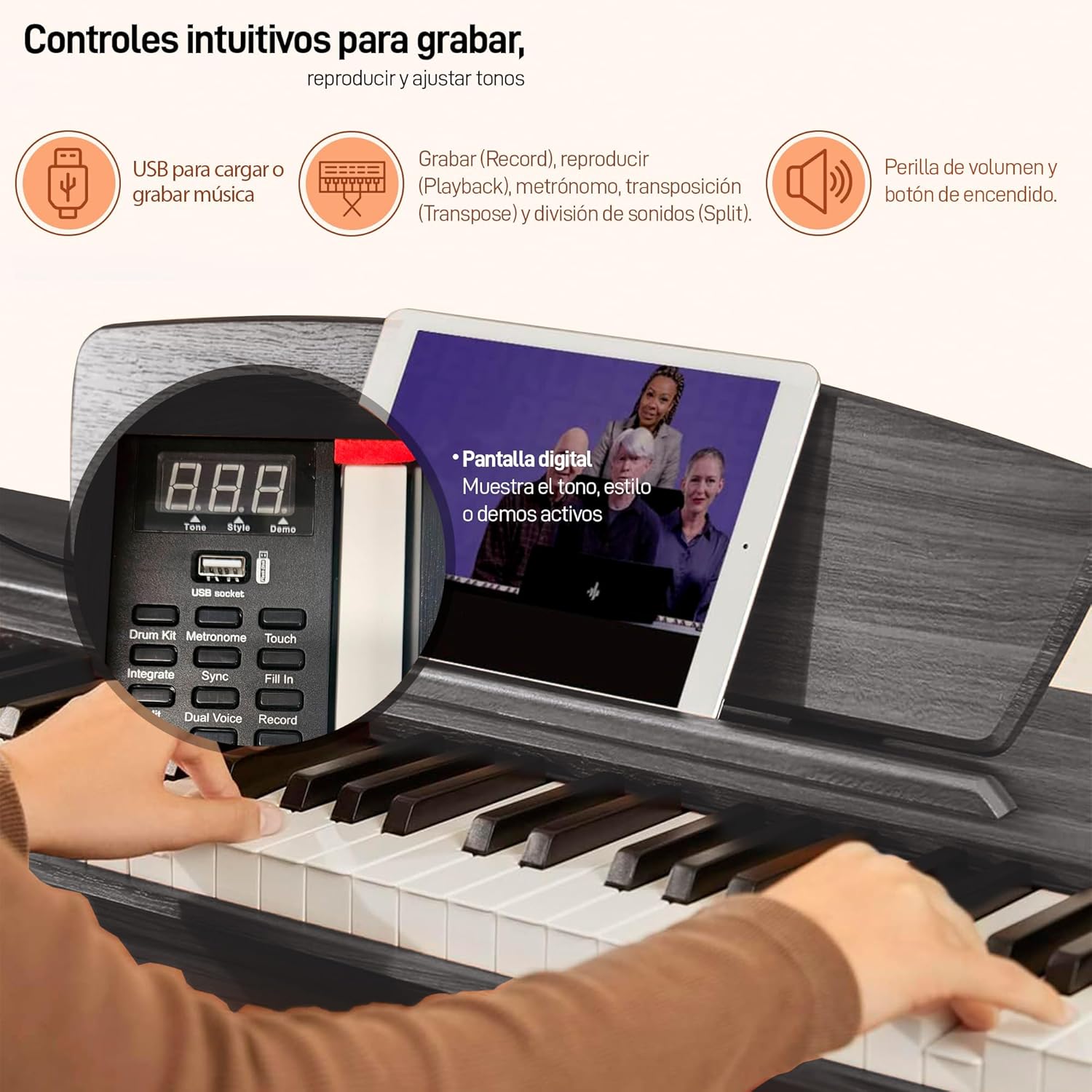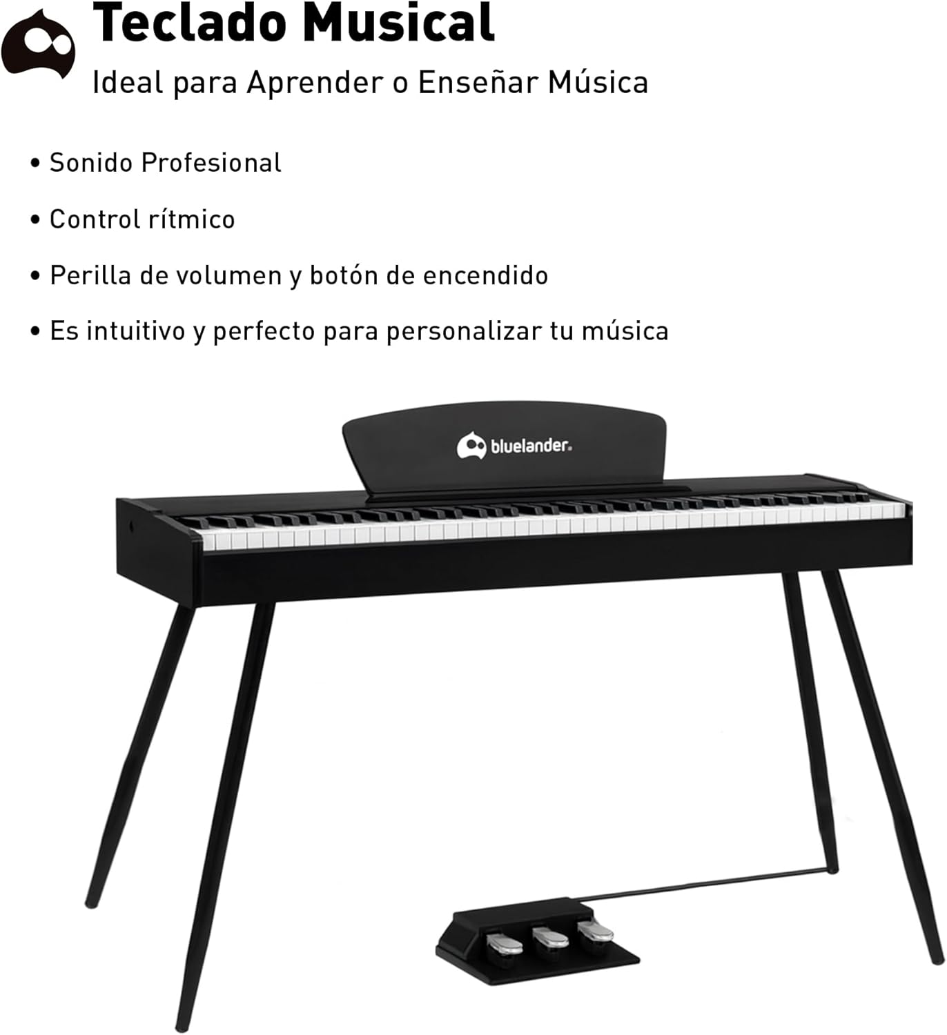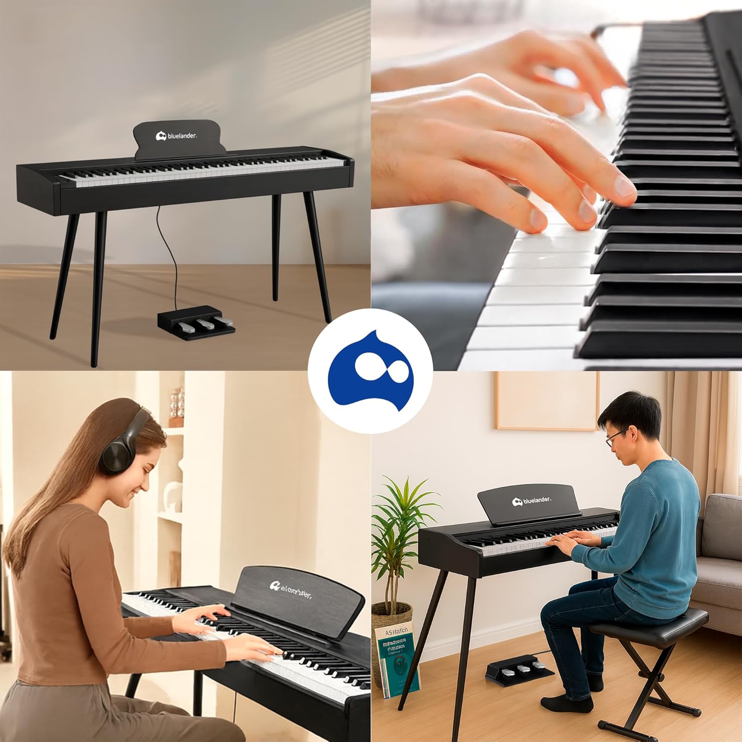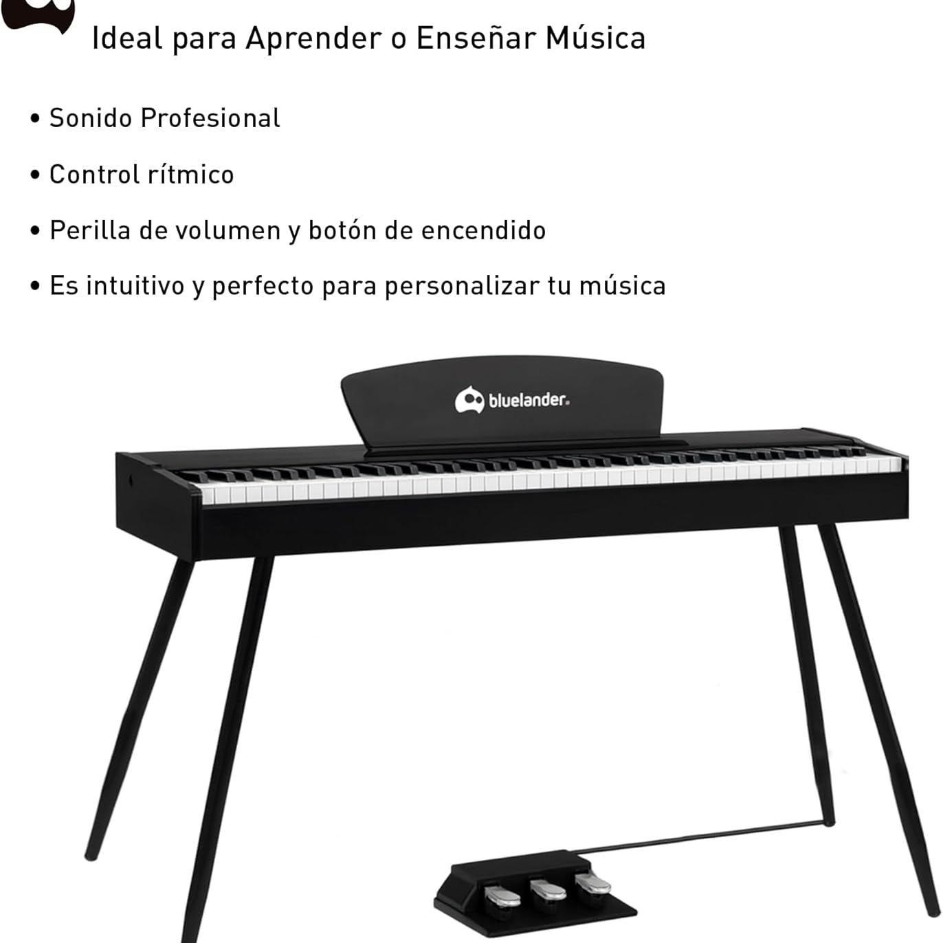Piano Digital Bluelander 88 Teclas con 3 Pedales, Atril y Banco Ajustable