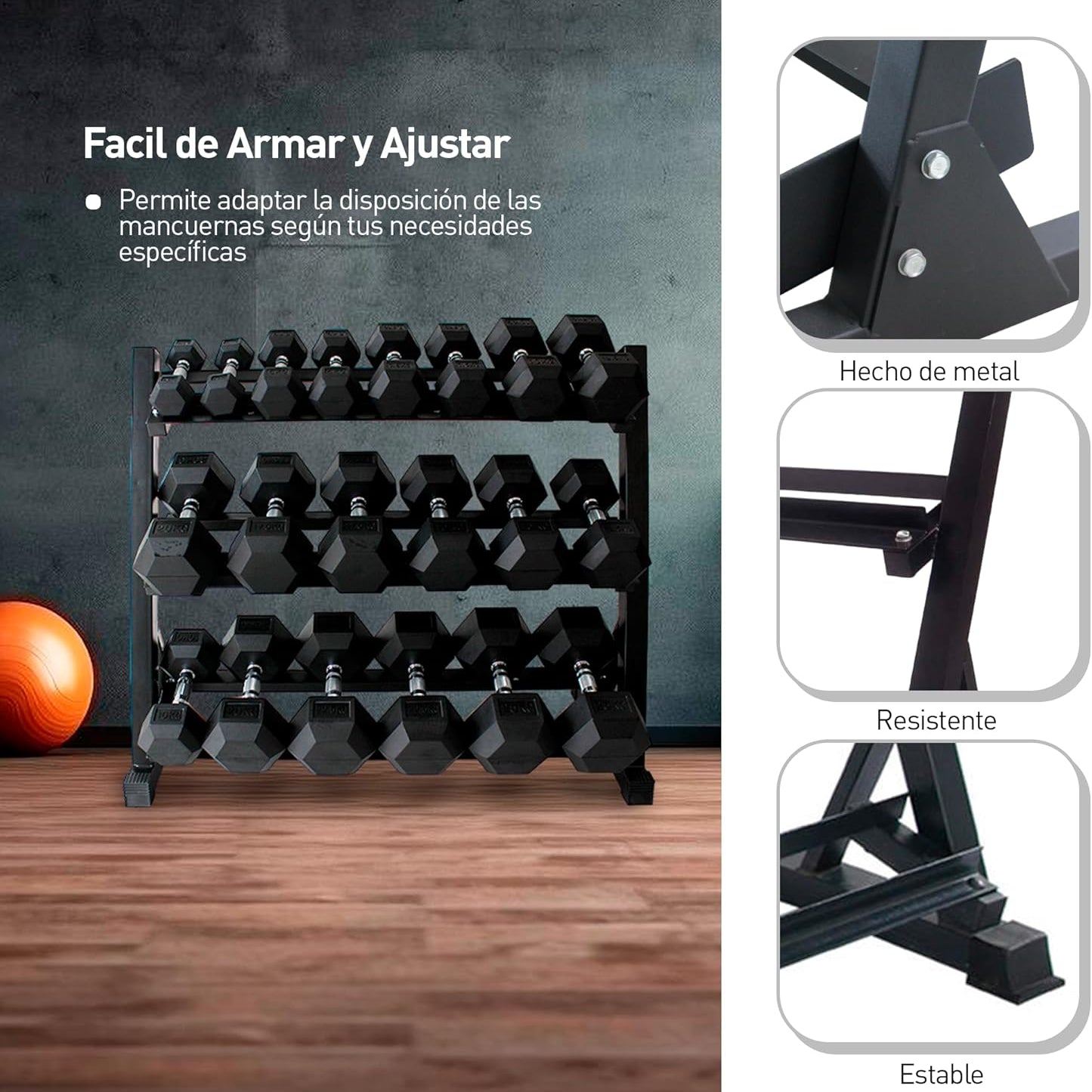 -Fabricado en acero resistente con base antiderrapante para mayor estabilidad.