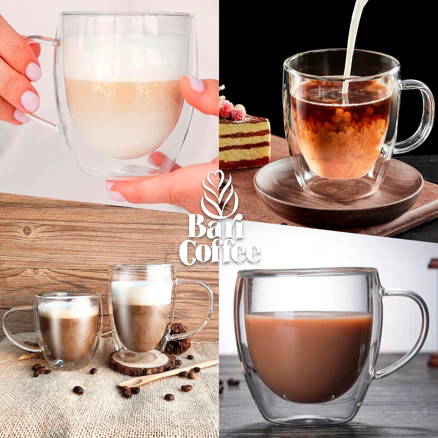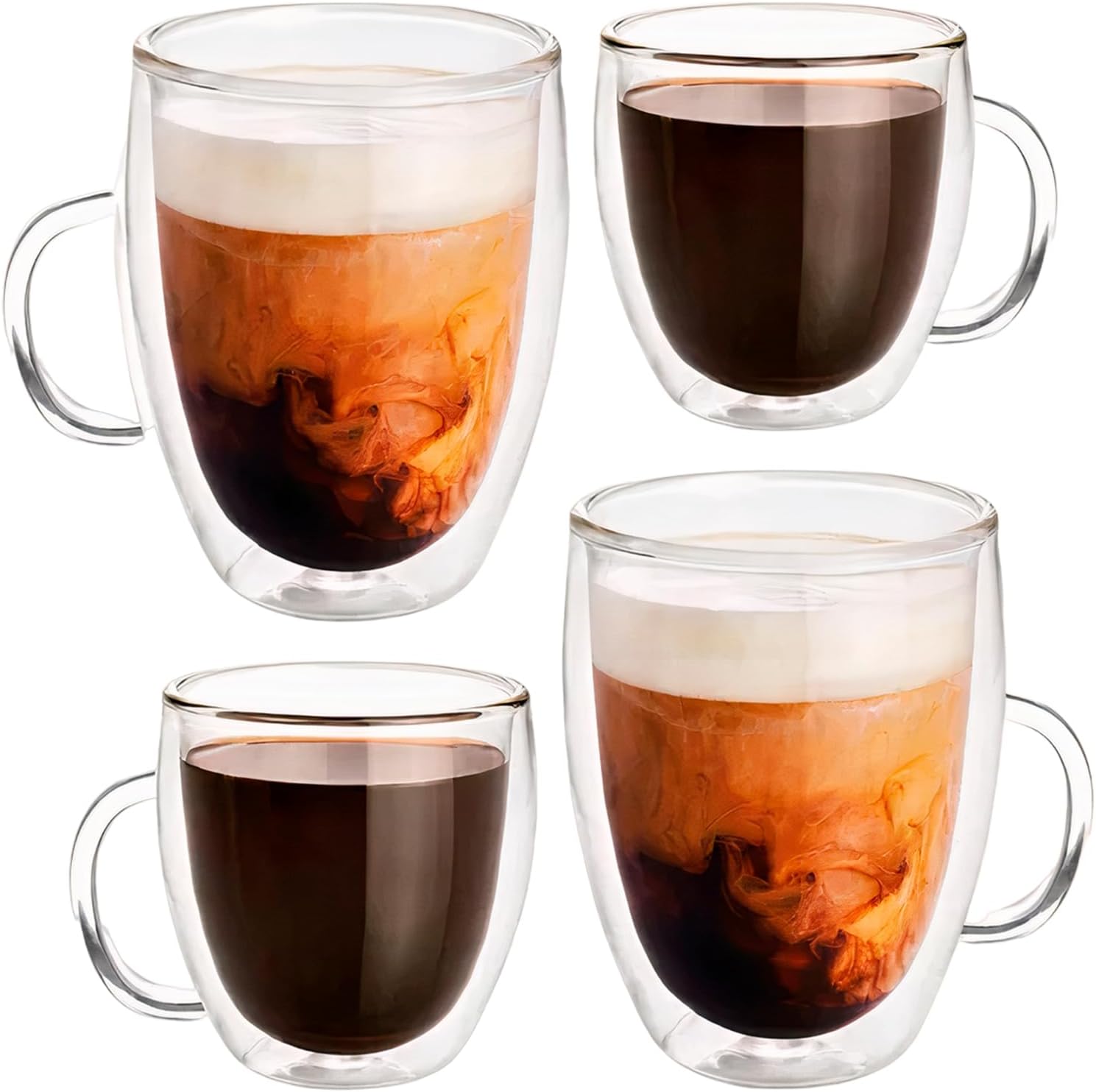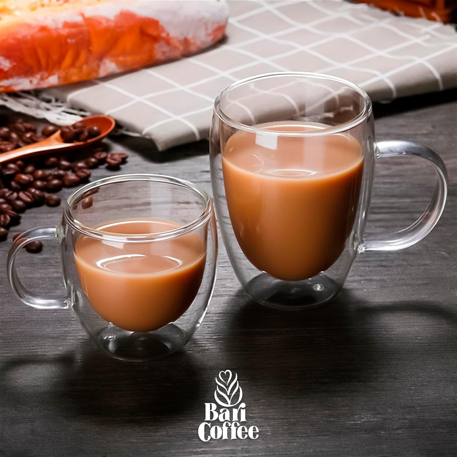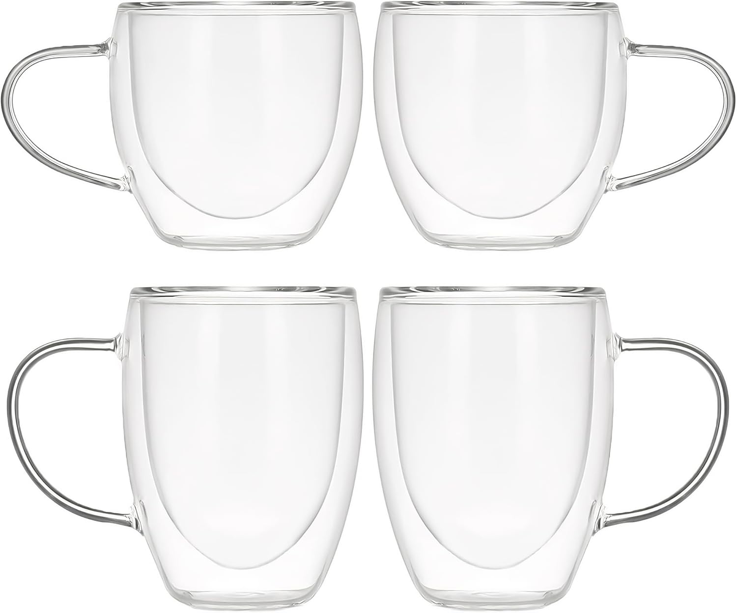 Bluelander Set de 4 Tazas de Vidrio Doble – Modernas y Elegantes para Café, Té o Capuchino (2 de 250 ml y 2 de 350 ml)