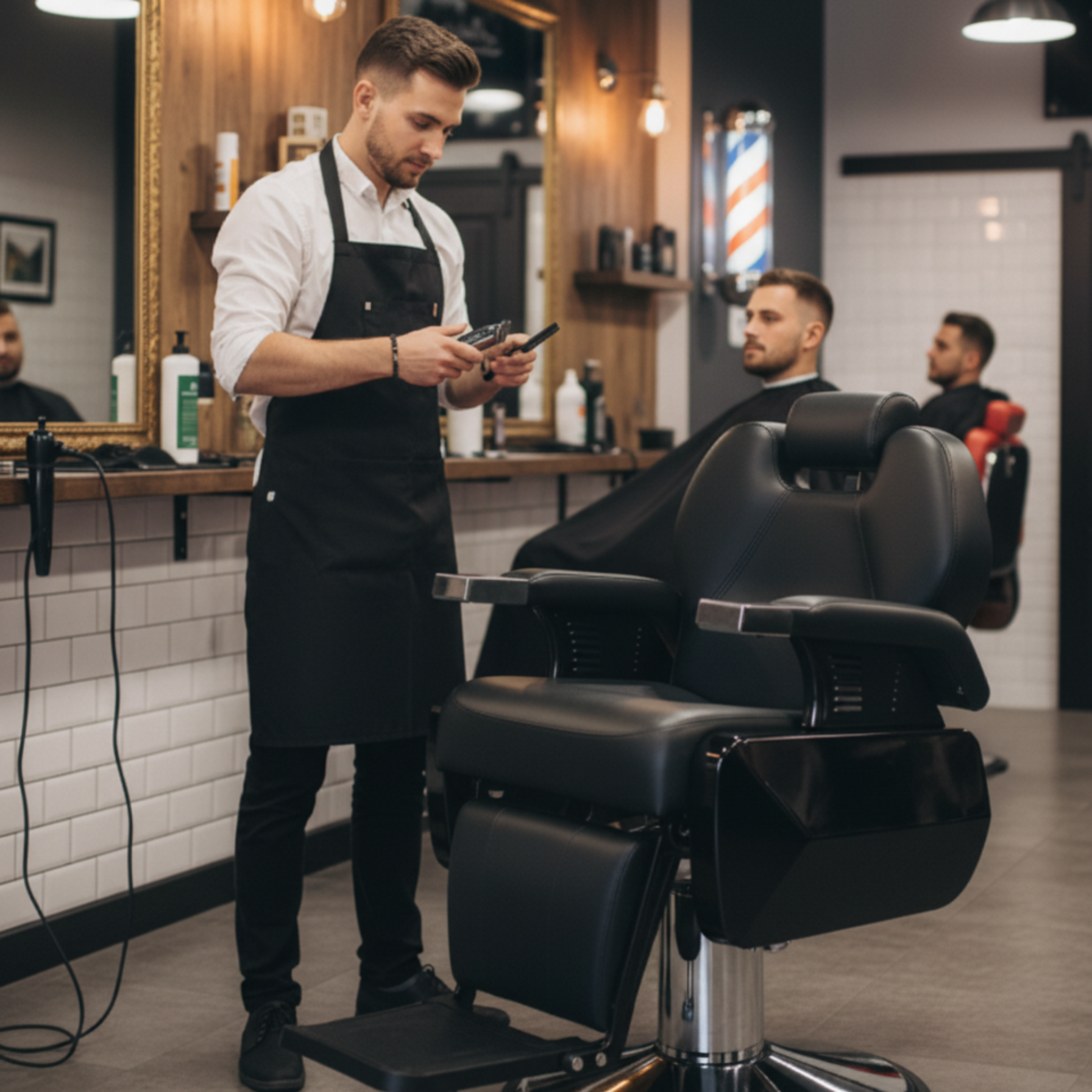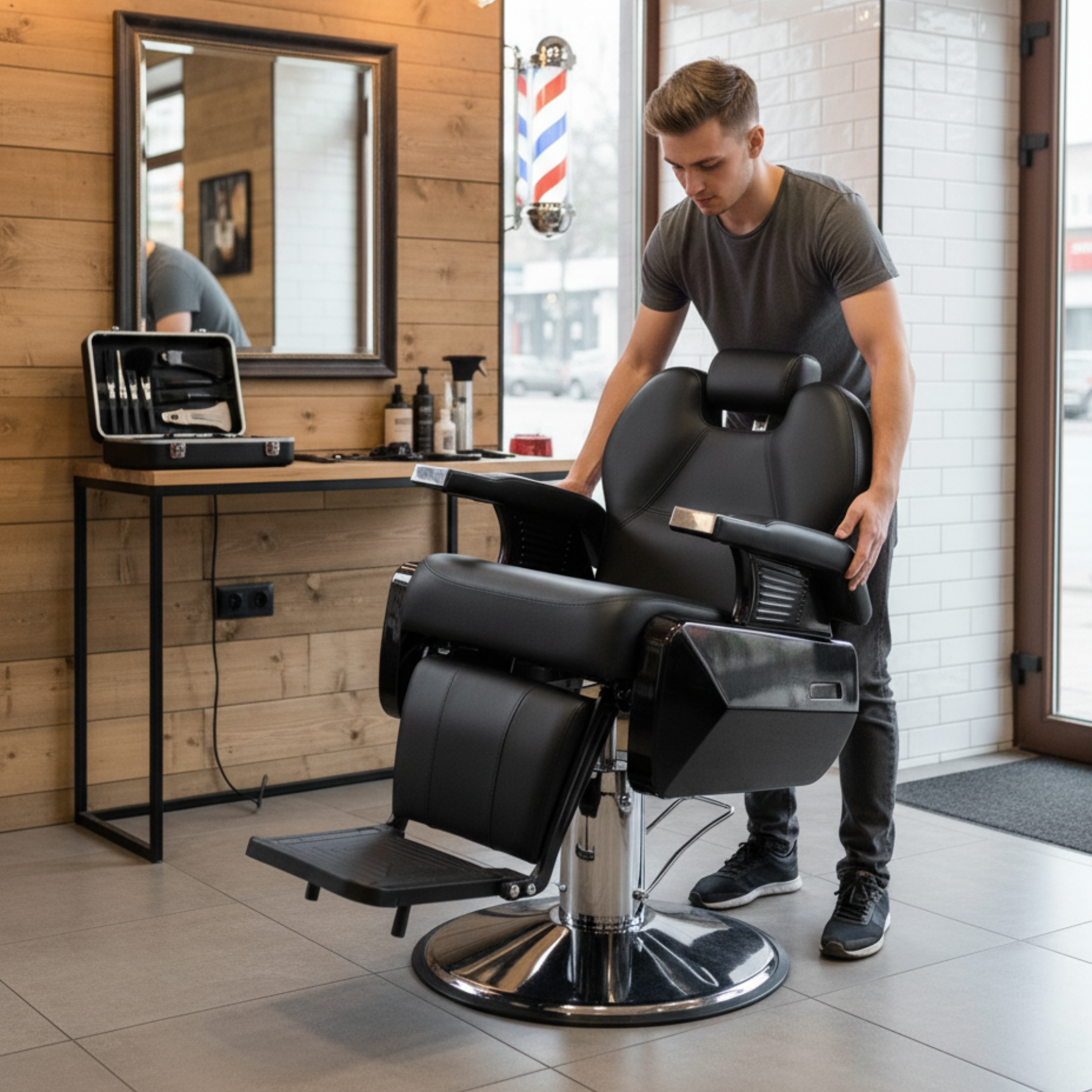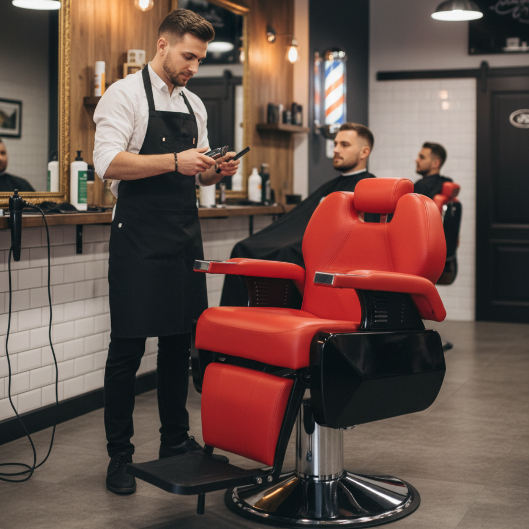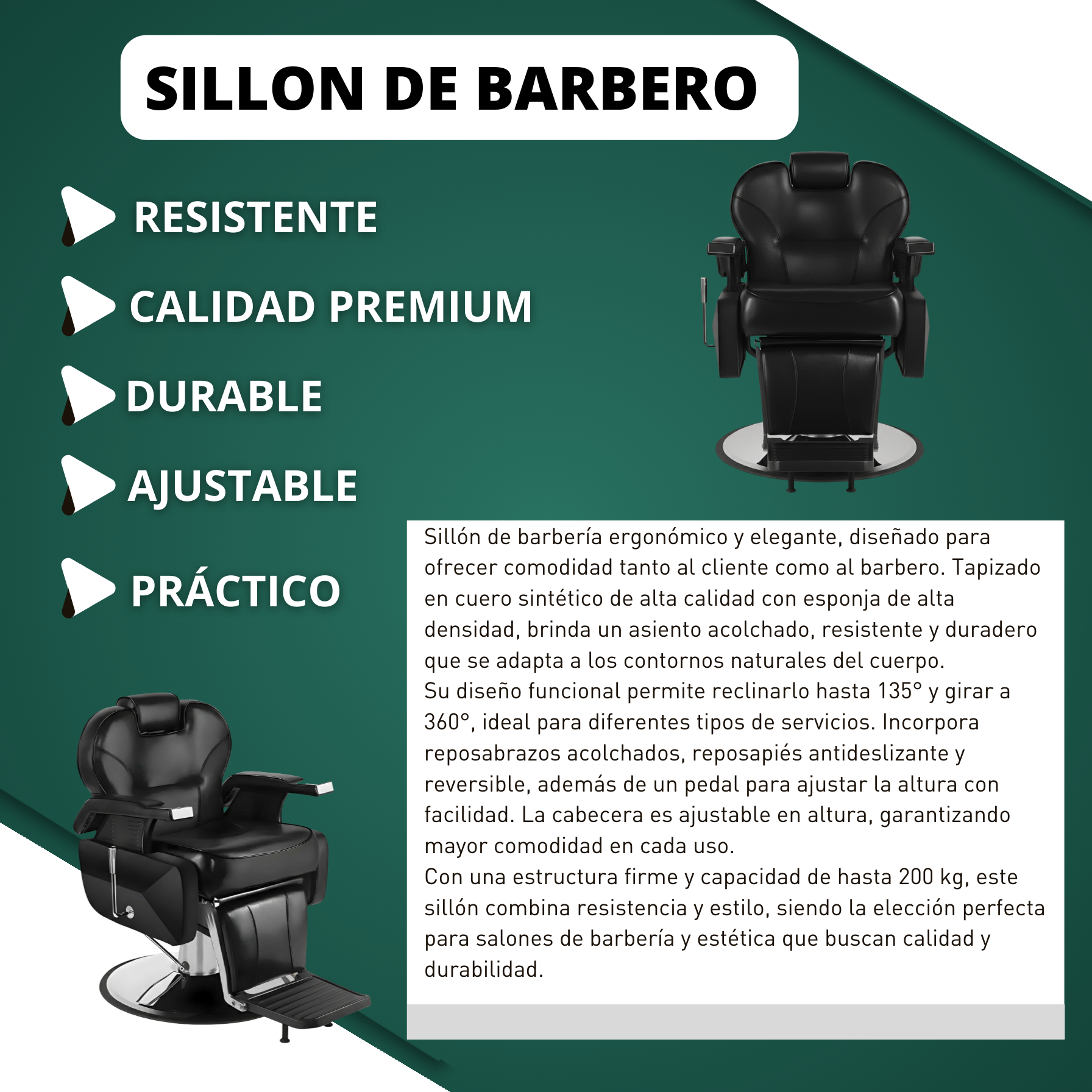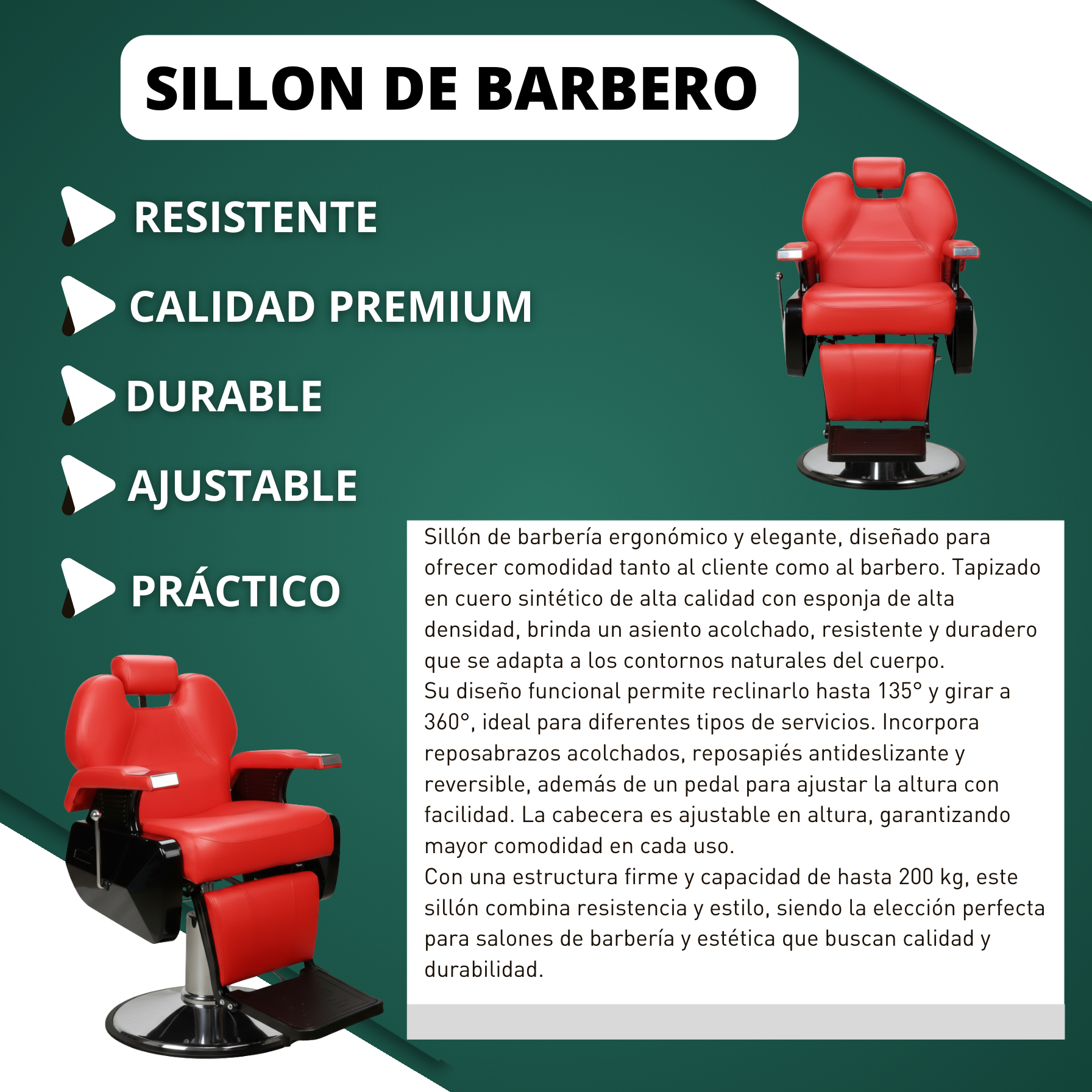 Ofrece comodidad y resistencia con este sillón de barbería diseñado para un uso intensivo. Su estructura reforzada, tapizado duradero y ajuste de altura garantizan funcionalidad y estilo en cualquier salón.