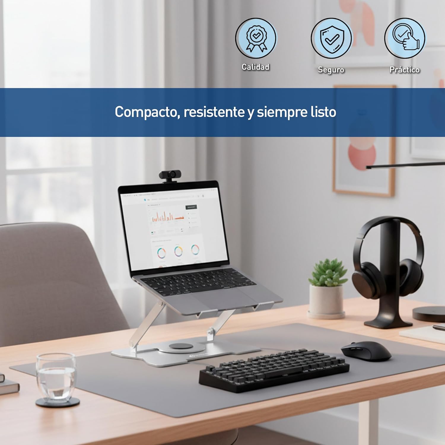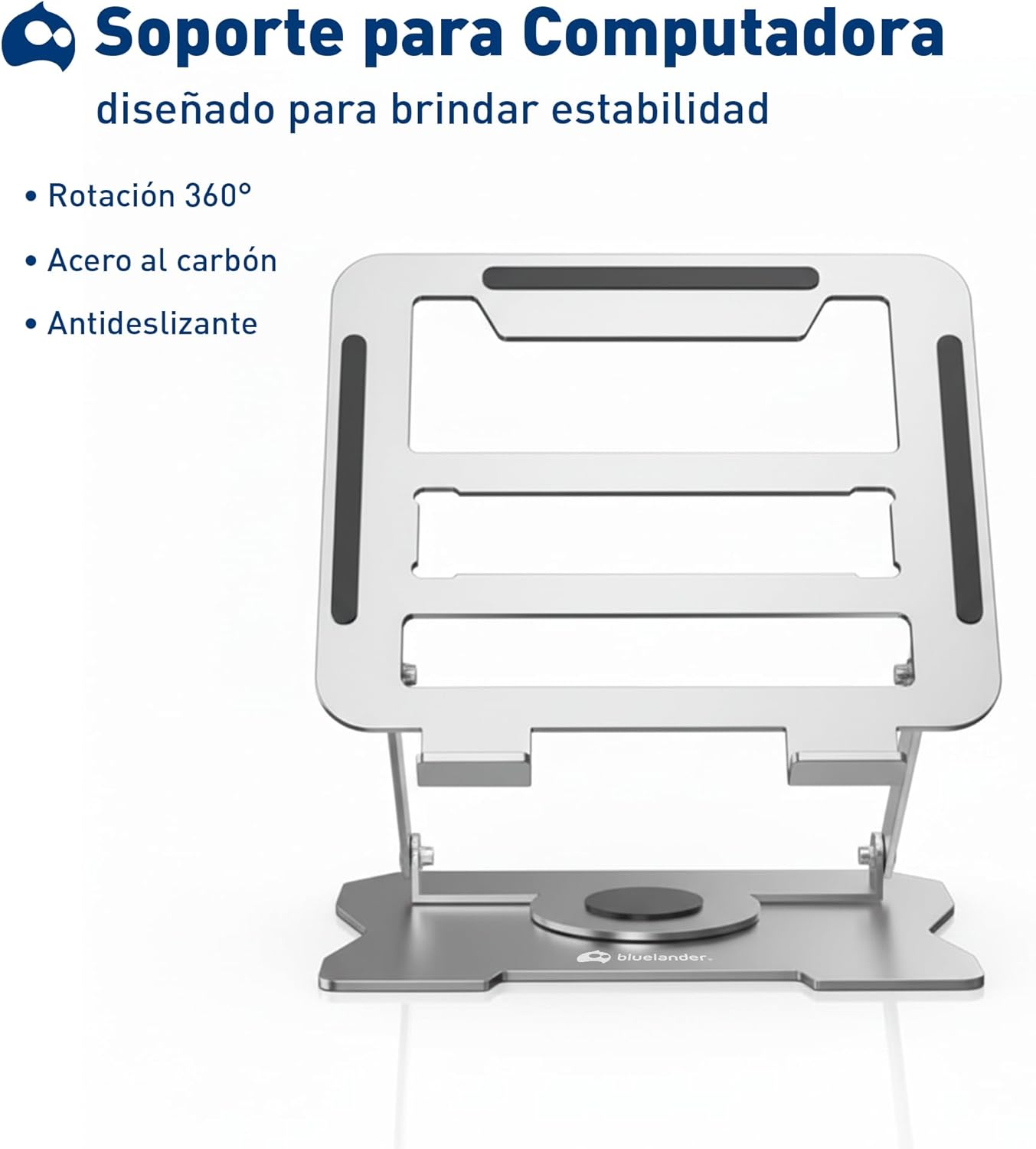 Bluelander Soporte Laptop Giratorio 360° - Aluminio Ajustable Ergonómico 2 Brazos