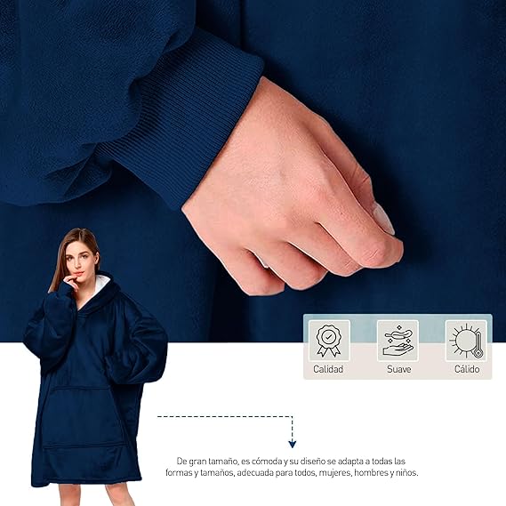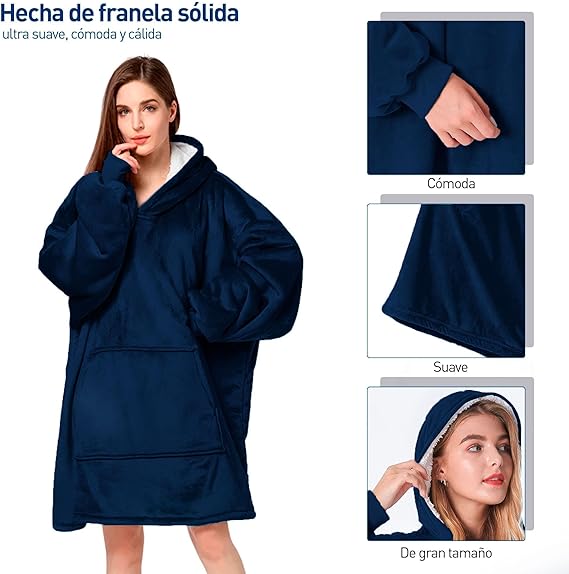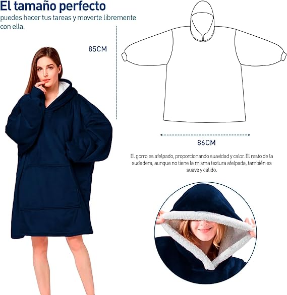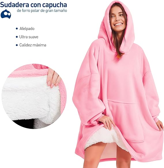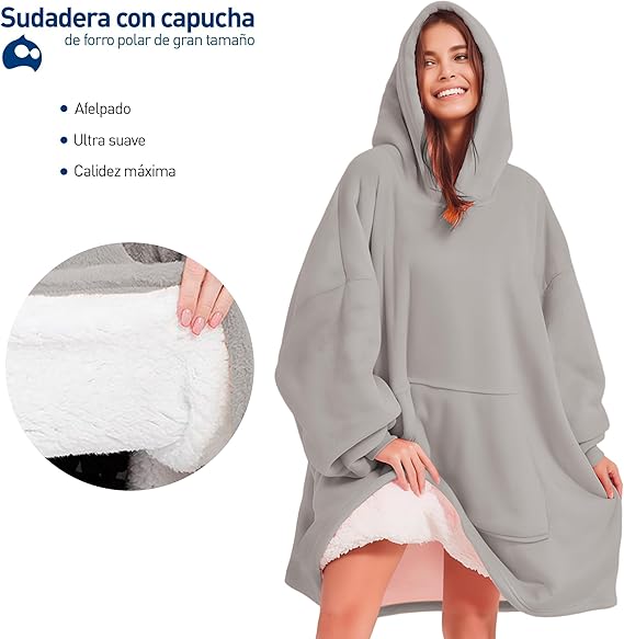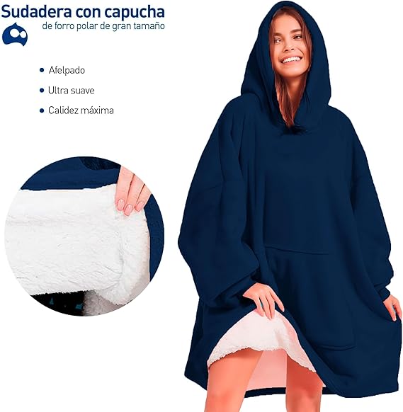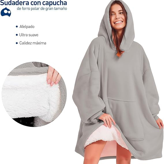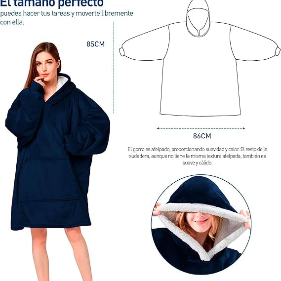Bluelander Sudadera Cobija con Borrega - Térmica Unisex con Capucha Unitalla (Todo el forro en borrega)